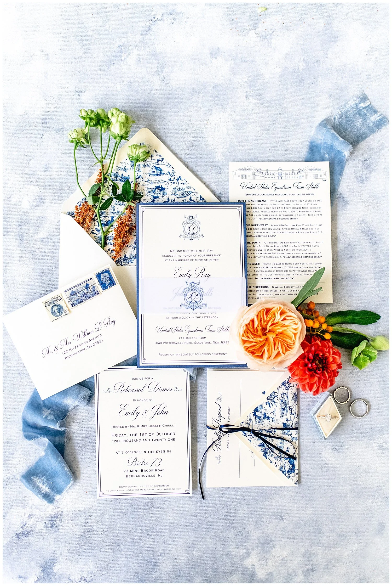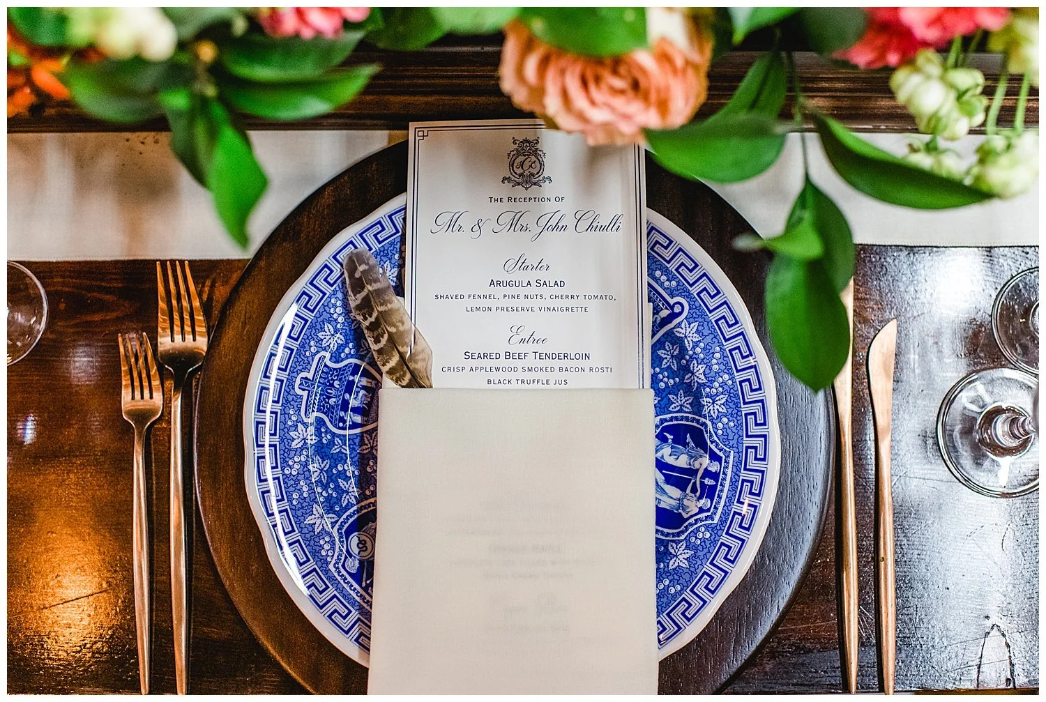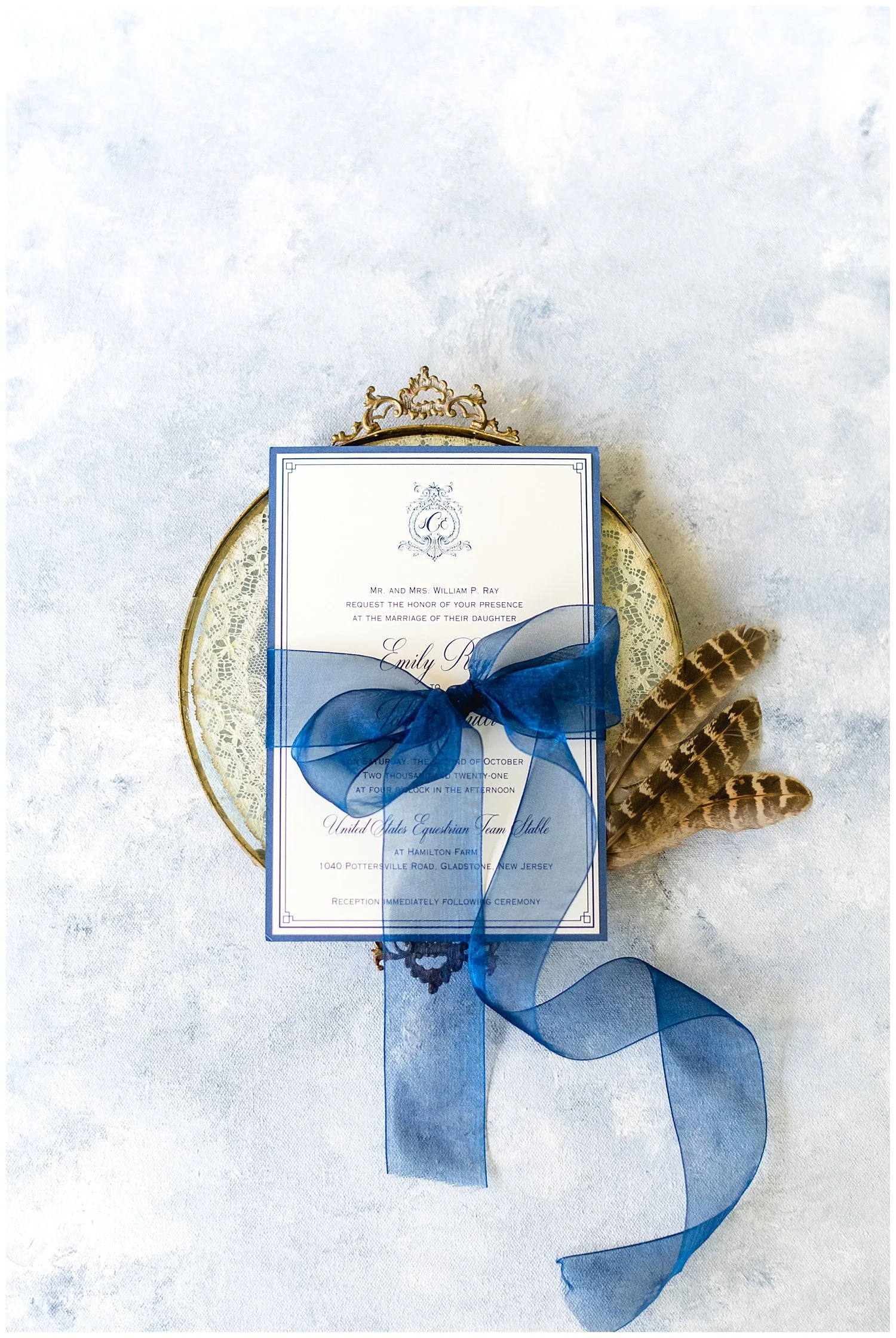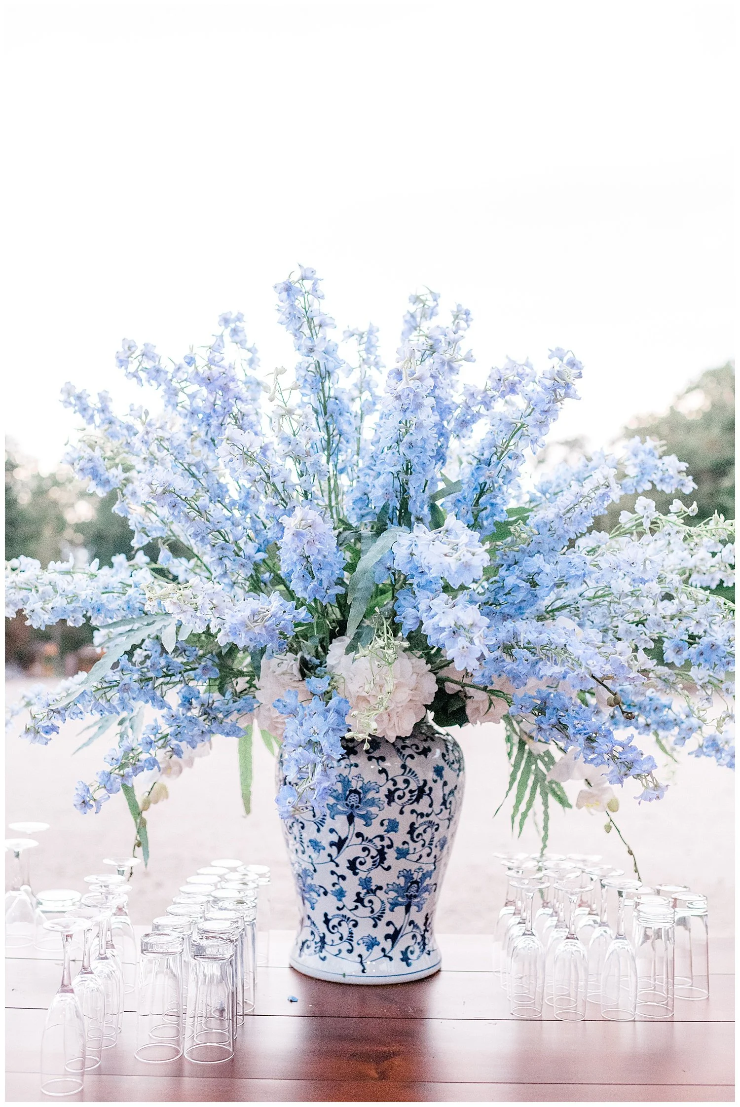 It was soon time to leave to the Equestrian Center at Hamilton Farm and talk about a gorgeous unique venue! I felt like I was in a very special Italian Villa! The ceremony took place outside of the venue and they became man and wife under the most beautiful floral arch! Their details were so amazing and I loved that the very beautiful dansk blue theme was throughout every aspect of the day!