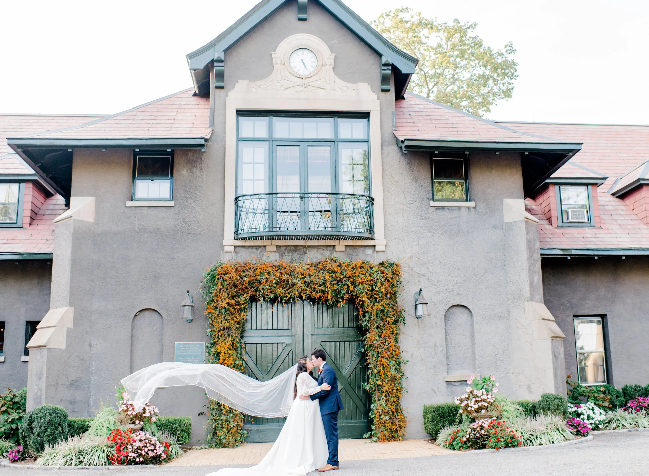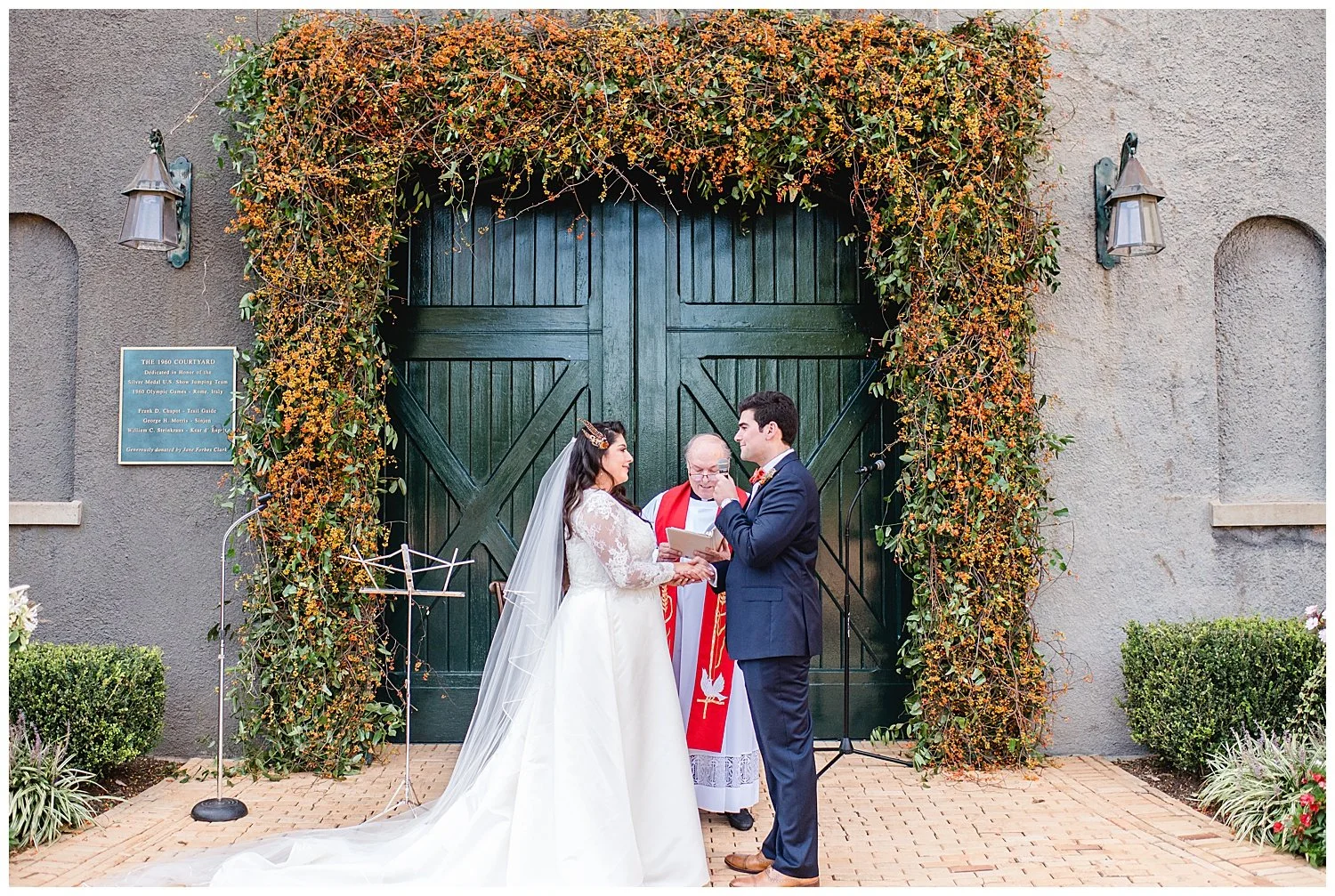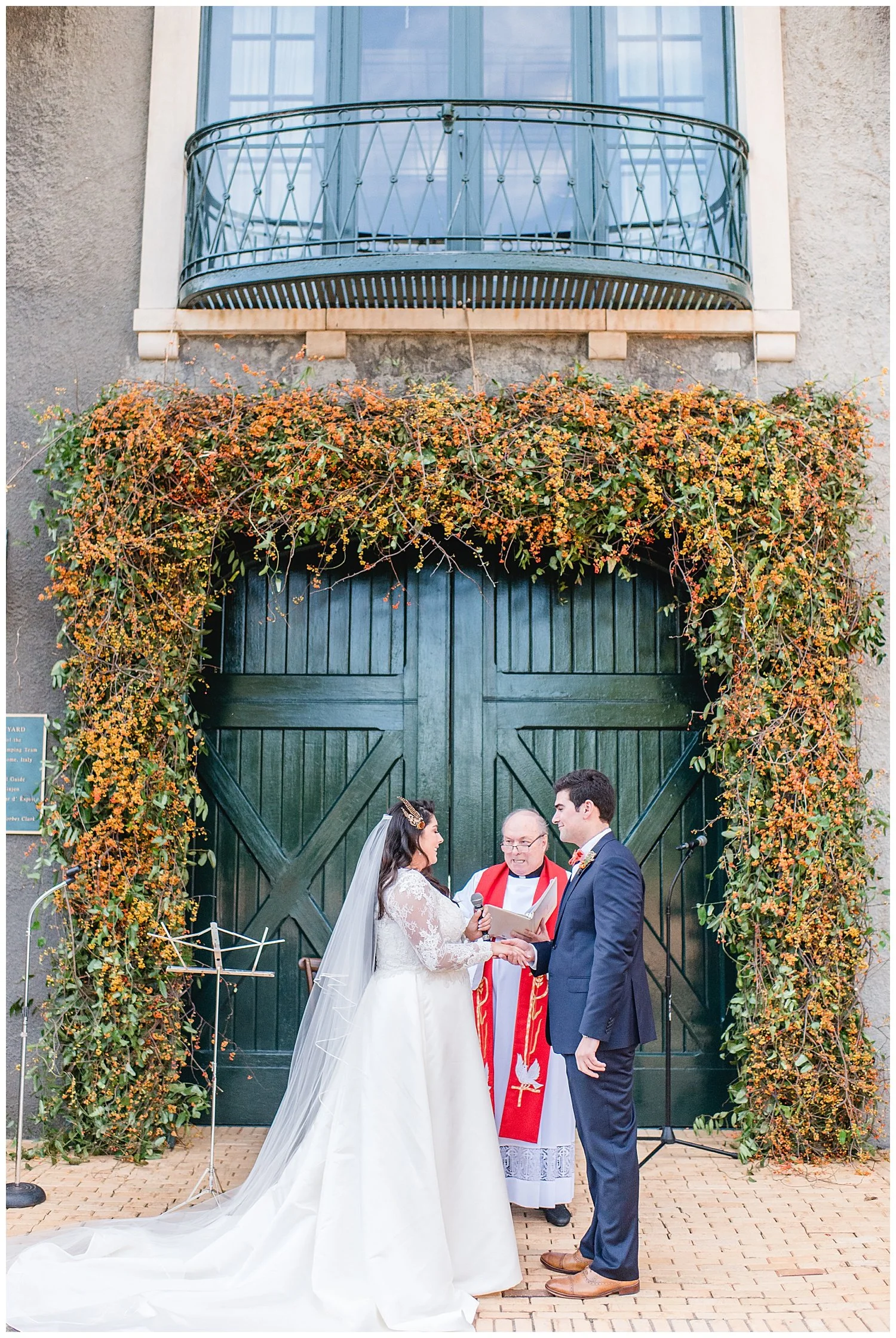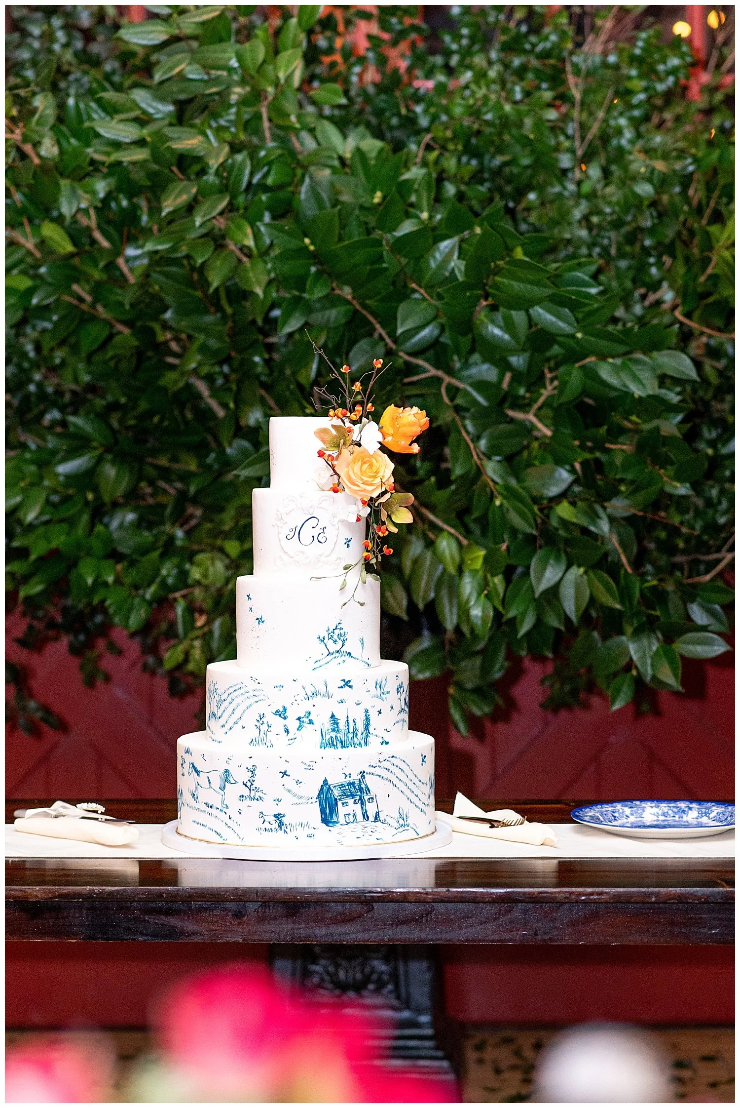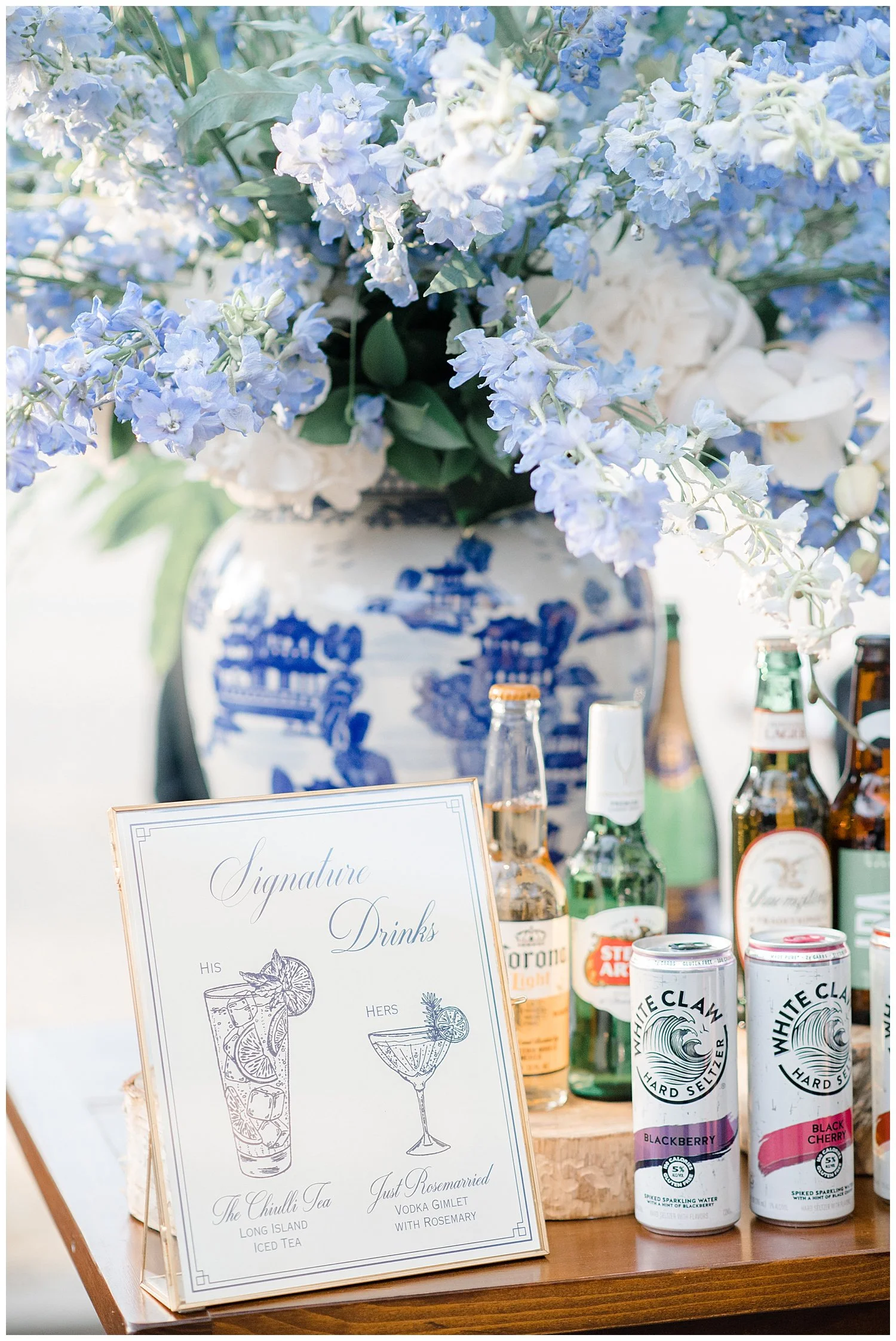 It was soon time to leave to the Equestrian Center at Hamilton Farm and talk about a gorgeous unique venue! I felt like I was in a very special Italian Villa! The ceremony took place outside of the venue and they became man and wife under the most beautiful floral arch! Their details were so amazing and I loved that the very beautiful dansk blue theme was throughout every aspect of the day!