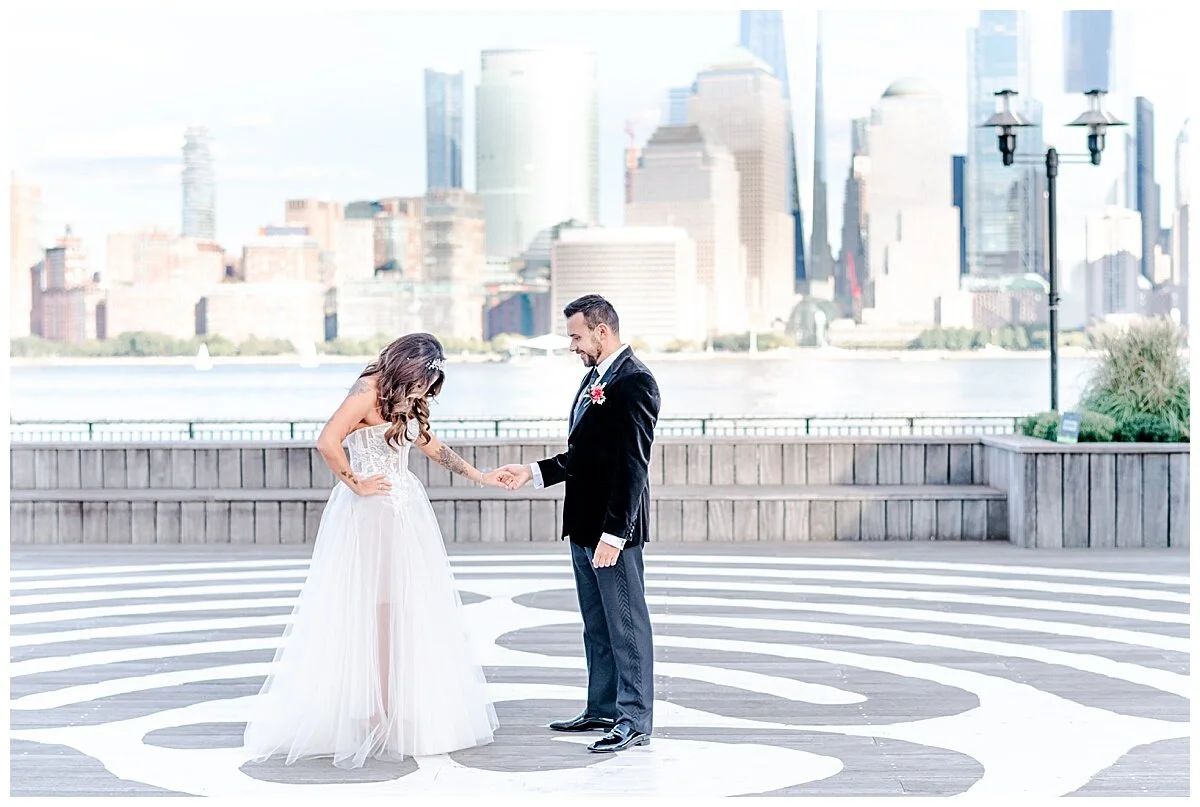 Down in Jersey City, there is a beautiful pier that has the NYC skyline in the distance. They chose this location for their first look! I just loved how Michael looked at Tina when he first saw her. From there we found some great places to do portraits and fun bridal party images and the weather was absolutely perfect!