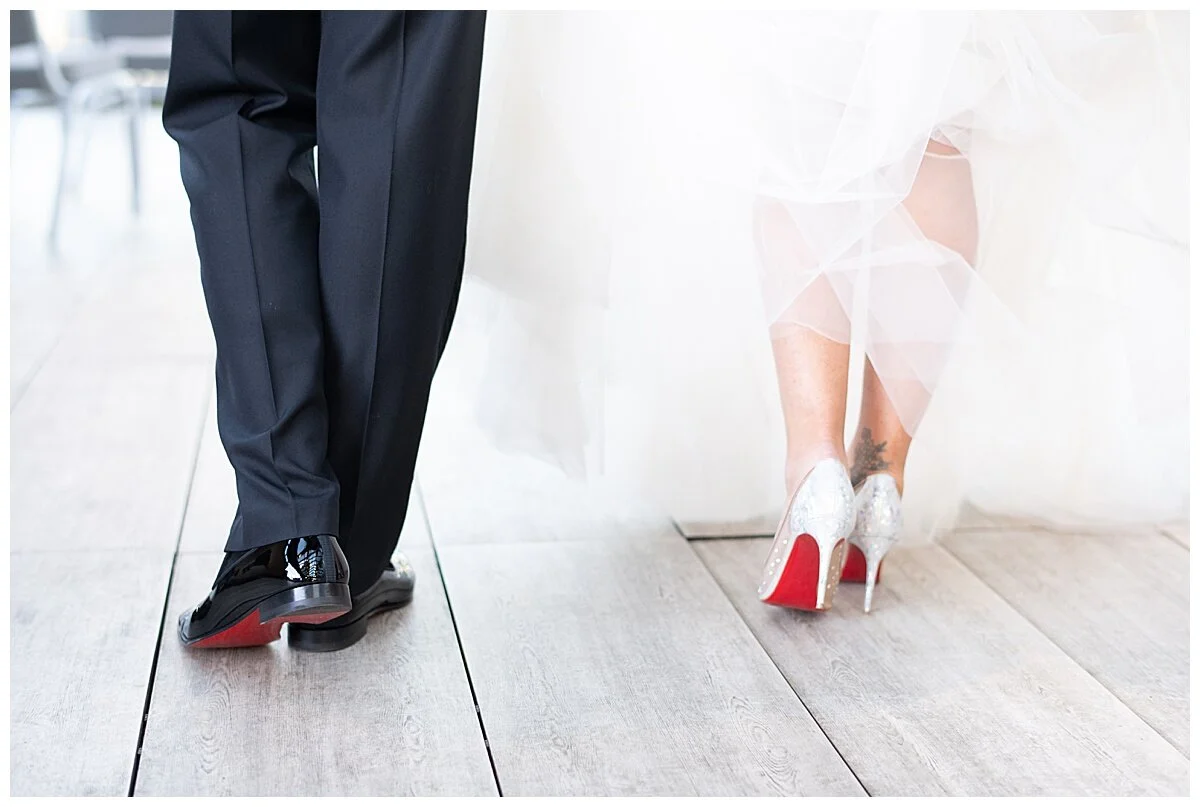 Wedding Gown: Muses by Berta Shoes: Christian Louboutin. Groom Suit: Armani