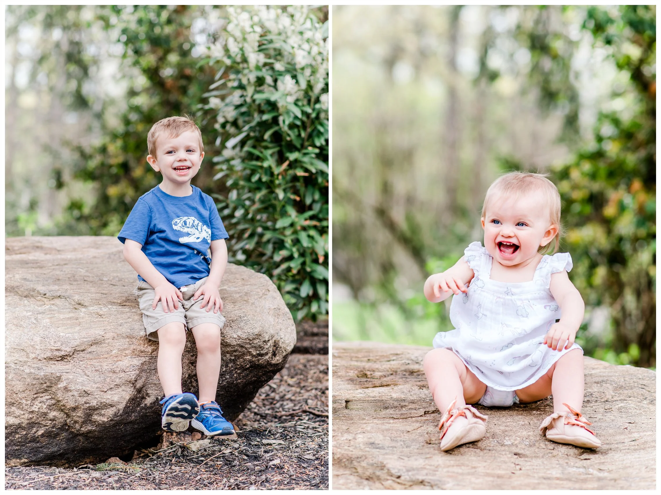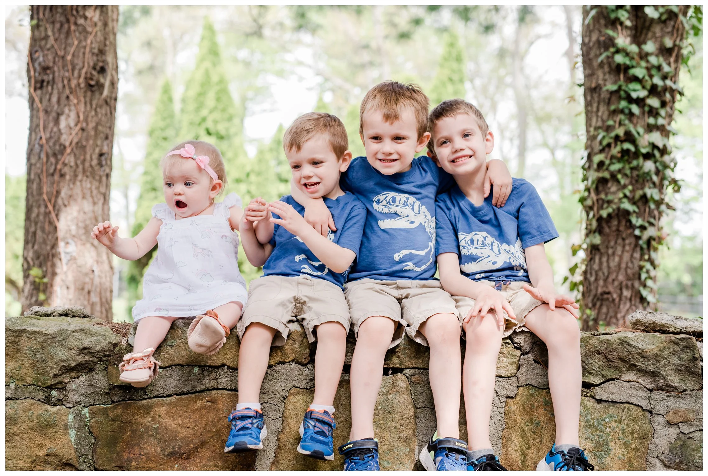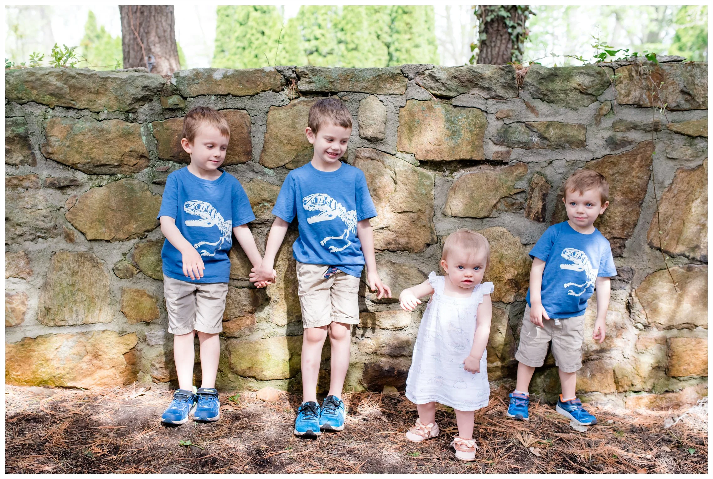 Our session started by the pond on their grandmother’s beautiful property. We had some lovely areas to photograph the kids while they were busy playing. My favorite was the stone wall that we were able to have some fun with.