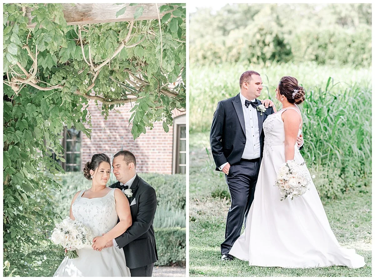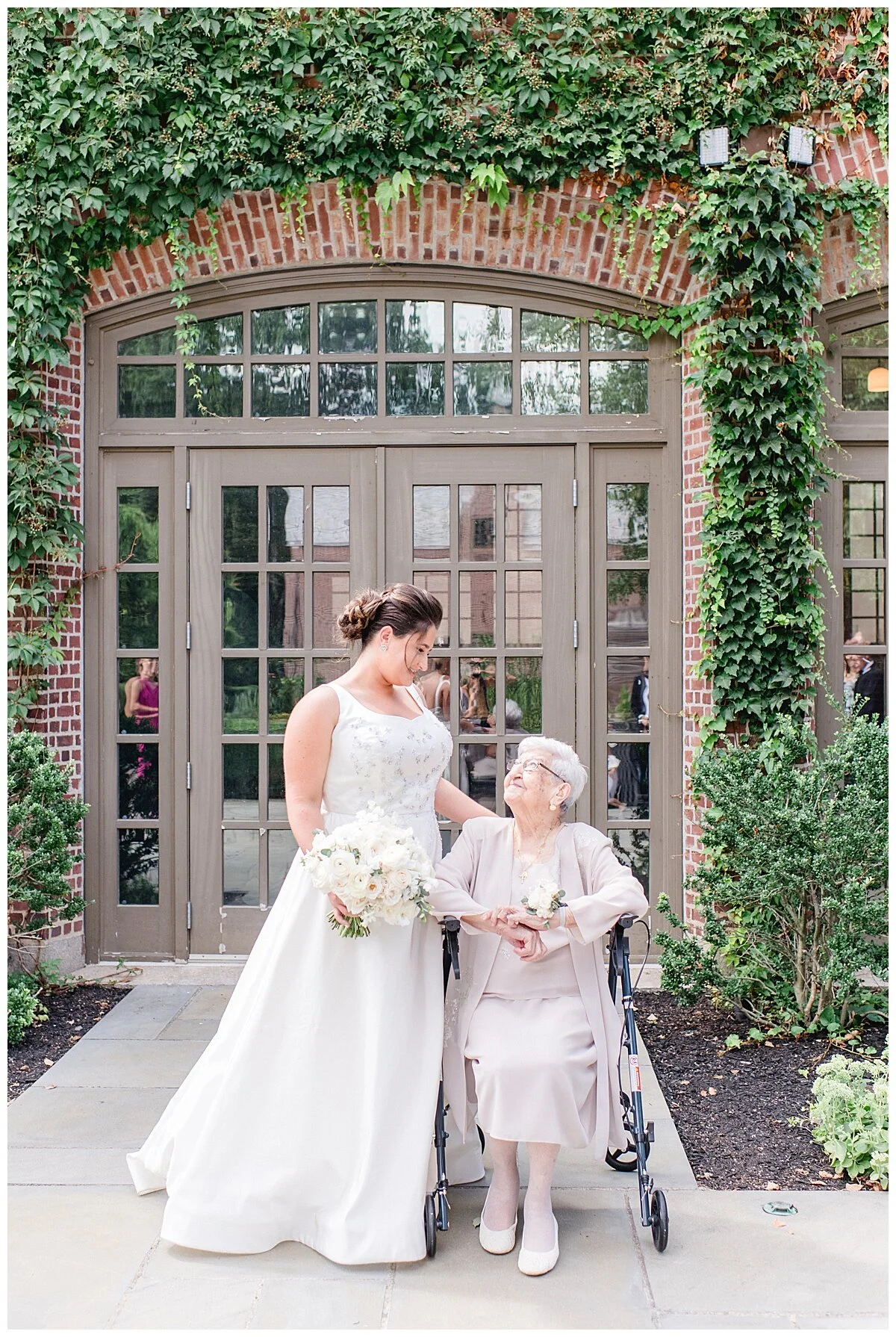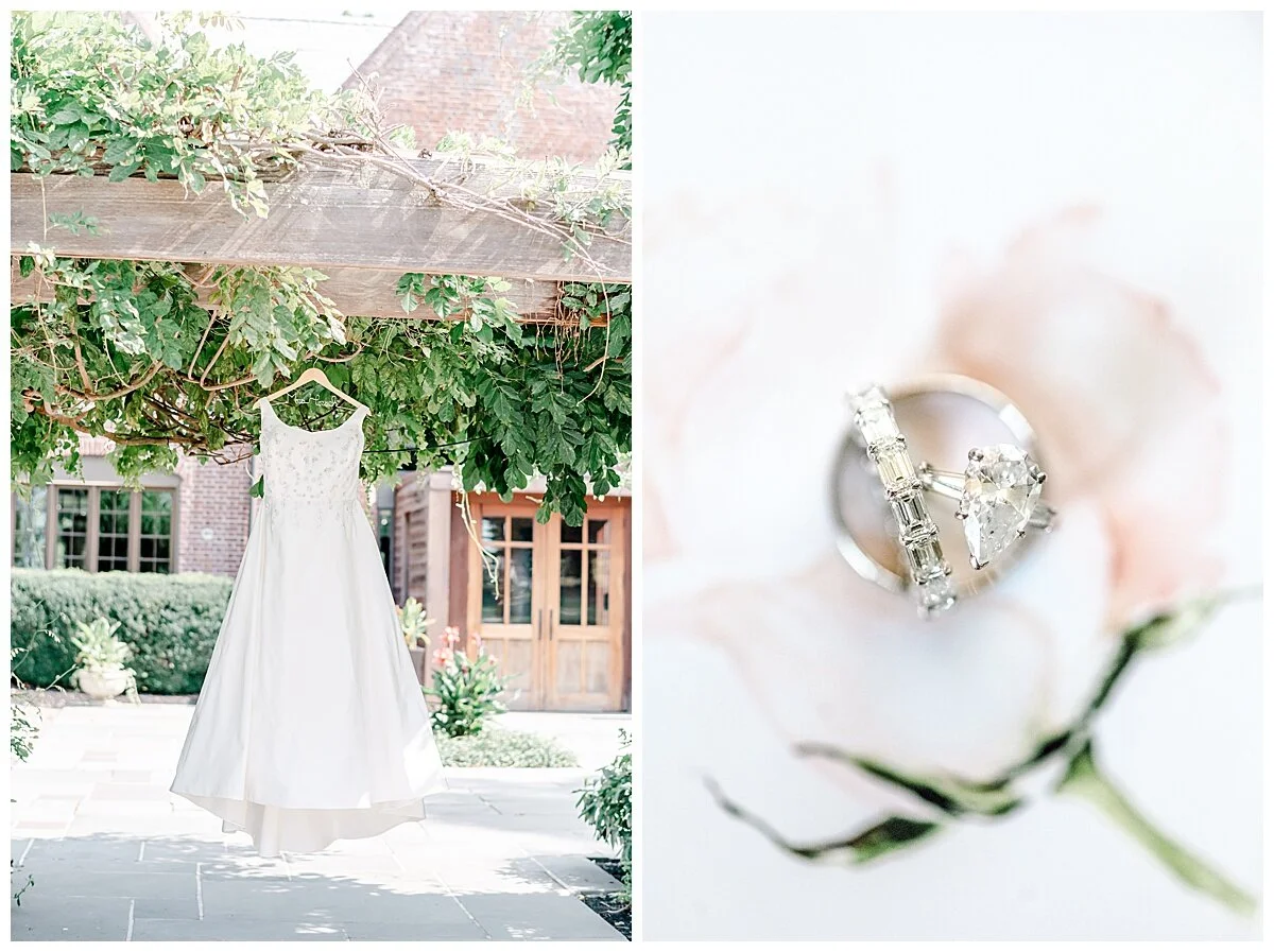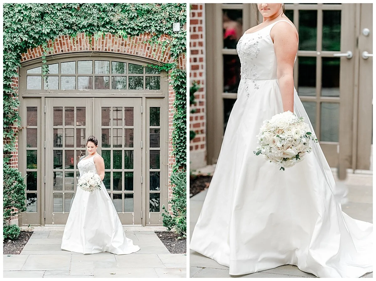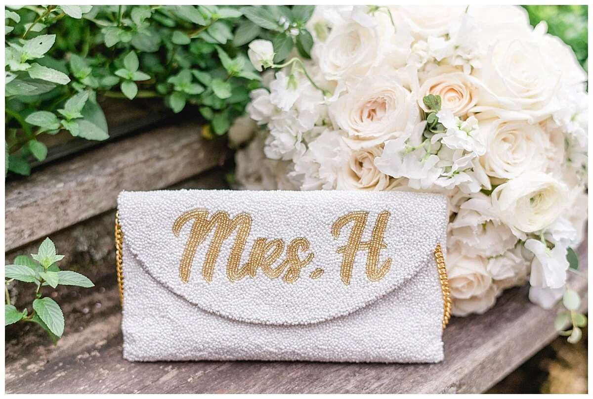 The first moments captured were of the bridal party’s hair and makeup preparations. The bridal party got ready while wearing picture perfect pajamas that were too cute to pass up for portraits! The bride and her party were taken outside to the beautifully landscaped gardens for photos. When everyone was dressed, we took more photos within the walls of the majestic Ninety Acres property. There is the most beautiful little archway in the gardens where we captured some beautiful portraits and family photos.