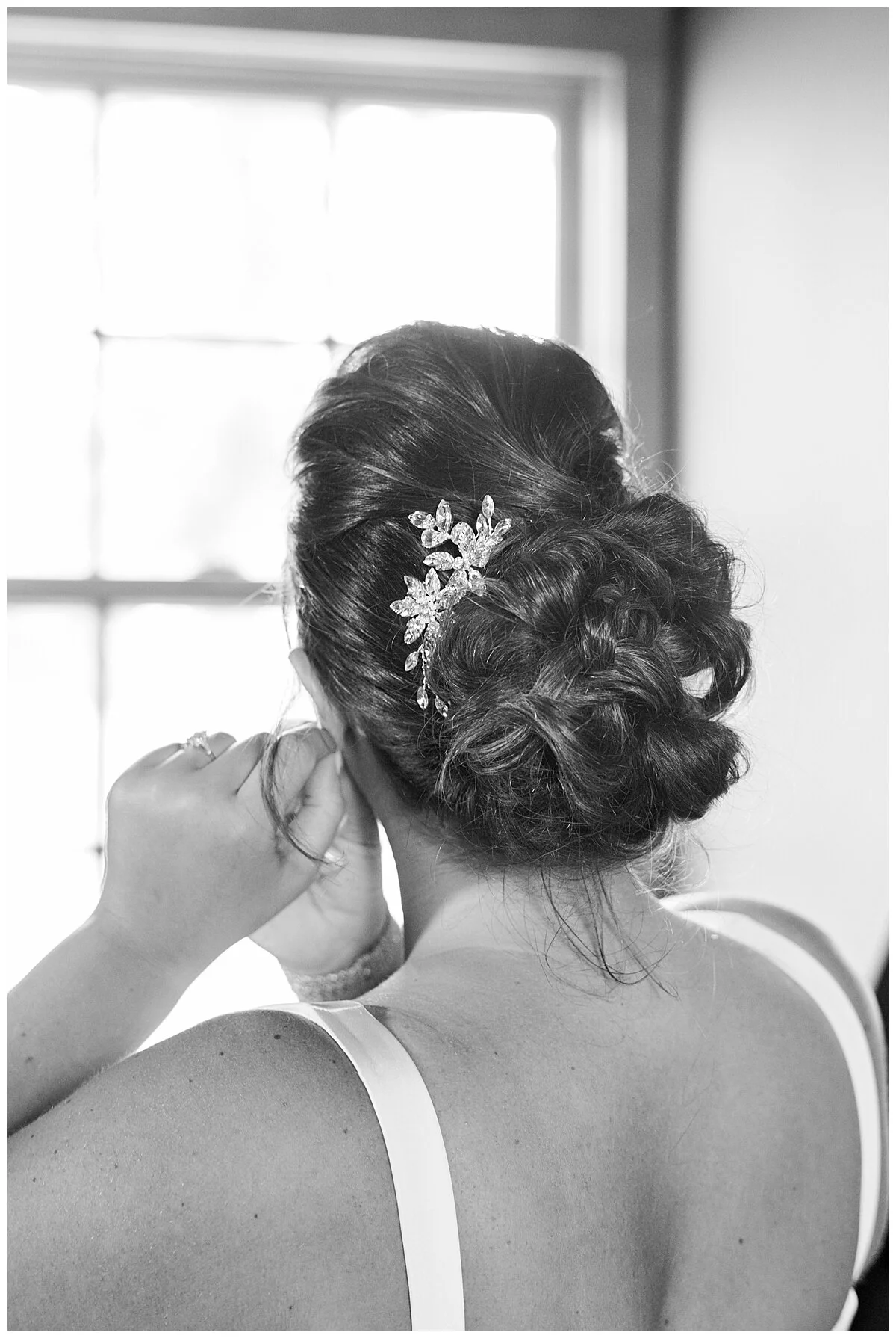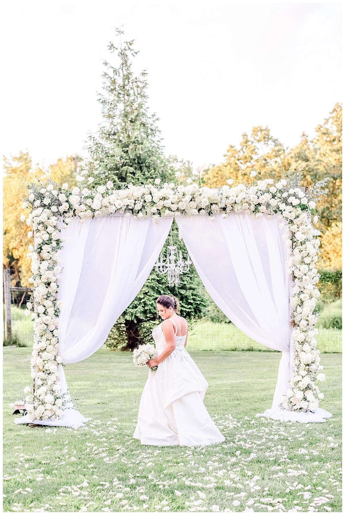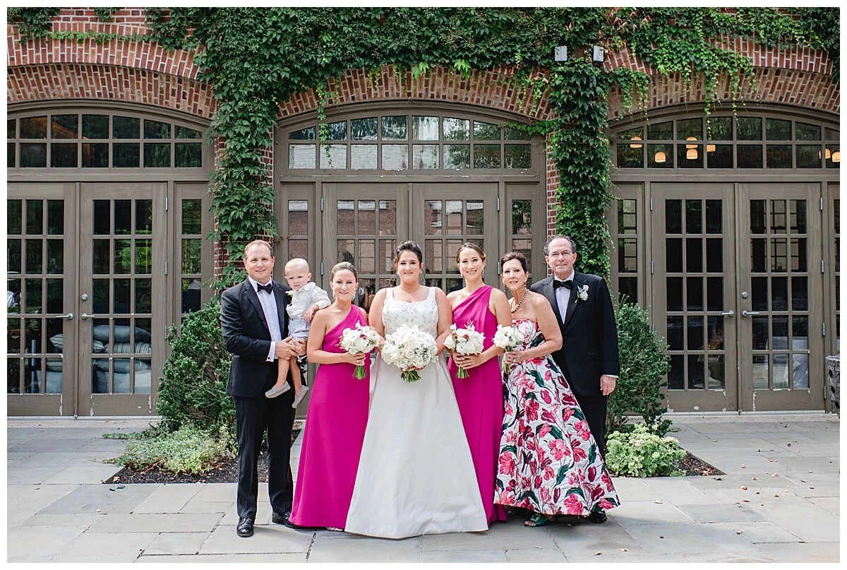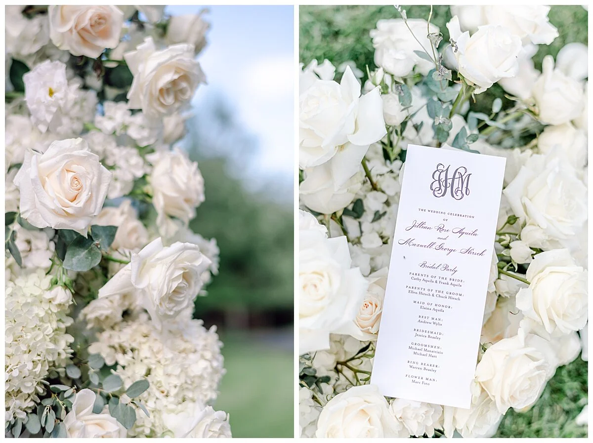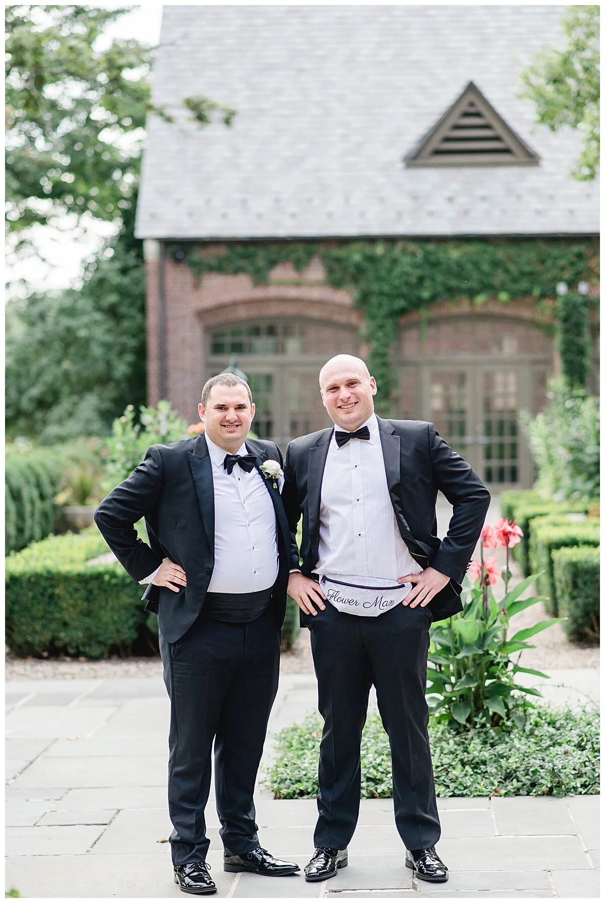 The first moments captured were of the bridal party’s hair and makeup preparations. The bridal party got ready while wearing picture perfect pajamas that were too cute to pass up for portraits! The bride and her party were taken outside to the beautifully landscaped gardens for photos. When everyone was dressed, we took more photos within the walls of the majestic Ninety Acres property. There is the most beautiful little archway in the gardens where we captured some beautiful portraits and family photos.
