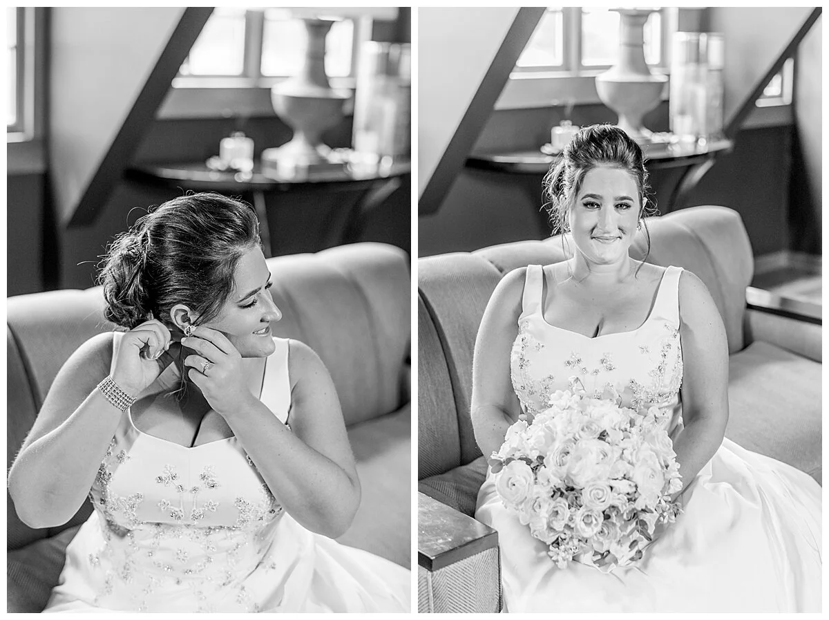 The bride looked stunning in her blush white dress which was a selection from Amsale Bridal. Jill chose a gorgeous pair of heels created by Aquazzara. Her hair was pulled up into a graceful style and her face was made up by the Butterfly Studio Salon. Jill had a glow about her that exuded excitement!