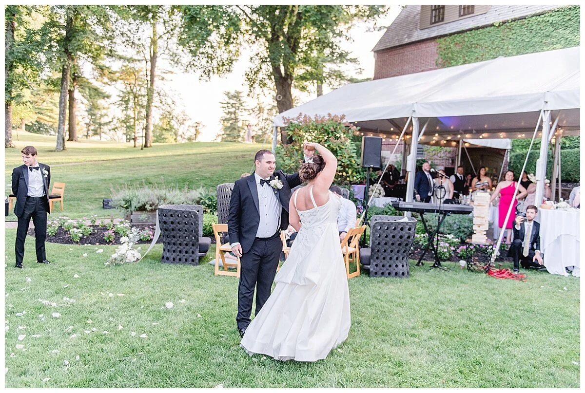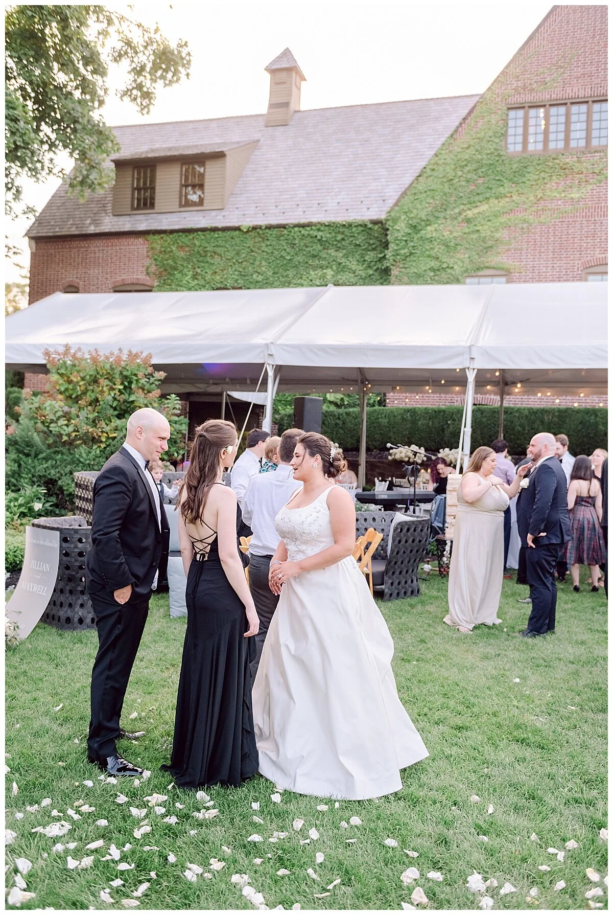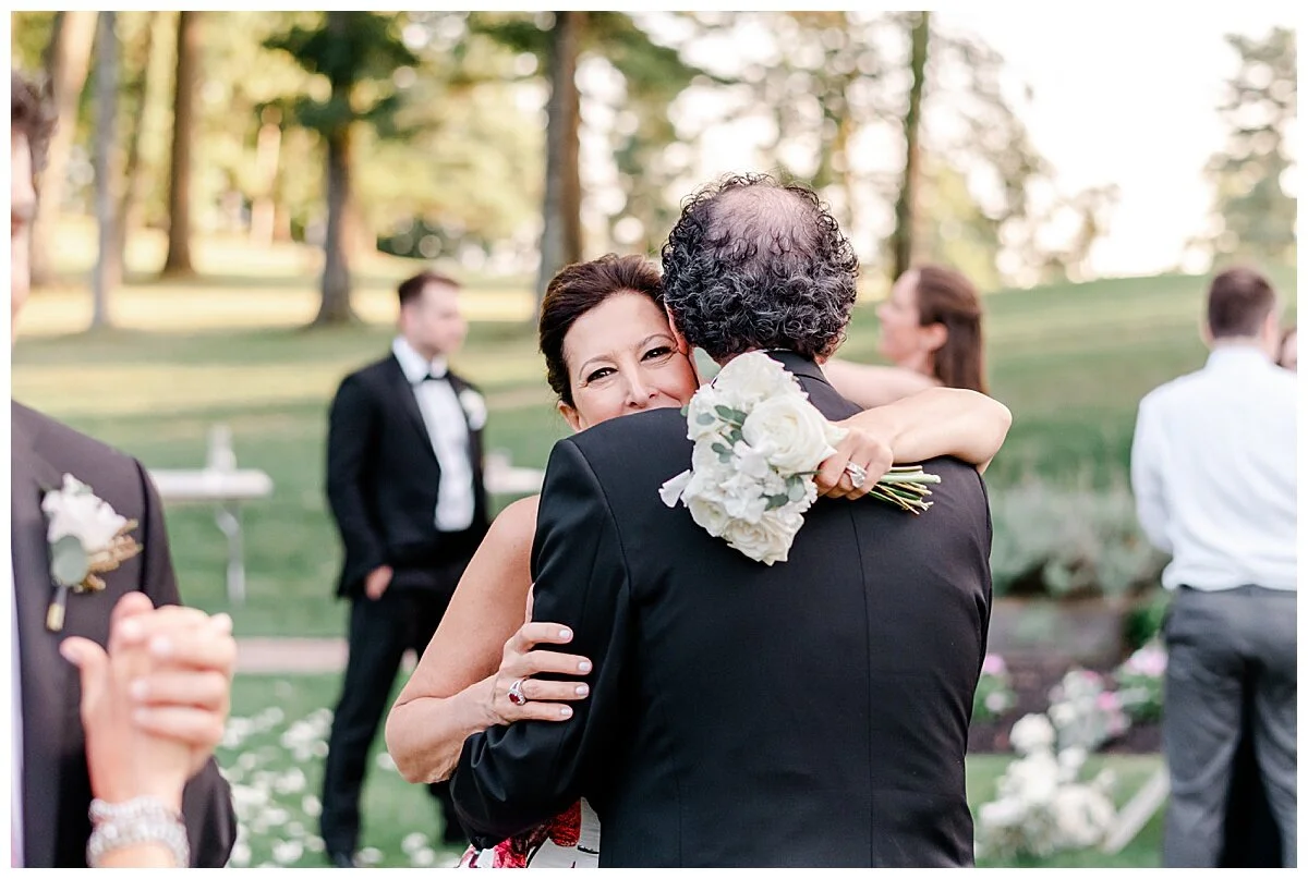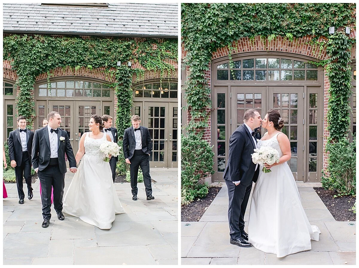 Warm family portraits were taken around the property. These photos were followed by romantic moments shared between the handsome couple taken on the Veranda at Ninety Acres located on the beautiful property of Natirar. The cocktail hour was on the patio with family and friends full of joy.