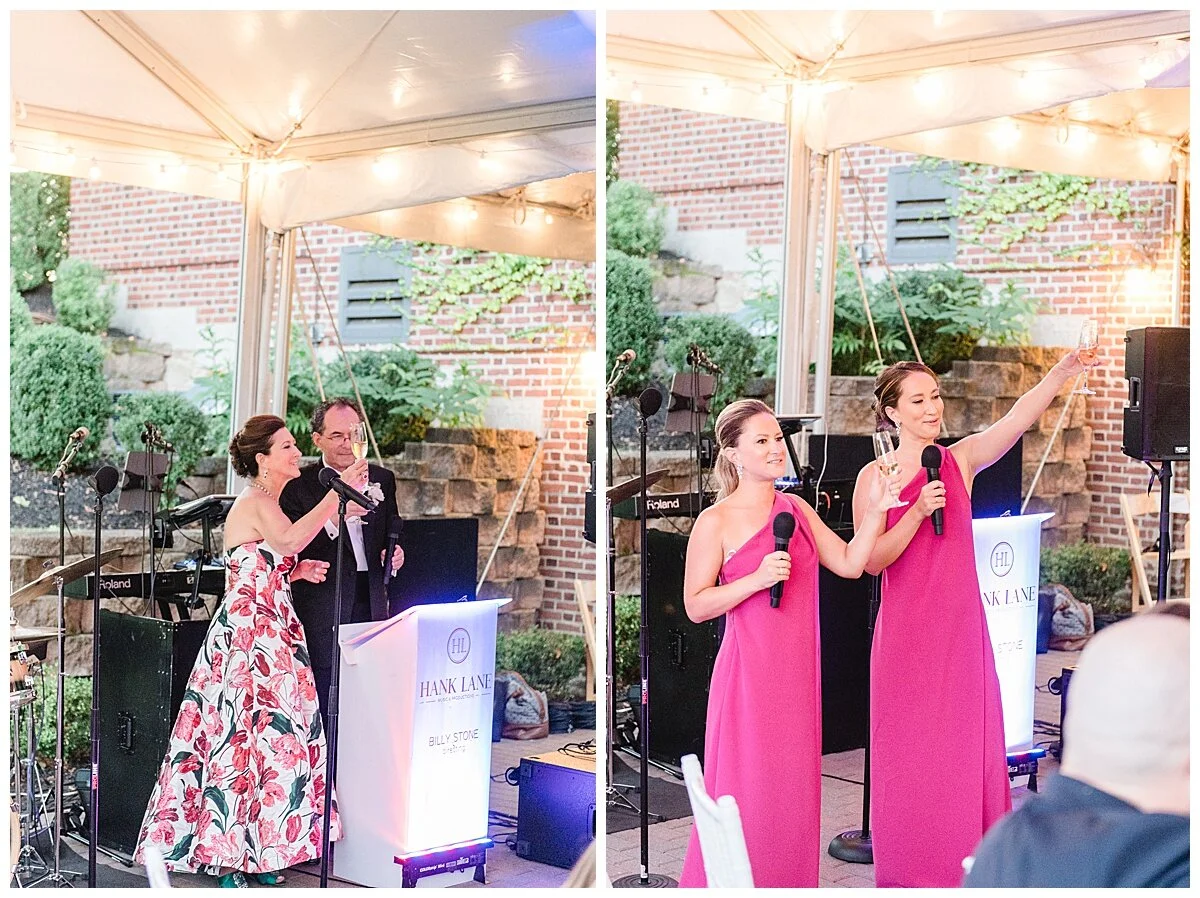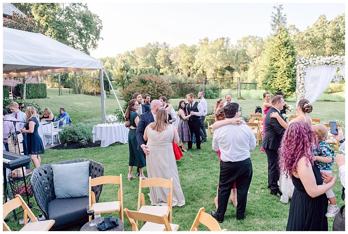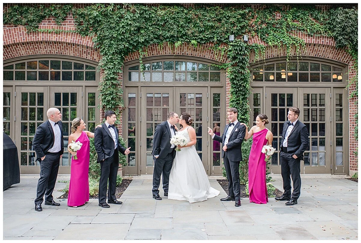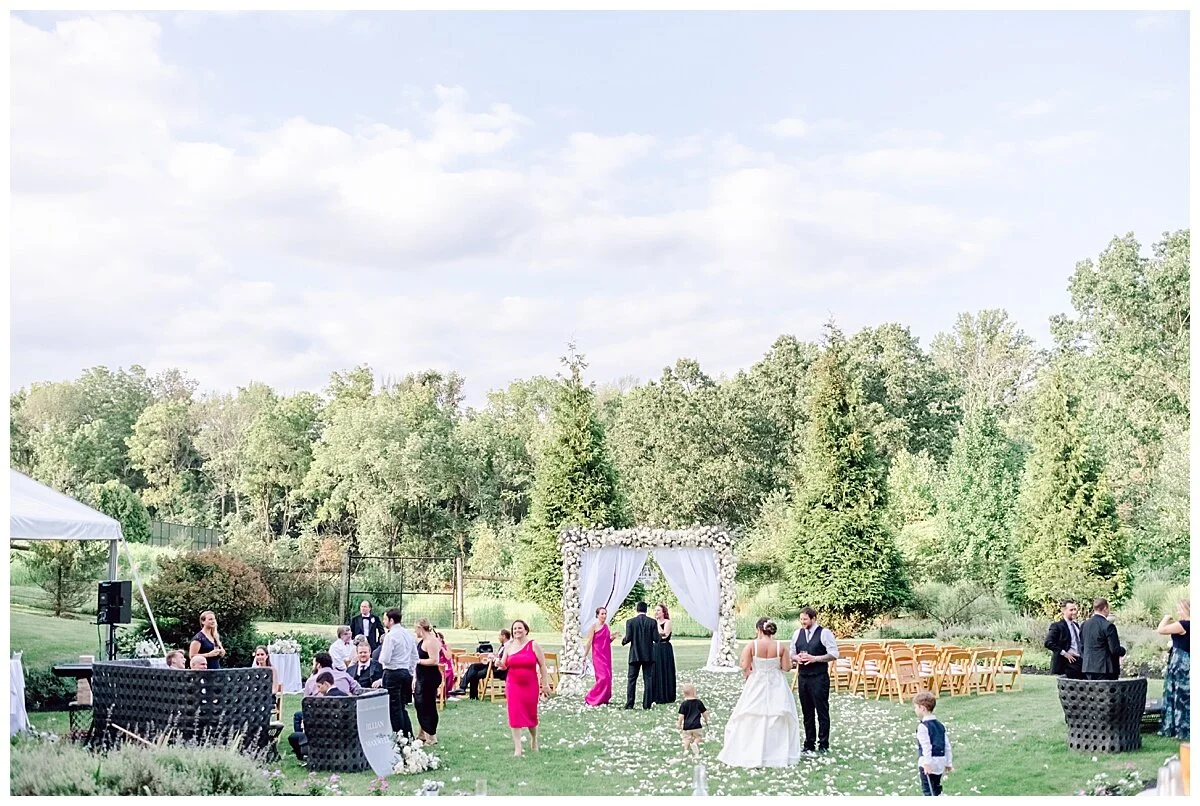 Warm family portraits were taken around the property. These photos were followed by romantic moments shared between the handsome couple taken on the Veranda at Ninety Acres located on the beautiful property of Natirar. The cocktail hour was on the patio with family and friends full of joy.