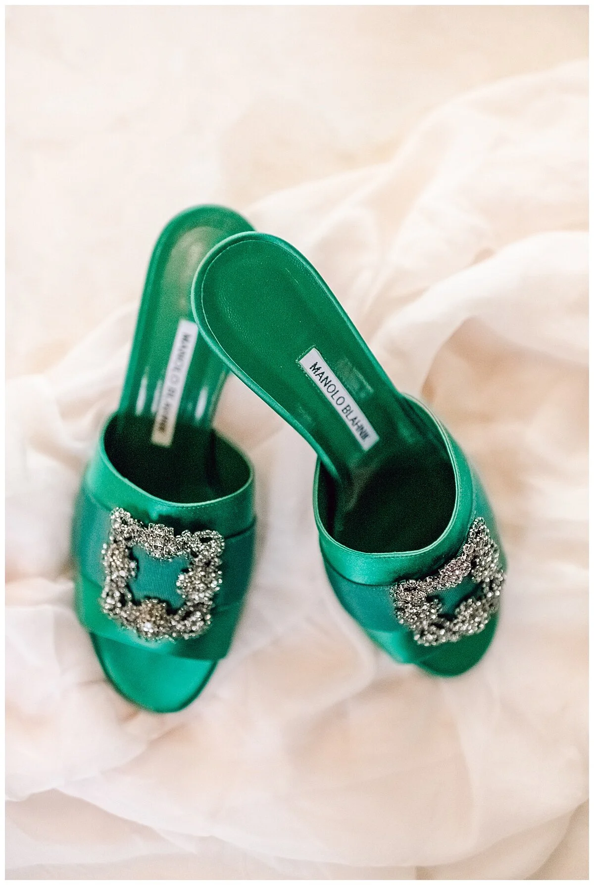 The bridesmaids wore elegant fuchsia dresses by Holston and shoes with a sparkle to match. The mother of the bride had a gorgeous dress to match the summer season and emerald Manolo Blahnik shoes. From the choice of shoes, hair pieces and of course the dresses, every detail was organized to perfection. The Little Black Dress Paperie never disappoints with creating the most perfect wedding invitation. I loved the soft pink flowers that lined the envelopes.