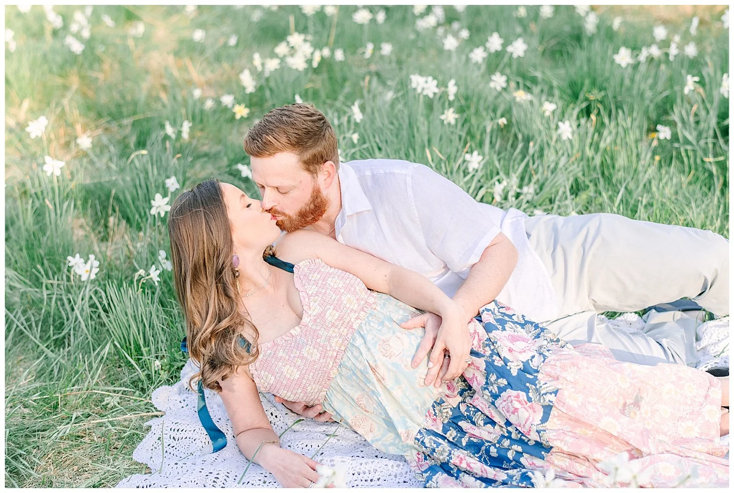 As the golden hour bathed the gardens in warm light, Kalene radiated joy and anticipation. Dressed in a flowing gown that caught the gentle breeze, she and Matt shared tender moments amidst the daffodil lined fields and blooming pathways. The gardens’ natural beauty complemented their love, creating timeless images that celebrate this new chapter in their lives.