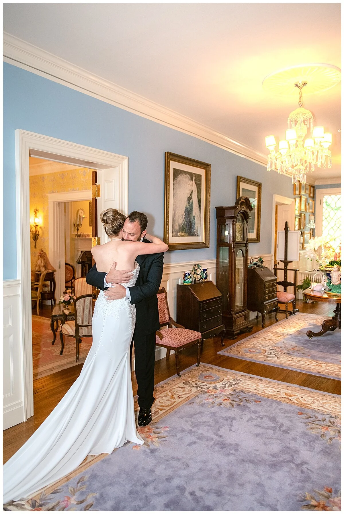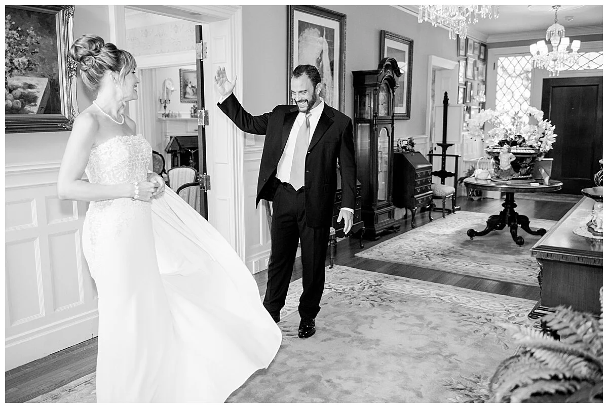 Alysa and Chris shared their “first look” in the beautiful foyer of their home. When Alysa came down the stairs, Chris could not hold back any emotion. She totally took his breath away!