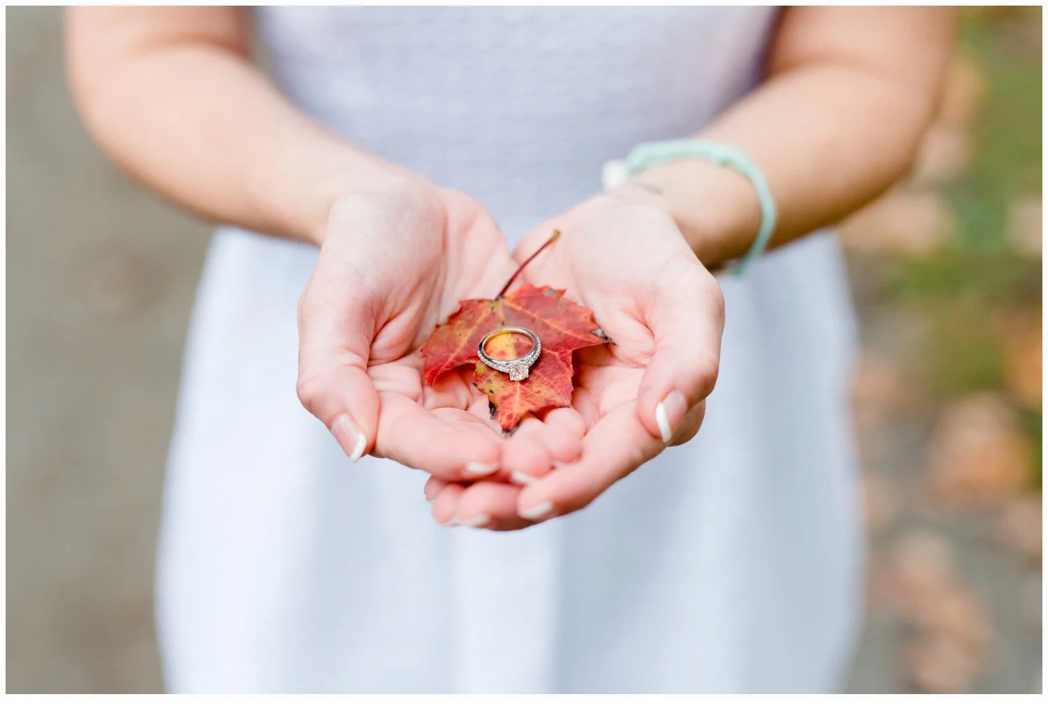 After dinner they all headed to Battell Park. Once they got to the park, they walked for a few minutes to a beautiful set of stairs that overlooked the river. Frank told them to go down to the river and he would meet them there. As they got down to the bottom of the stairs, they walked along the river for about a minute and then Chris stopped and asked April to sit and wait for their friends. They had not been sitting more than 30 seconds before she looked up and Chris was down on one knee in front of her holding a beautiful ring in his hand. He looked at April and asked her to be his wife and all she could do was cry! As she reached up to hug him he whispered in the sweetest voice “Can you take the ring so that I know its a yes!” Once she let go of him, she said yes and he placed the most gorgeous, stunning ring on her finger and she said yes!!!