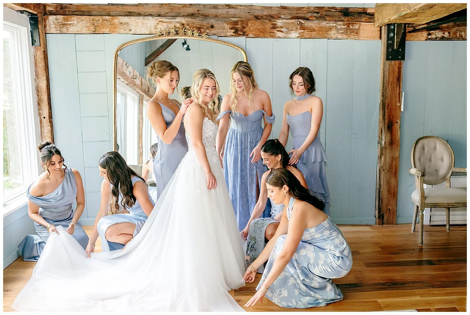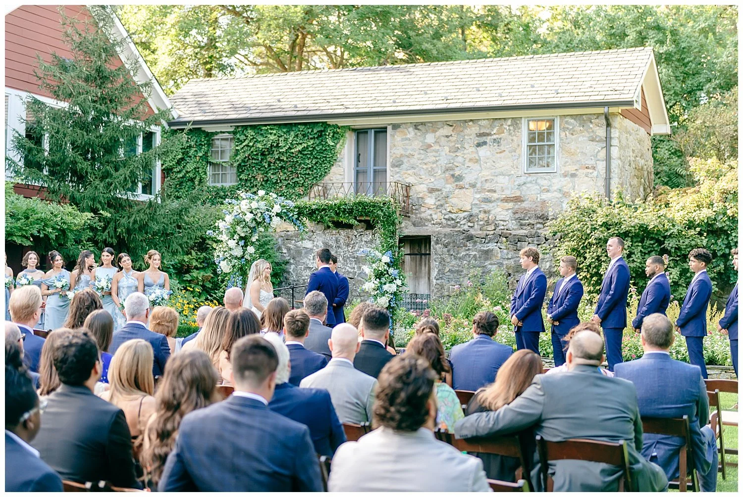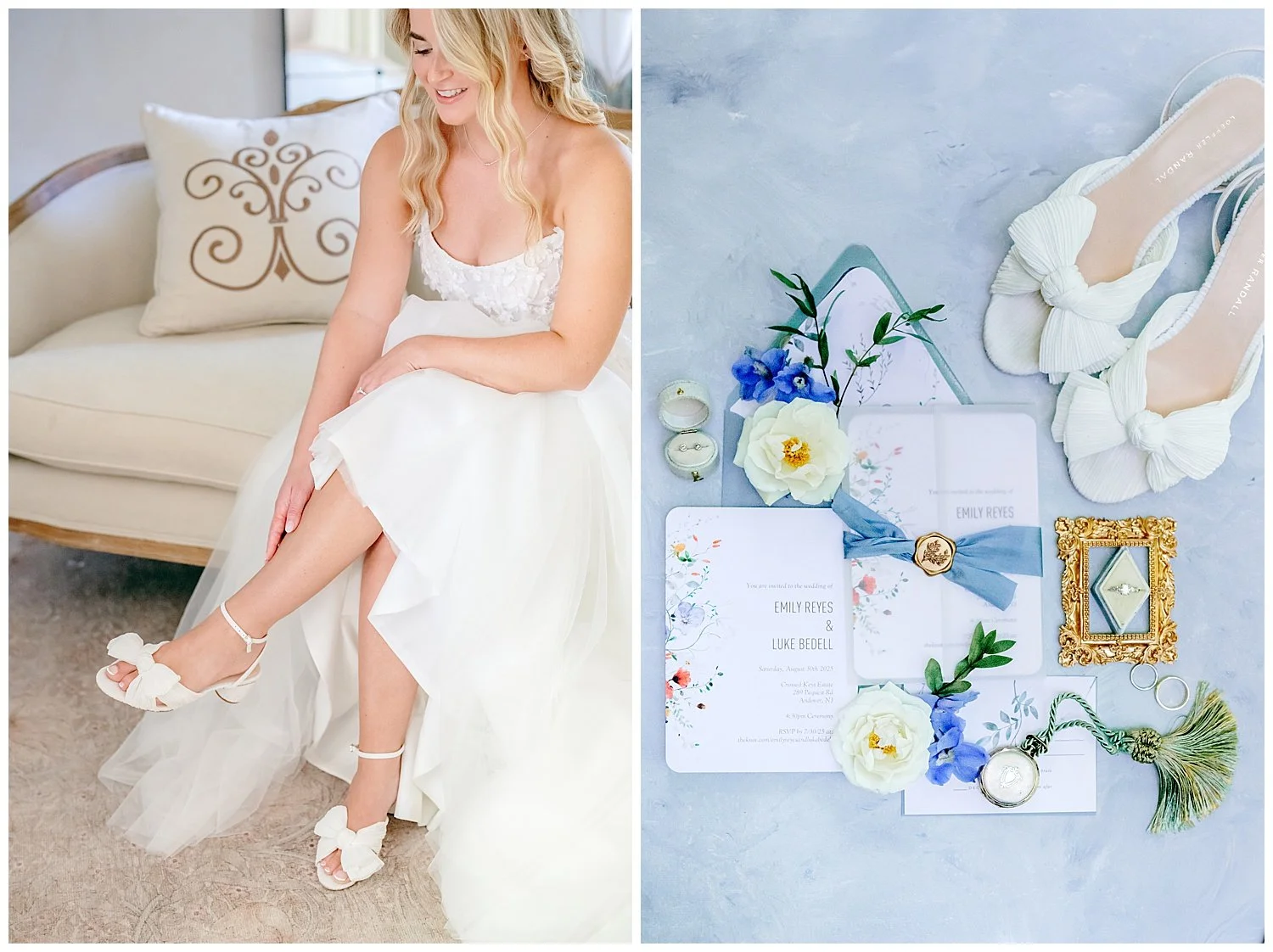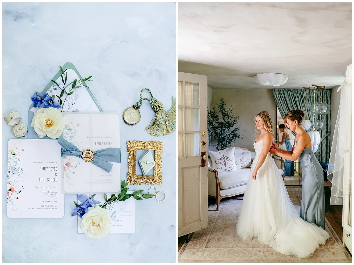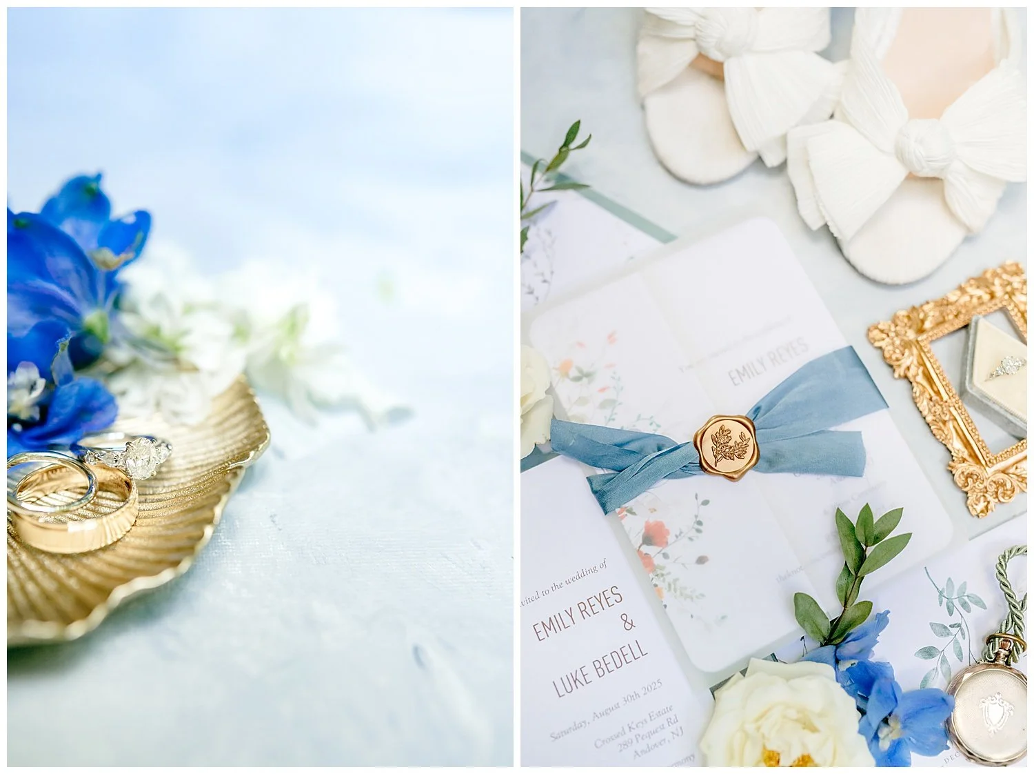 A New Jersey Wedding at Crossed Keys Estate is always something truly magical, and Emily and Luke’s day was no exception. Nestled in the countryside of Andover, this venue is known for its rustic charm, romantic gardens, and elegant reception spaces. With soft blues, crisp whites, and lush greenery as their color palette, their celebration was a perfect example of how A New Jersey Wedding at Crossed Keys Estate blends timeless beauty with modern elegance. From the enchanting bridal suite in the woods to the soaring high ceilings and farm tables in the reception space, A New Jersey Wedding at Crossed Keys Estate creates a fairytale setting for couples who want both natural charm and refined sophistication.