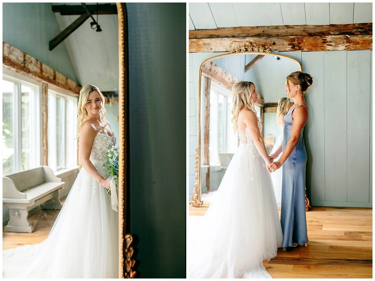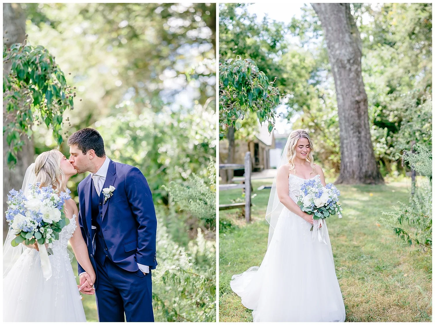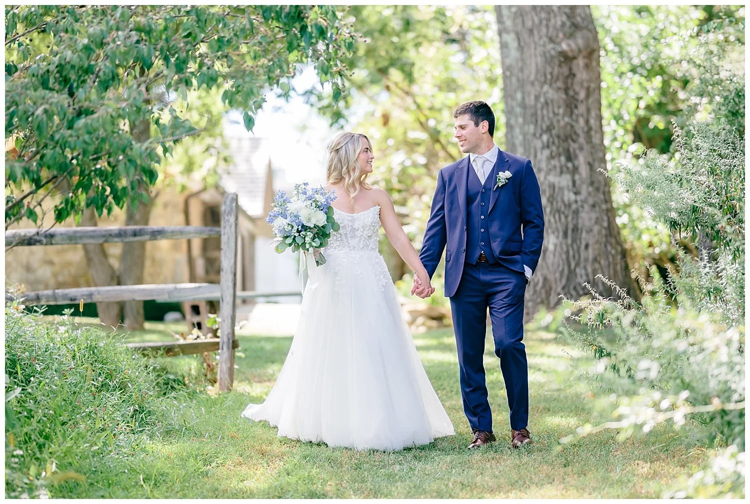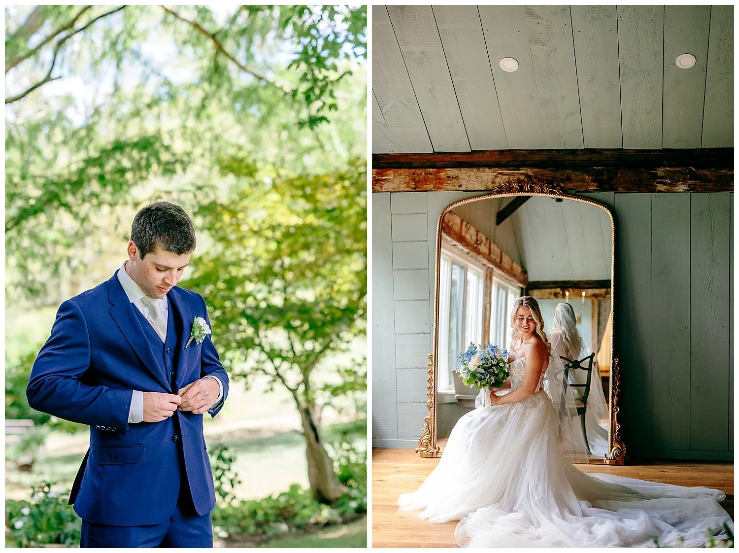 Crossed Keys Estate was the perfect choice. From the bridal suite tucked back in the woods to the farm tables and high ceilings inside the reception space, it offered the perfect balance of rustic and modern. With florals in blue and white accented by greenery, their vision came to life in a way that was both romantic and timeless.