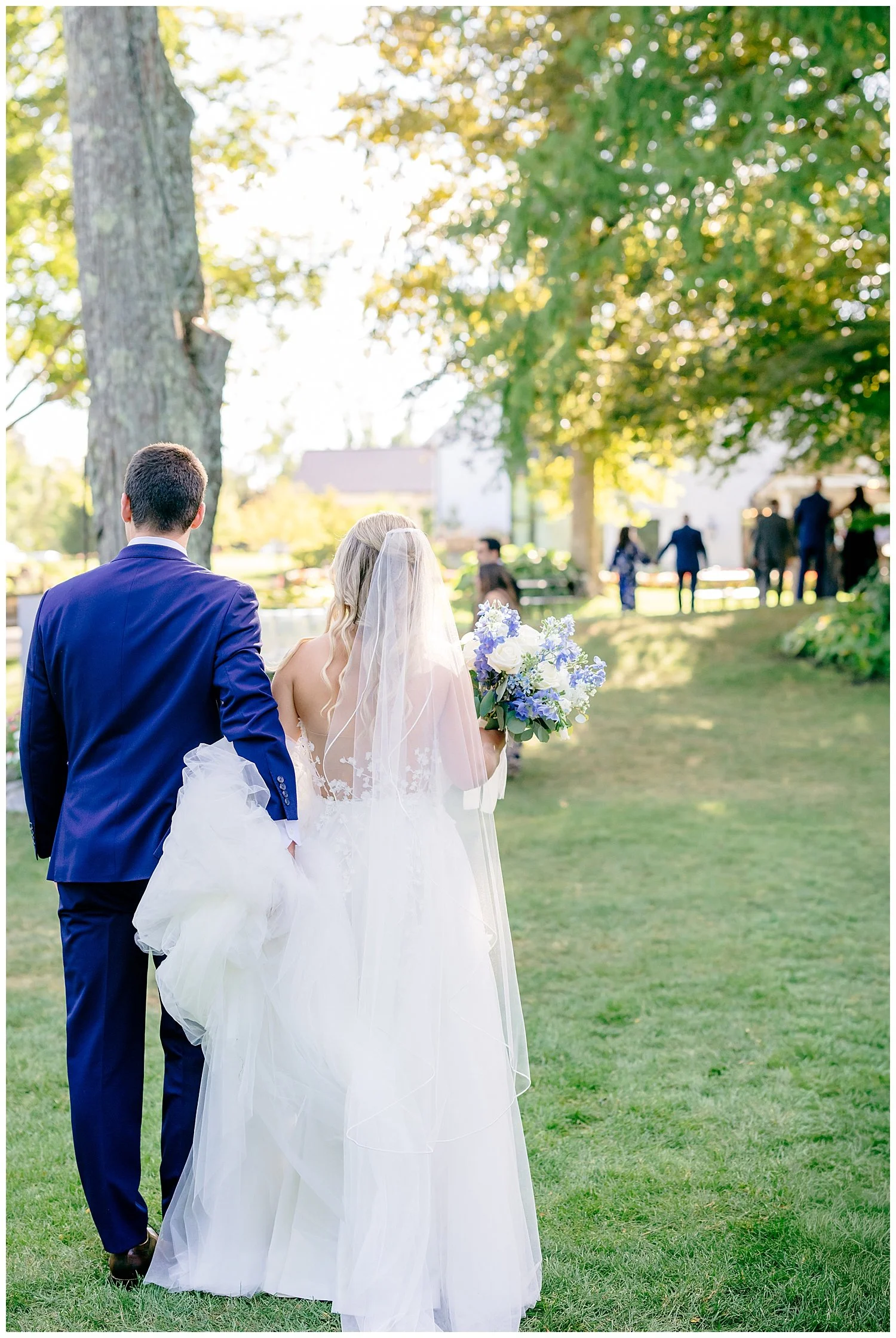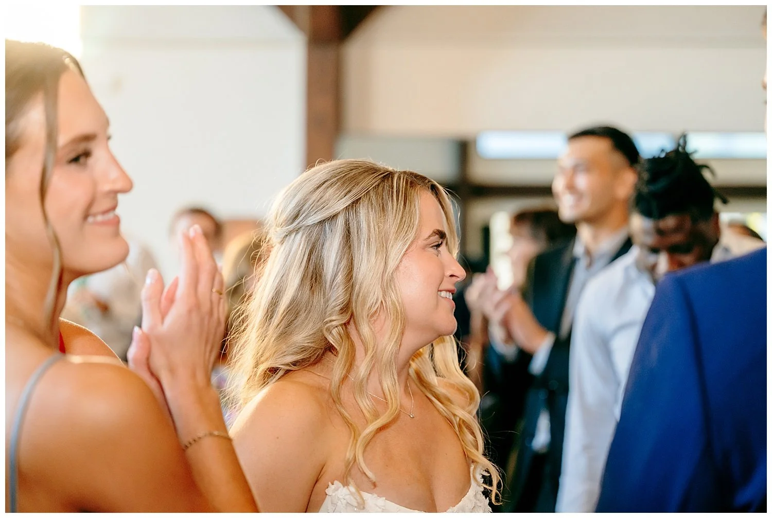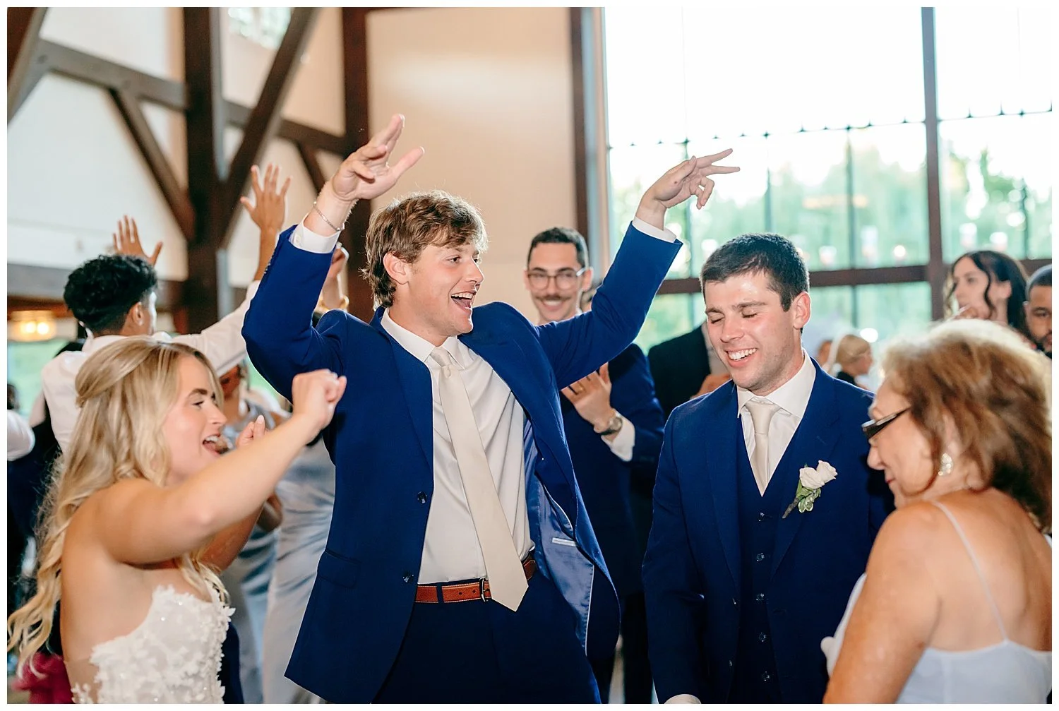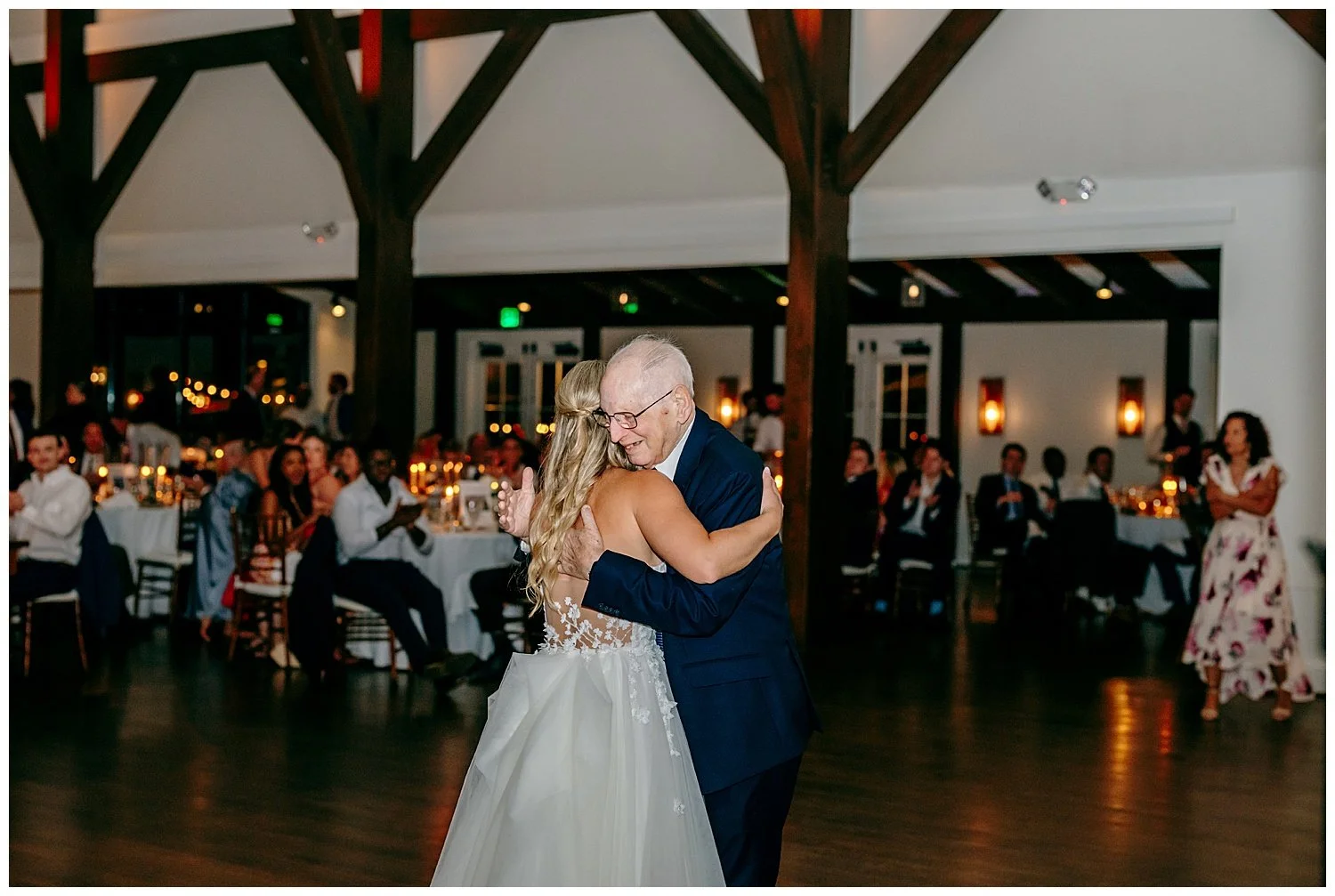 At the reception, guests enjoyed a warm and inviting atmosphere as they gathered around farm tables decorated with blue and white florals and greenery. Toasts were filled with laughter, the dance floor came alive, and the joy of the day carried late into the night.
