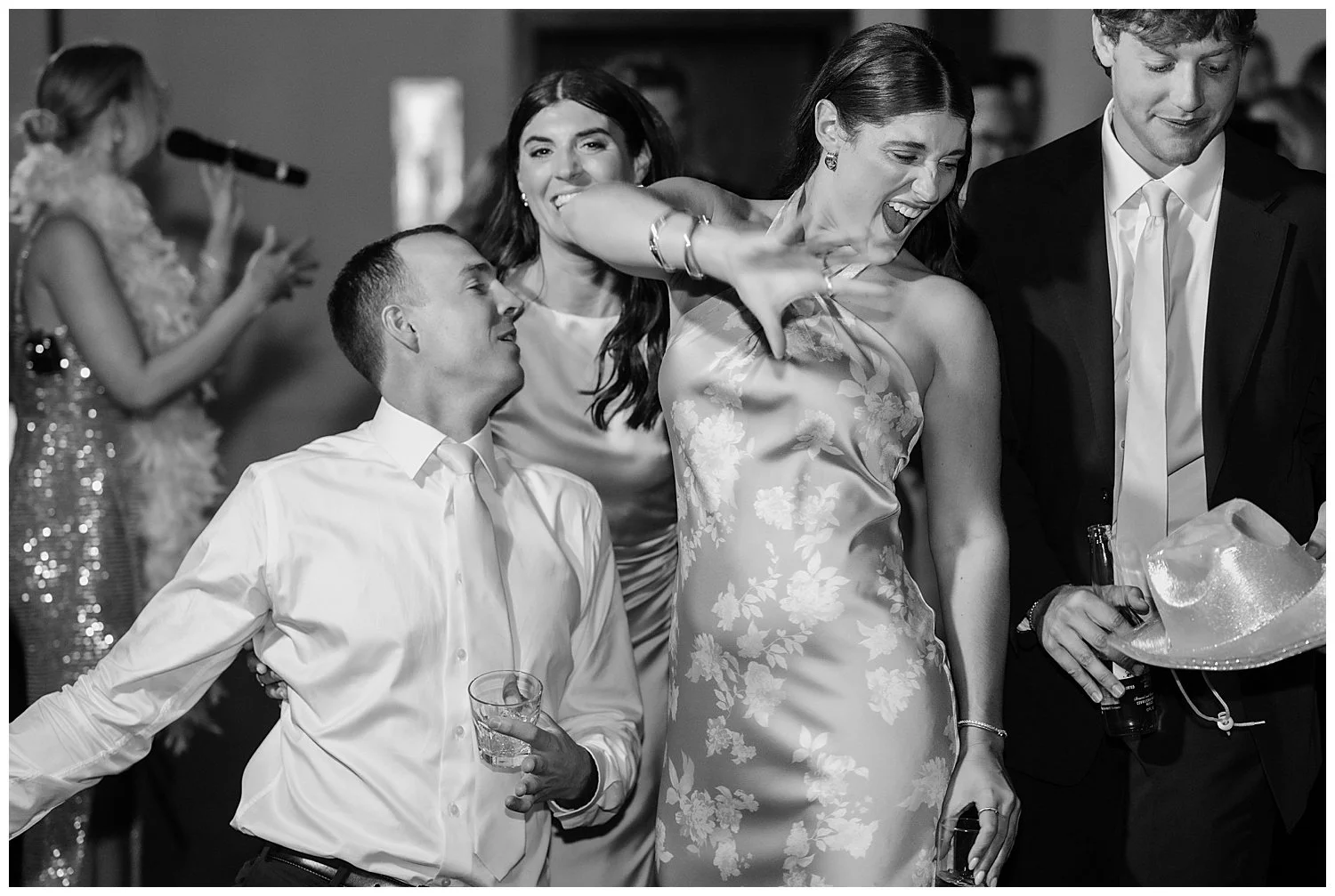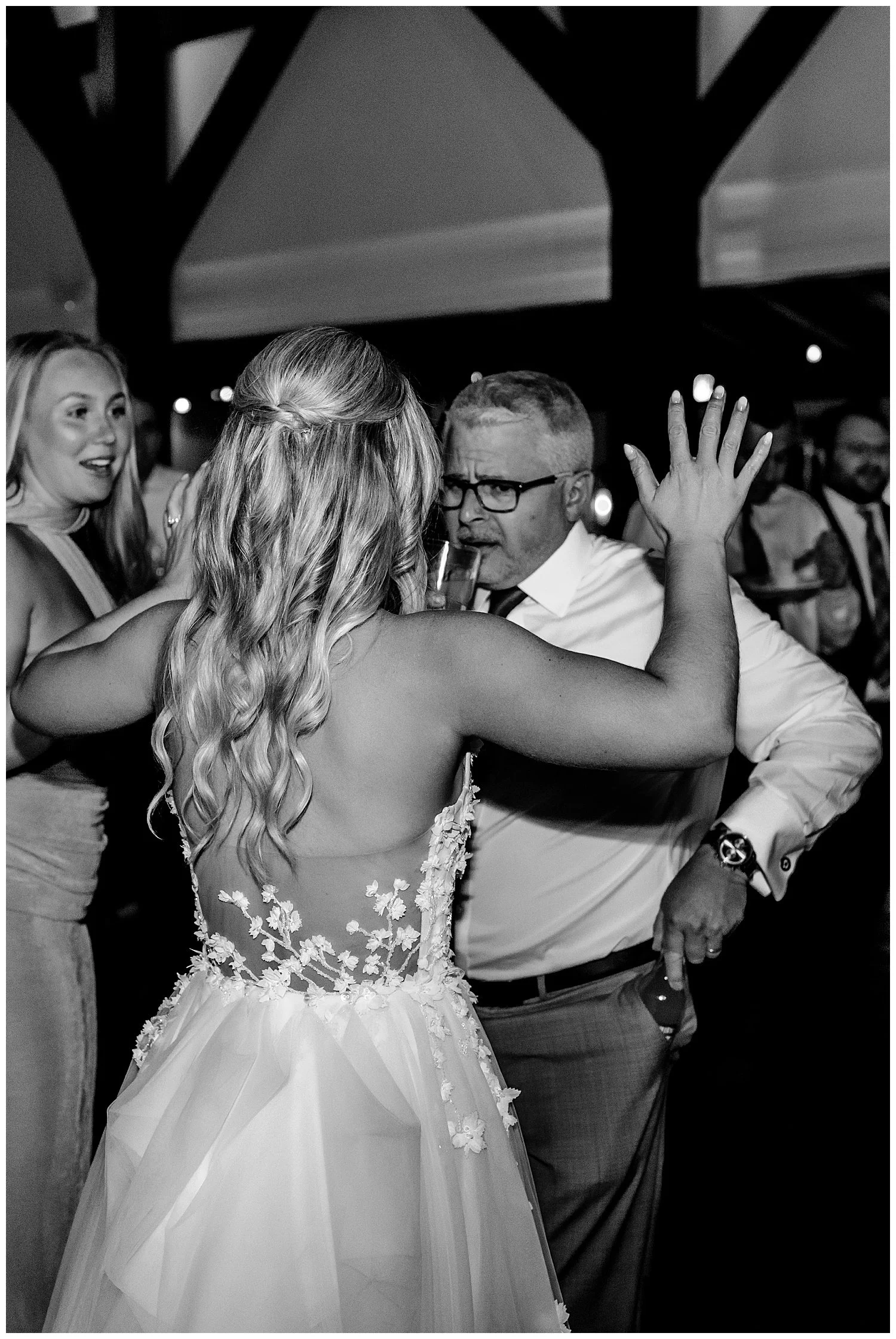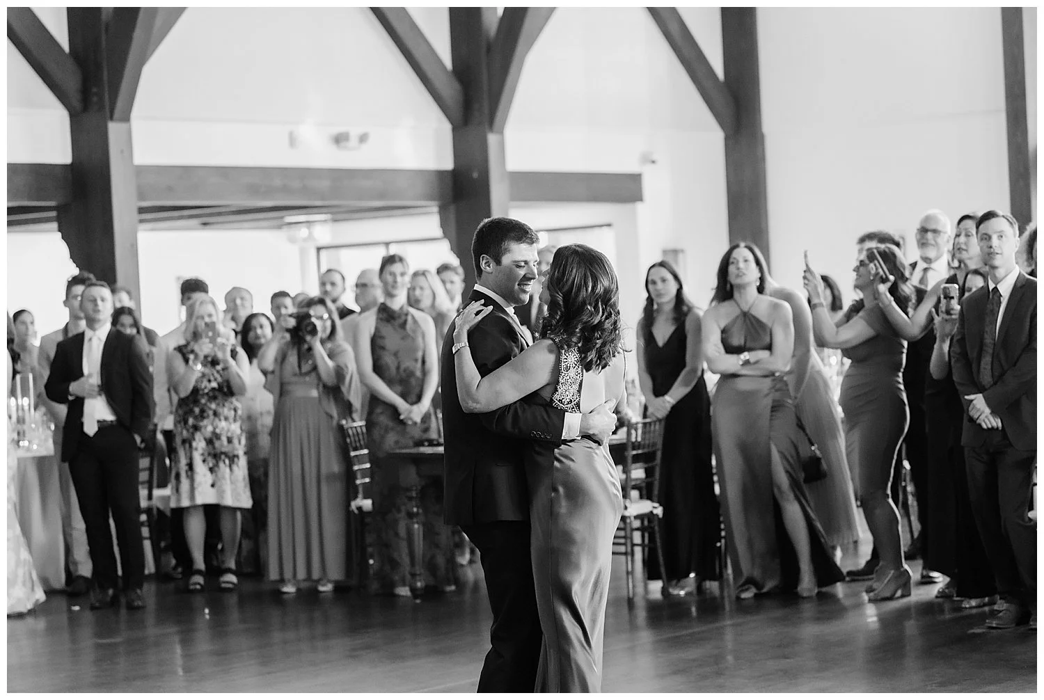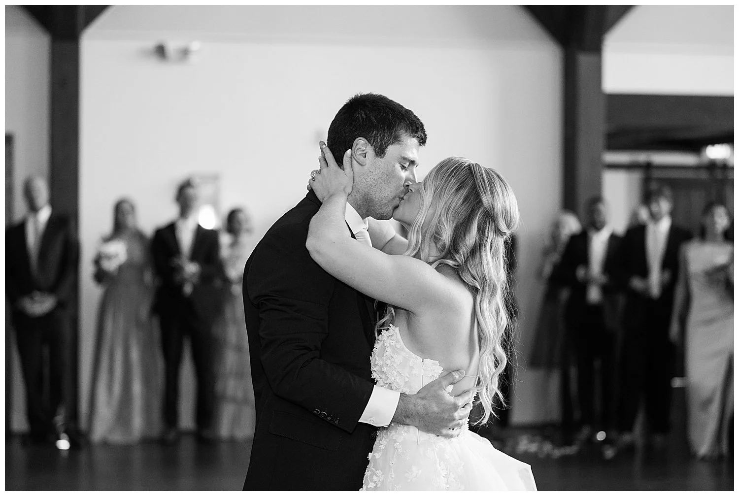 At the reception, guests enjoyed a warm and inviting atmosphere as they gathered around farm tables decorated with blue and white florals and greenery. Toasts were filled with laughter, the dance floor came alive, and the joy of the day carried late into the night.