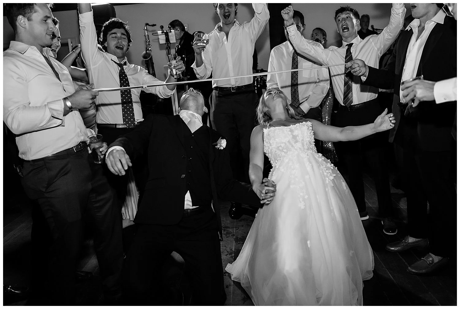 Photographer: Deborah Ann Photography. Venue: Crossed Keys Estate Bridal Gown: Aleena Leena Bridal Shoes Loeffler Randall Groom Suit Suit Shop Baker: Palermo’s Hair BoHo Hair Salon Makeup Beauty on Location Band Craig Scott Entertainment