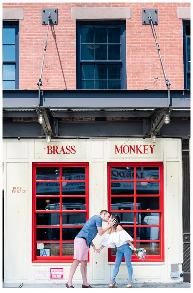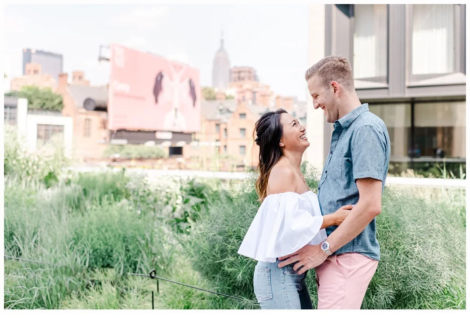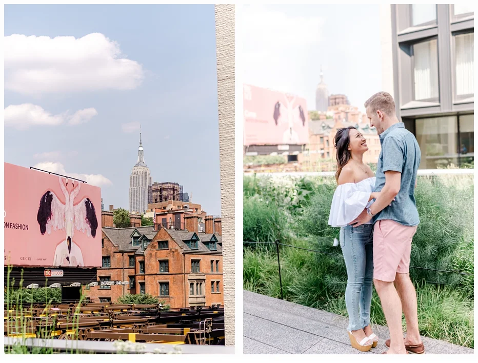 I was delighted when they reached out to me about photographing their special engagement. When I asked them where is the most special place to start our session, they both immediately knew it would be the Brass Monkey! It always was a very special place for them. It was truly one of the hottest days in July and in NYC it is usually warmer than most places but Chika and John did not complain once about the heat! We made our way to the famous High Line for a few photos where we could get a picture of the Empire State Building.