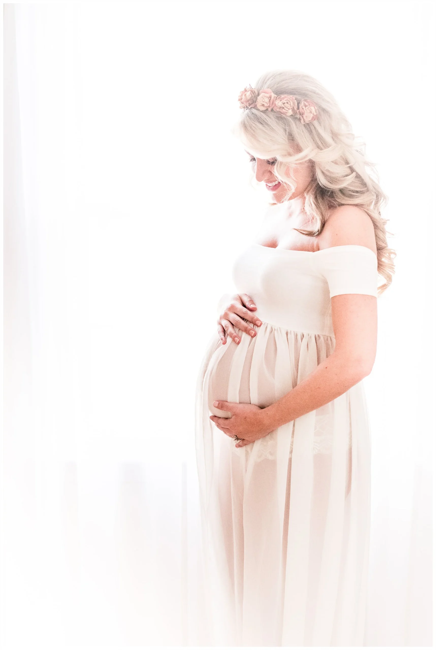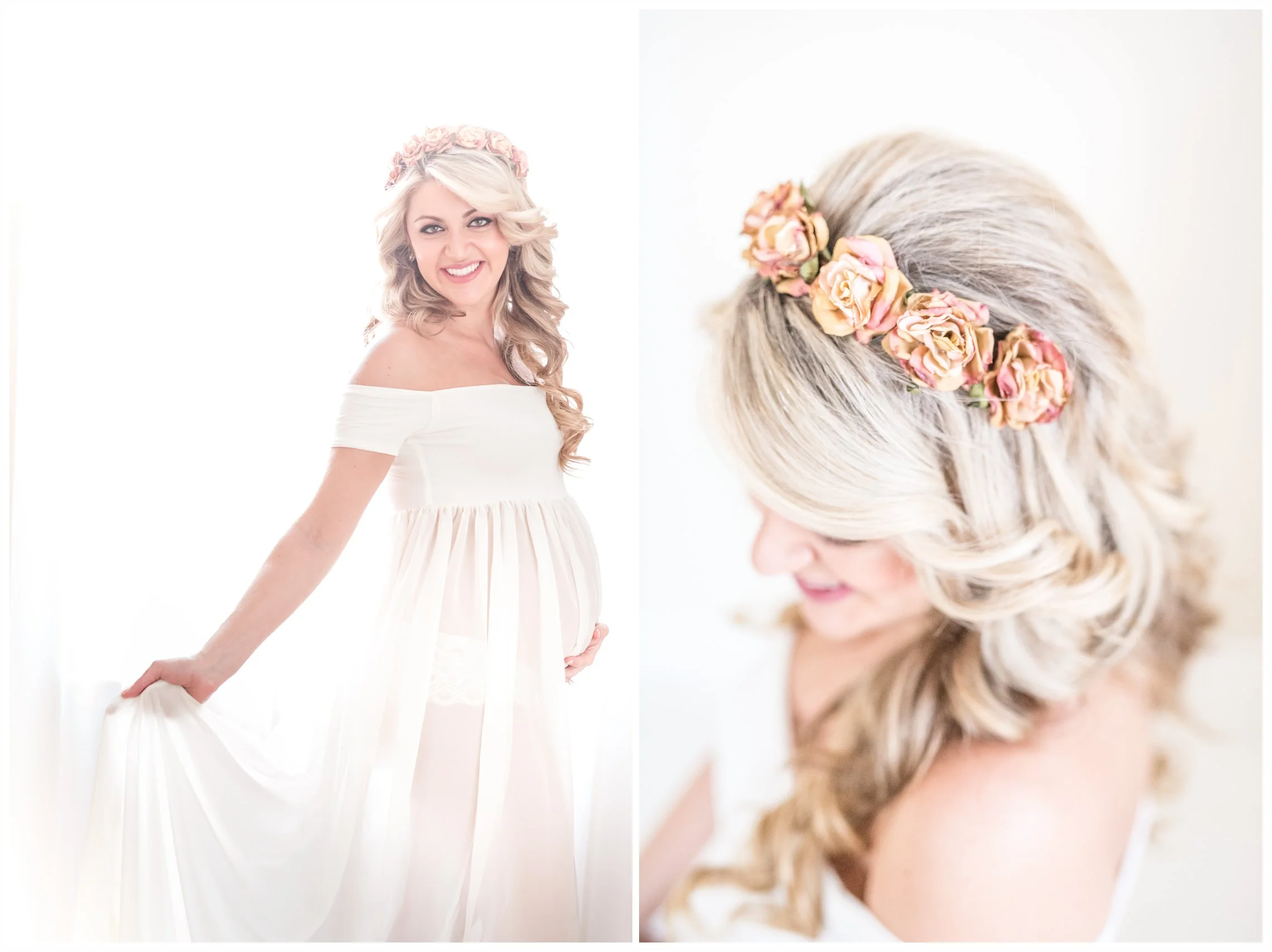 When Nicole contacted me about doing a maternity/newborn session I was so thrilled. She wanted to do something that was whimsical and fresh. She had the most stunning dress for the first part of our session and then when we went outdoors well she really rocked the cutest little outfit!