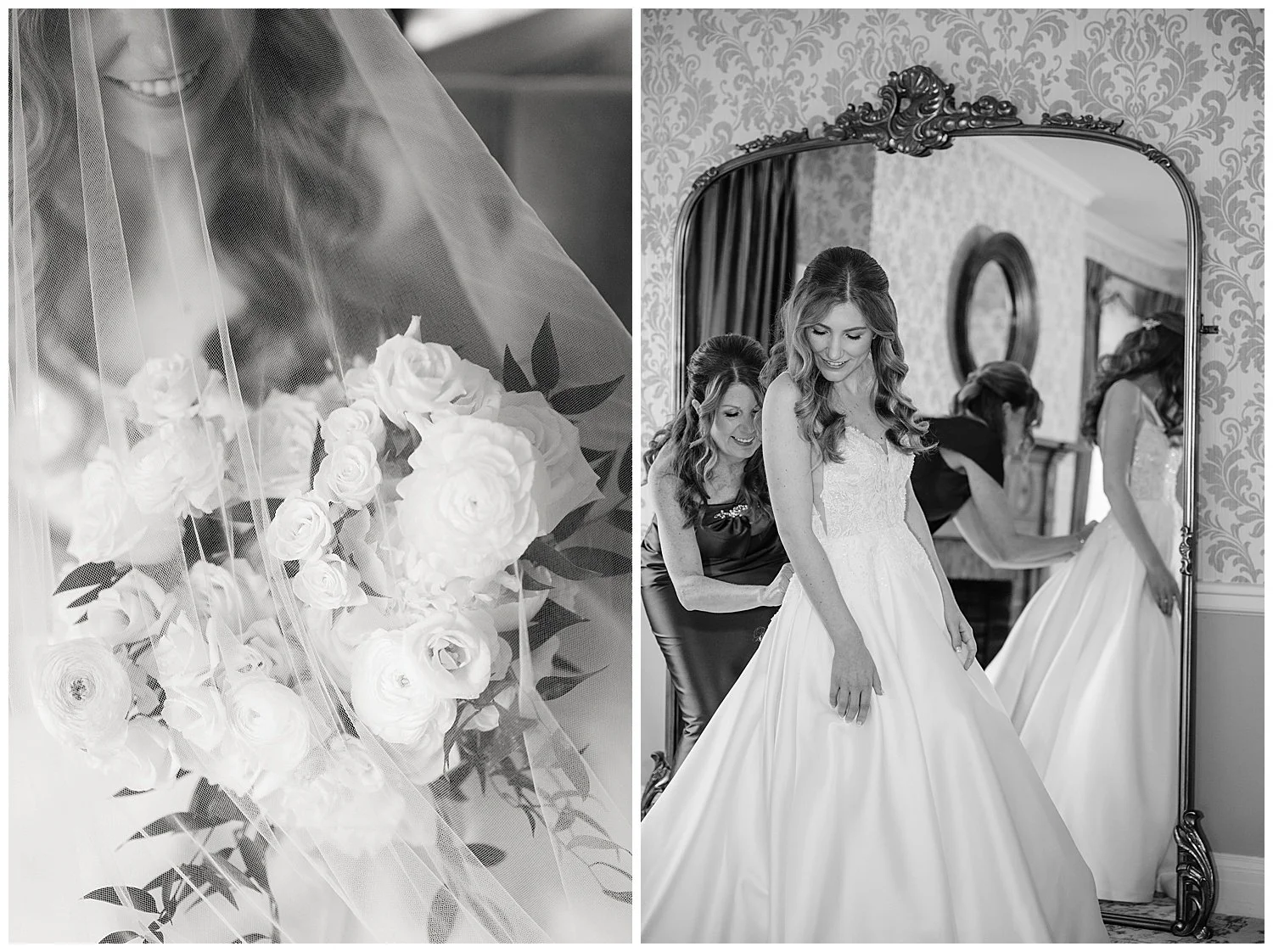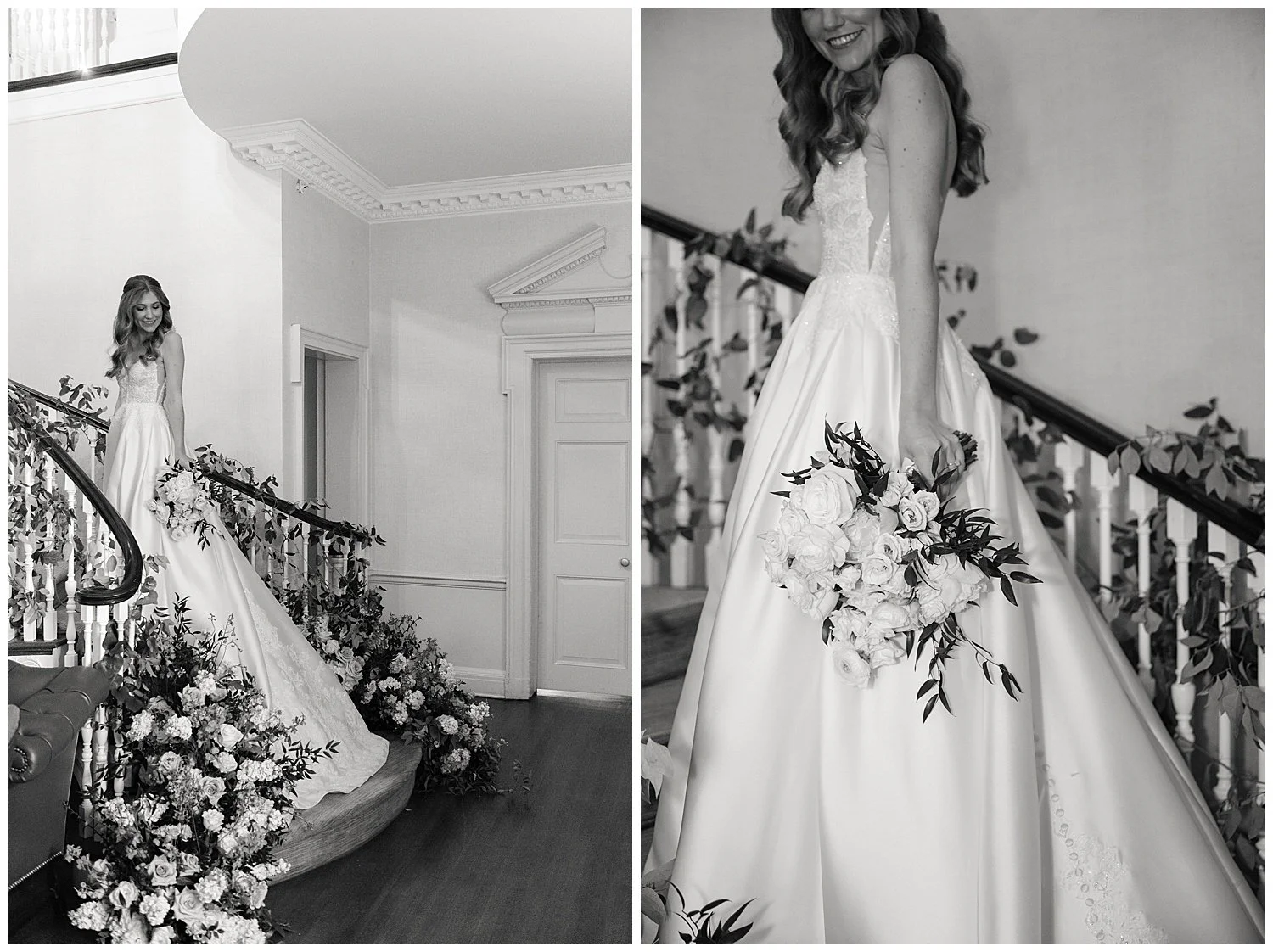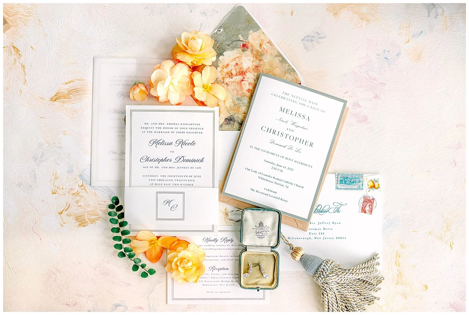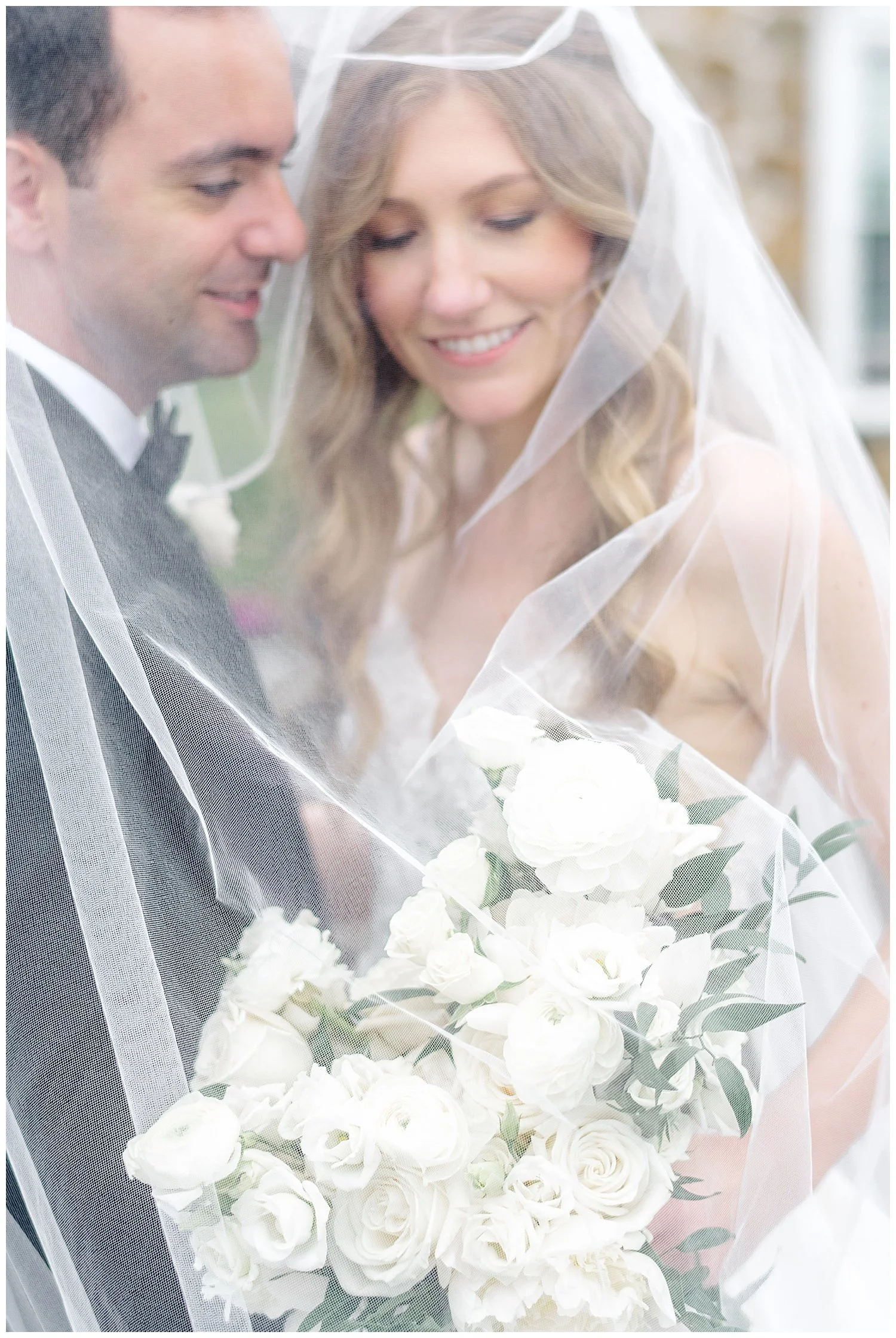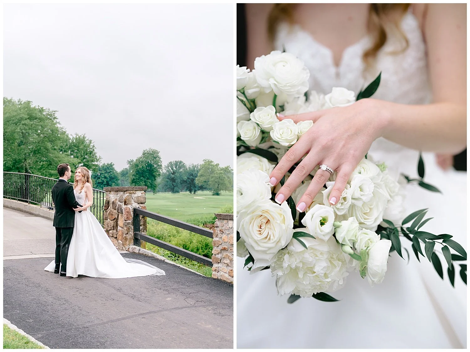 Their day was overcast and a bit rainy, but that did not stop them from having the best portrait sessions! Every detail of Melissa and Chris’s wedding felt thoughtfully curated. The reception florals by Jardiniere Fine Flowers, based in Bedminster, NJ, brought a classic, romantic aesthetic to the ballroom—lush whites, soft blushes, and elegant greenery filled the space with beauty.