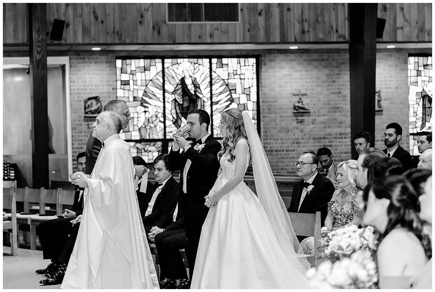 The couple exchanged vows during a traditional Catholic ceremony, which included communion. The setting was filled with love, reverence, and meaningful rituals, surrounded by their closest family and friends.