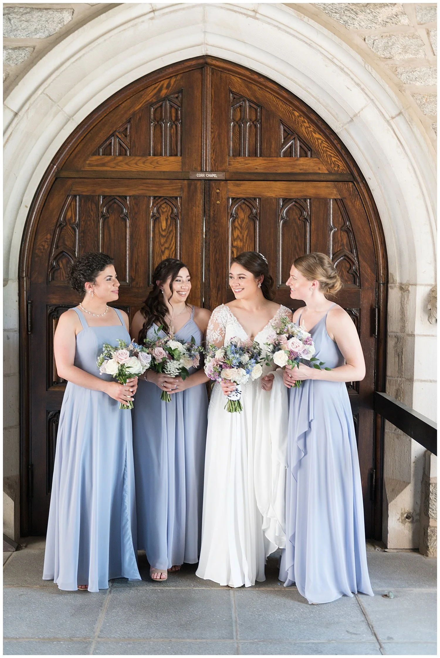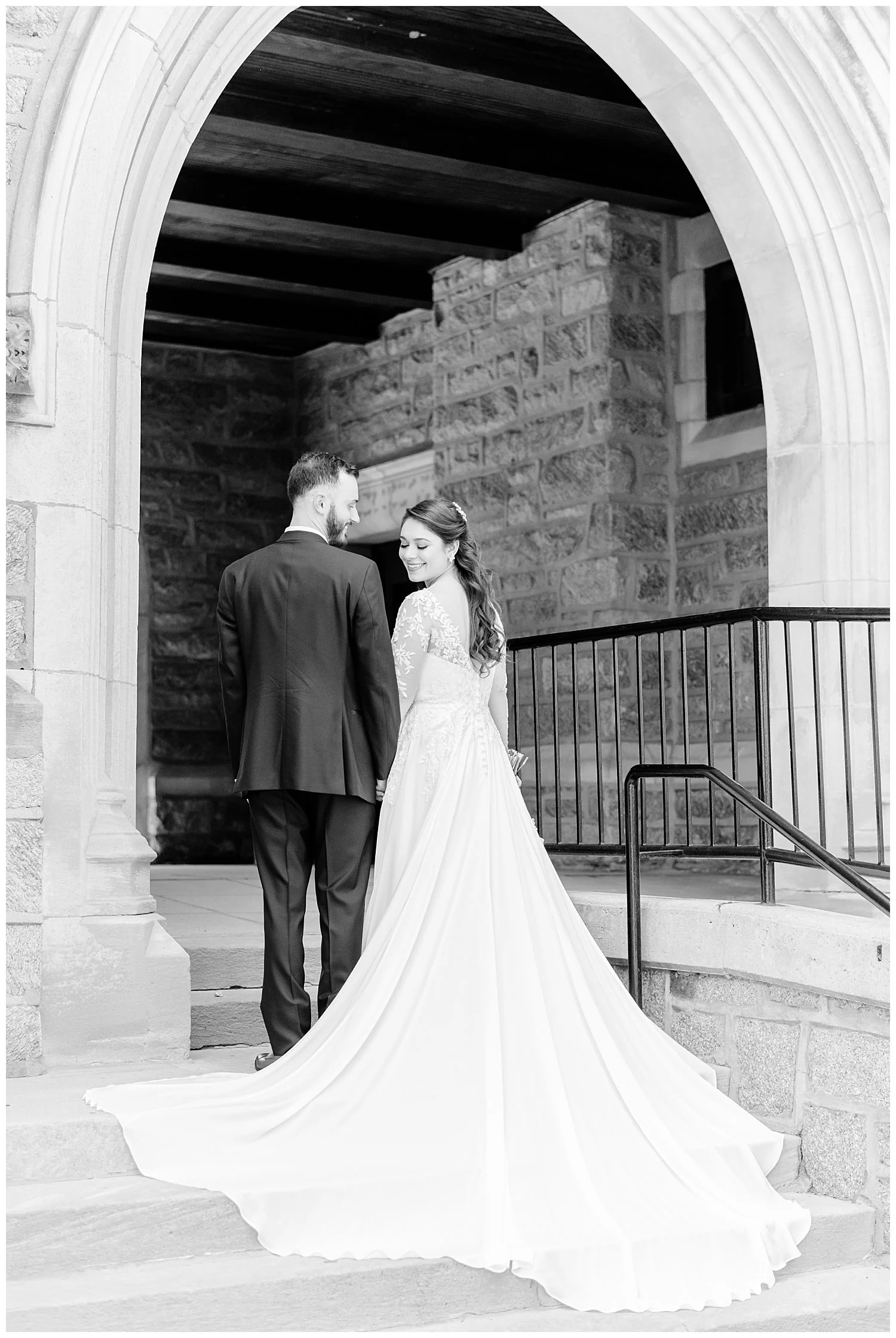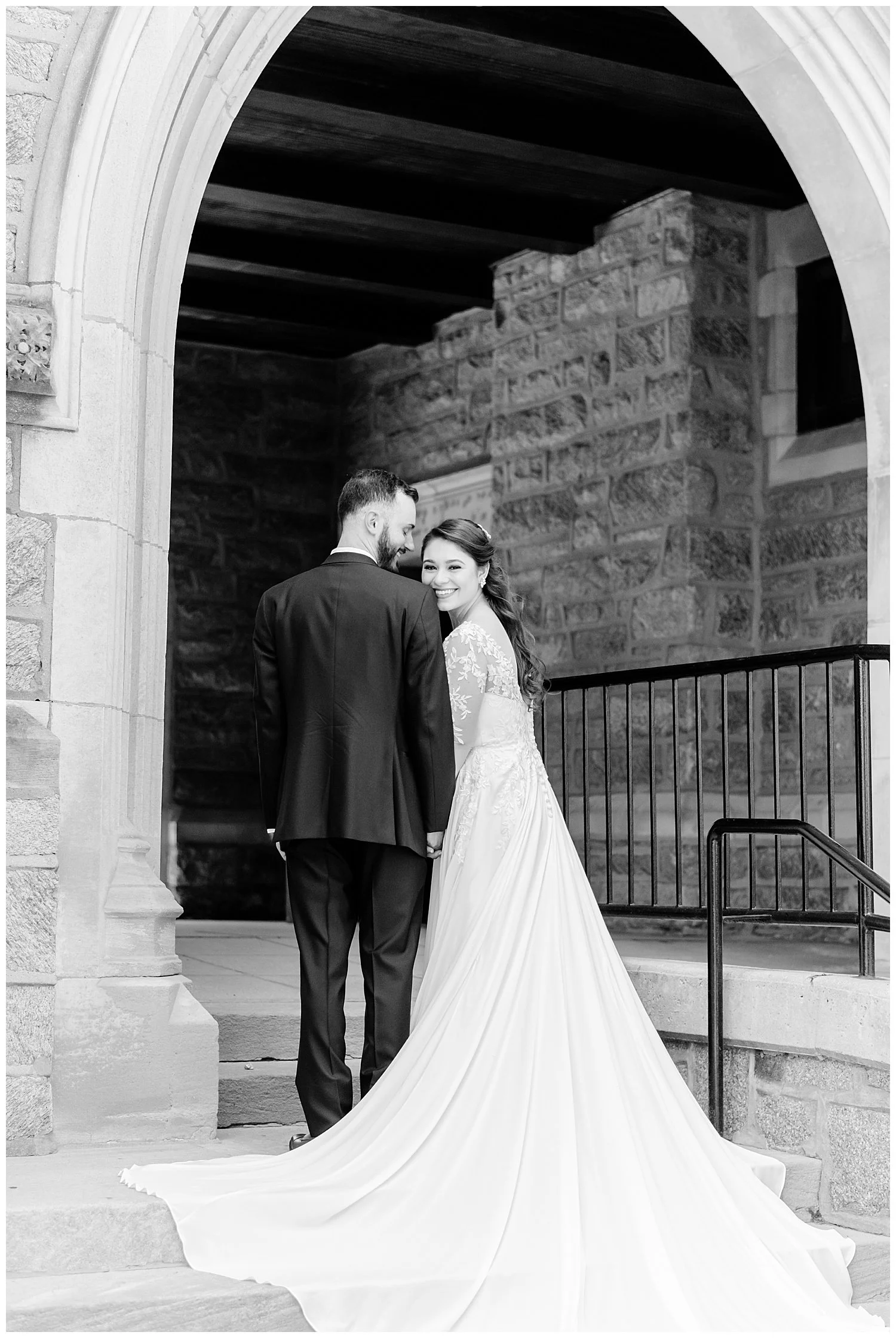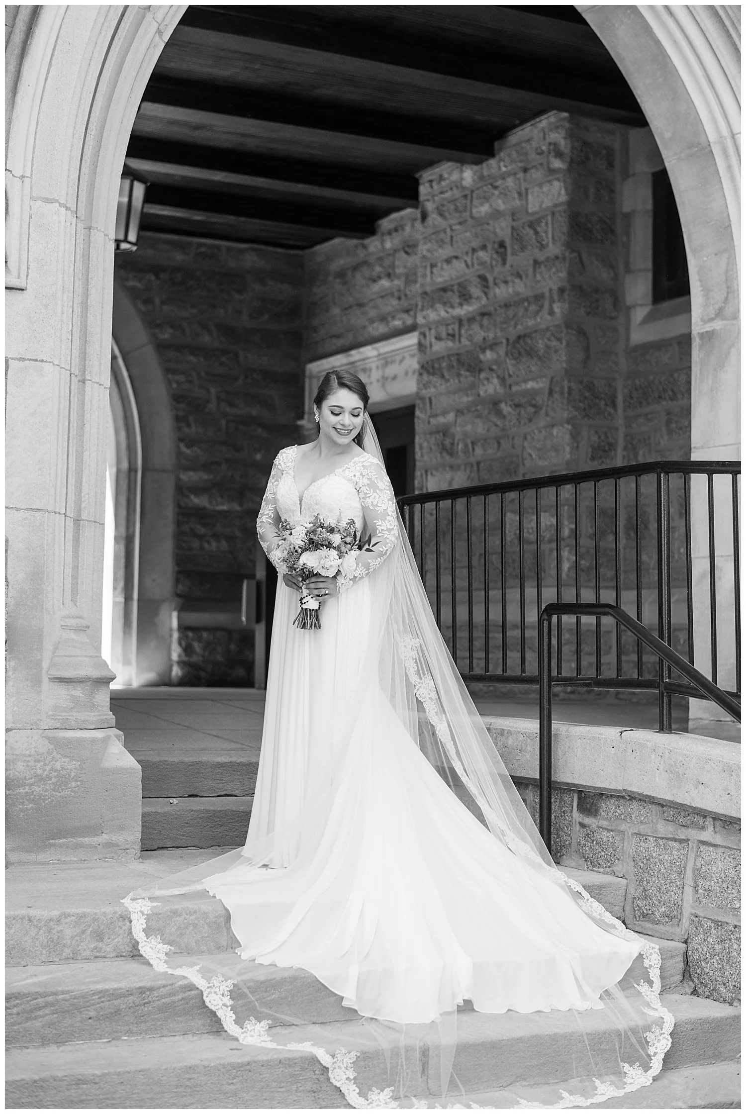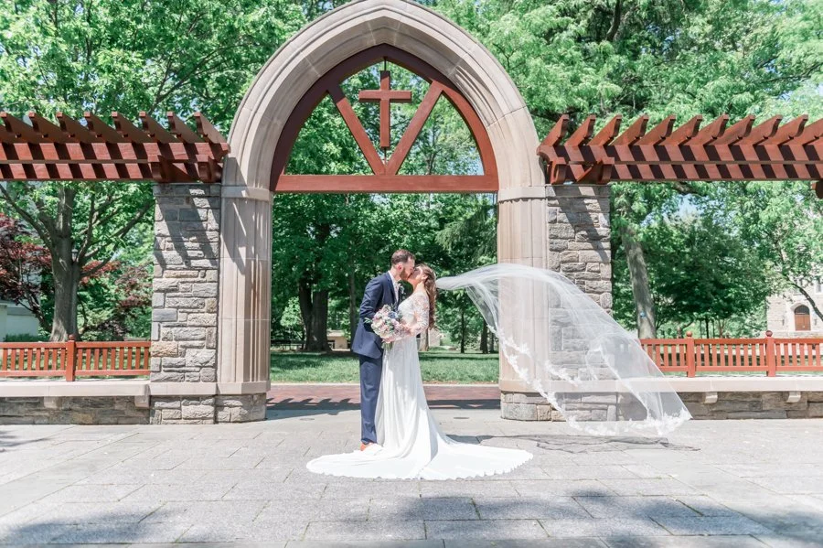 The Chapel at Villanova has to be my favorite church ever to capture a wedding! With the beautiful archways and all the white colored columns and walls, it made for a photographer’s dream lighting space!