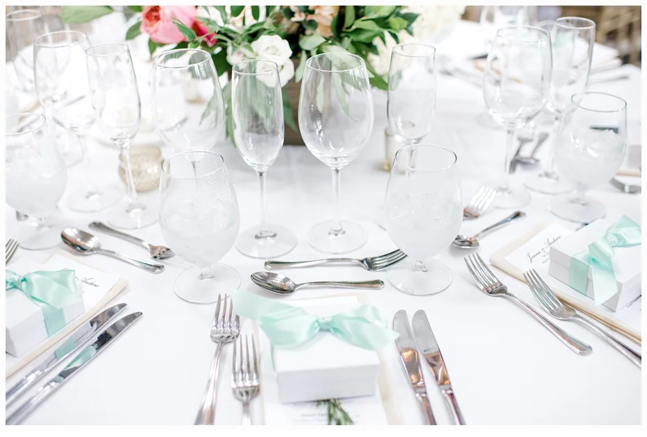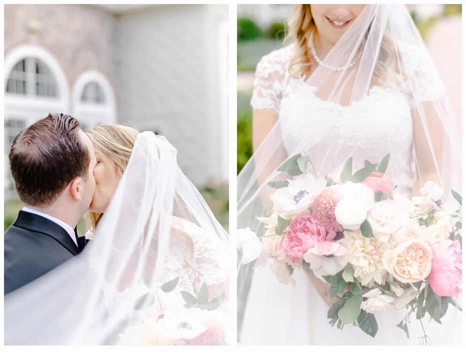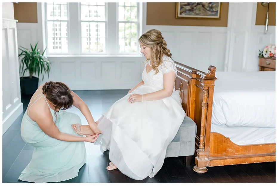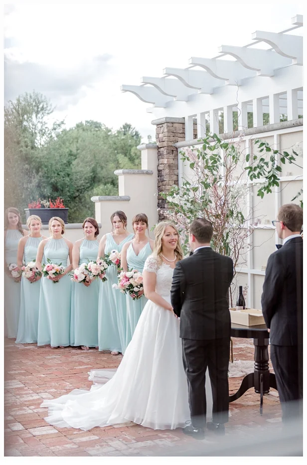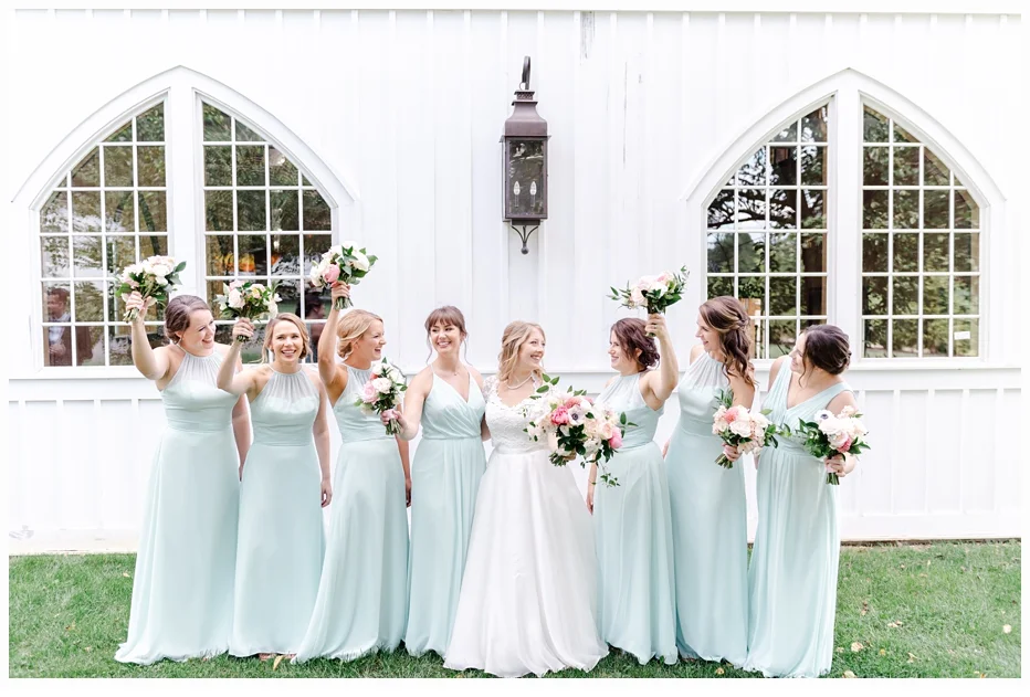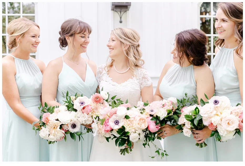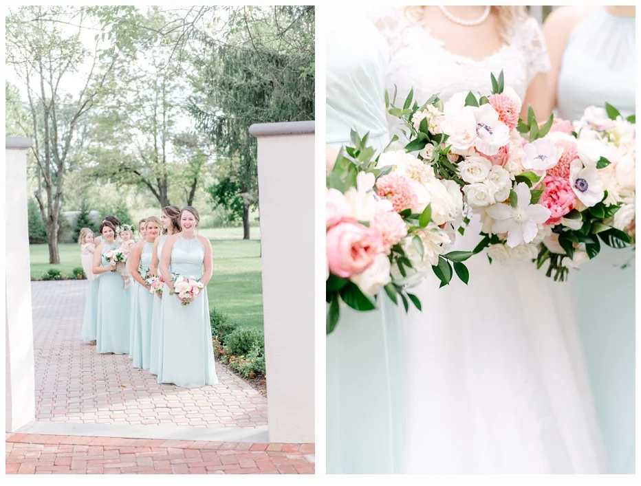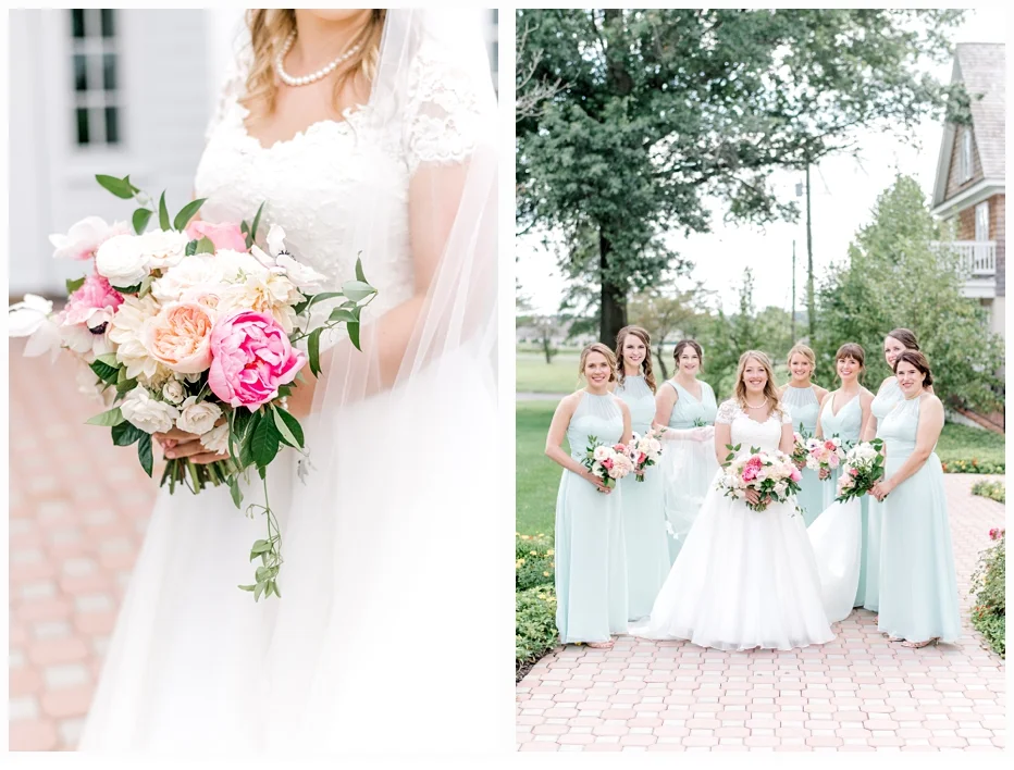 Jenna chose a gorgeous wedding gown designed by Caroline Castigliano and it was perfect in every way. The style looked so beautiful on Jenna. Her color palette was soft blushes with some mint green and she chose some very lovely dresses for her bridesmaids create by Bill Levkoff (one of my favorite designers). She wore the cutest wedding shoes made by Nanette Lapore and they were so comfortable all day!