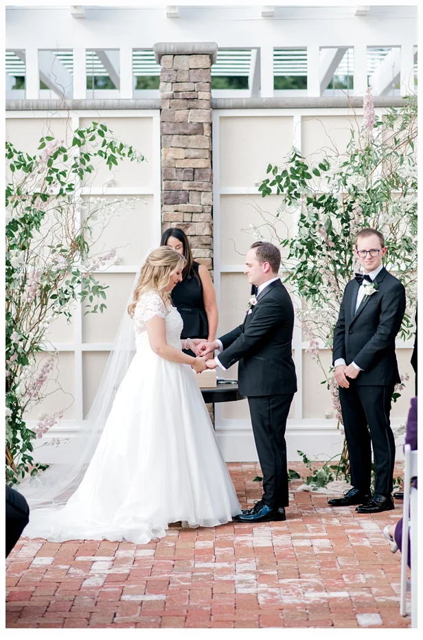 The Ryland Inn has a gorgeous veranda behind one of their beautiful homes and that is where the ceremony takes place. Tracey created a beautiful arbor for them to say their vows. It was so beautiful seeing them surrounded by all of their amazing friends and beautiful family.