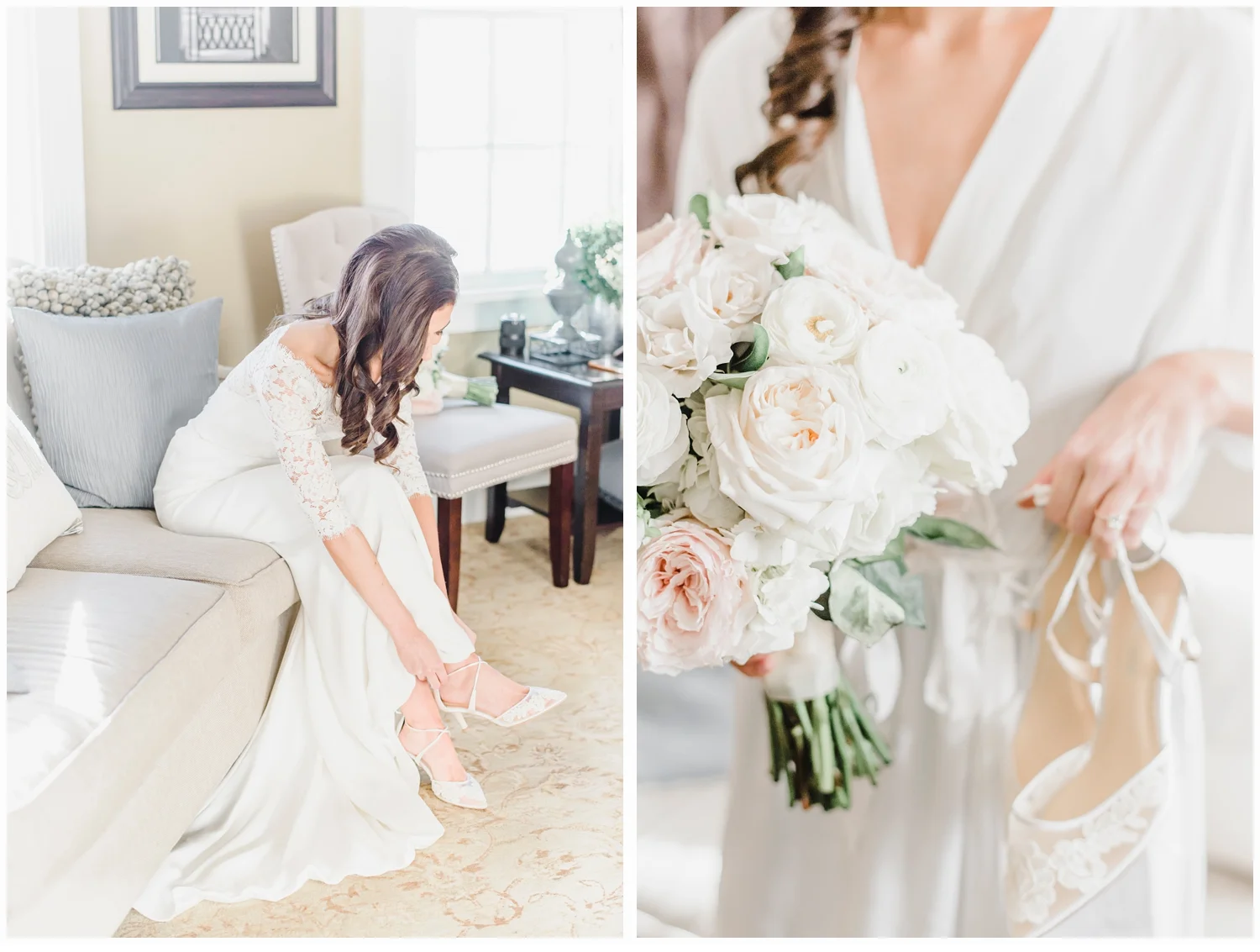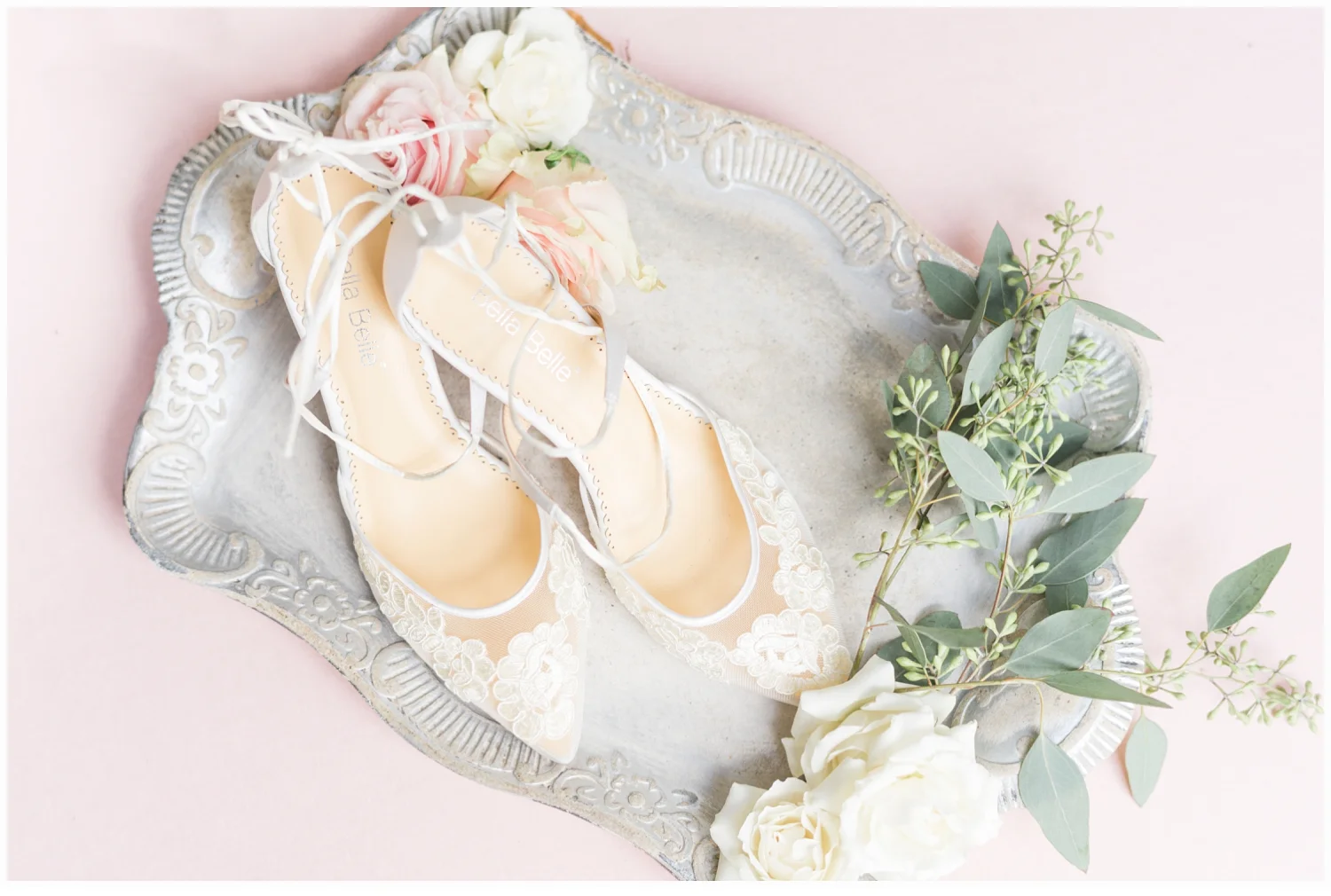 Seeing Justine is such a big dancer and knew she would not sit down at all, she needed a comfortable shoe but at the same time she wanted to add some lace and a very feminine flair to her outfit. She found the most beautiful pair of lace shoes created by Bella Belle with a small heel that stayed on her feet all night long!