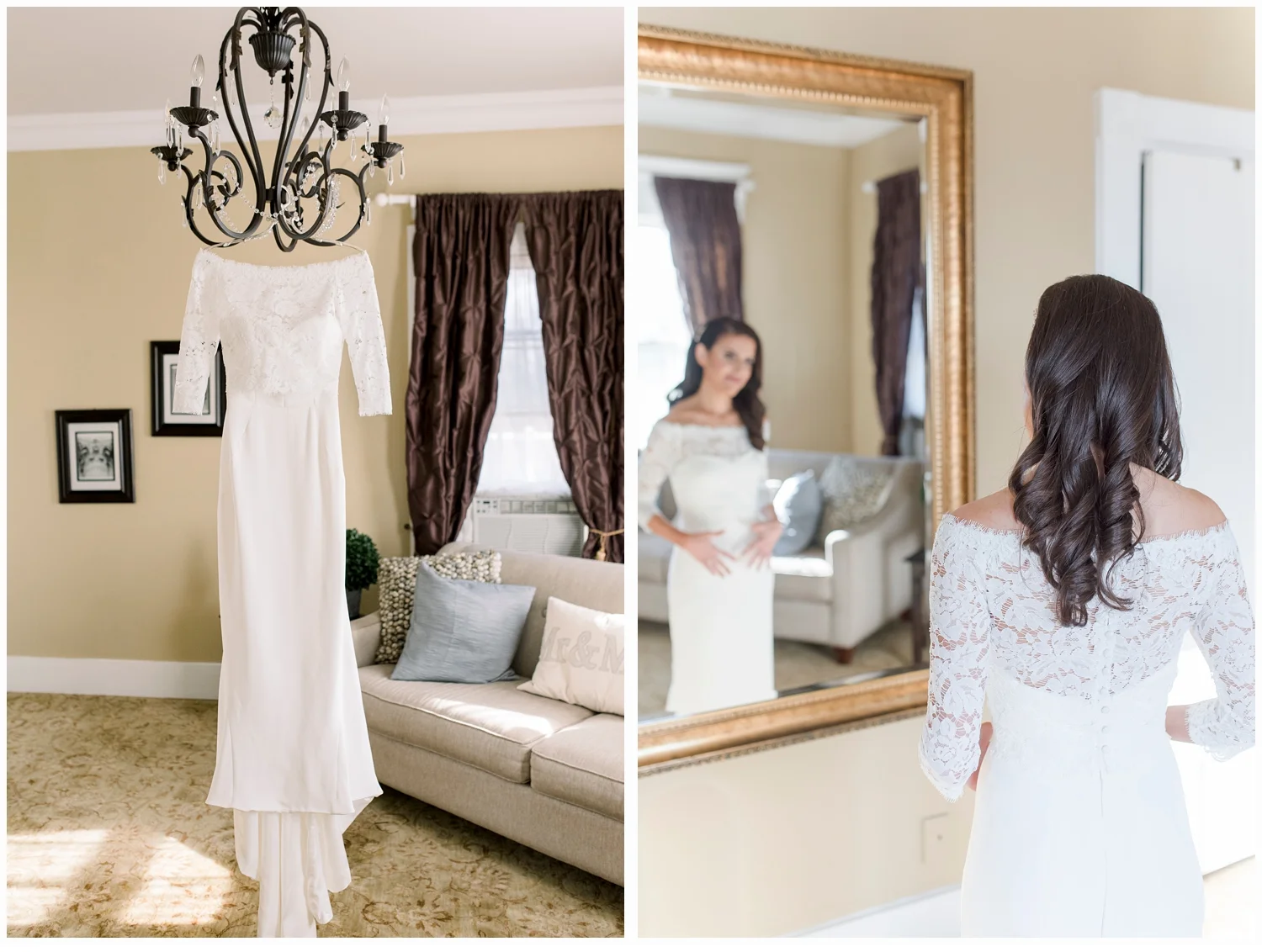 Justine was looking for something that was simple and elegant so when she went to Bridal Atelier Montclair she fell in love with the first one she tried on! It was very simple which is what Justine wanted and the fit was incredible. She also had a beautiful lace jacket for the ceremony that she could easily remove when she went to the reception. It was divine! Justine’s beautiful wedding rings were from Lauren B Jewelry.