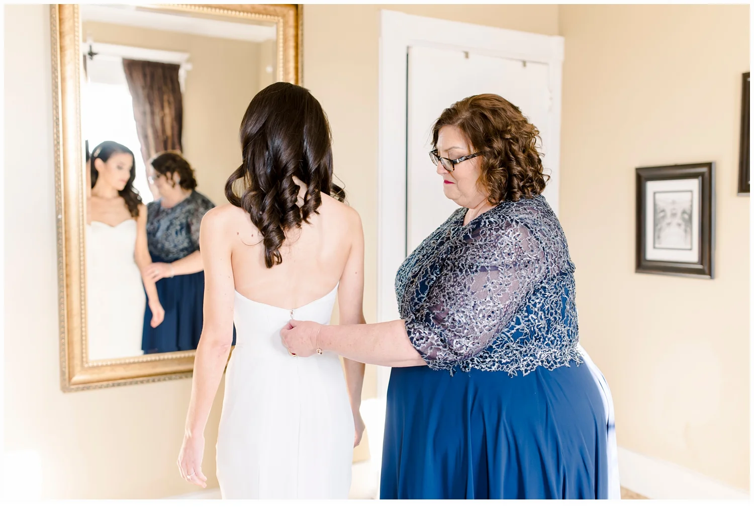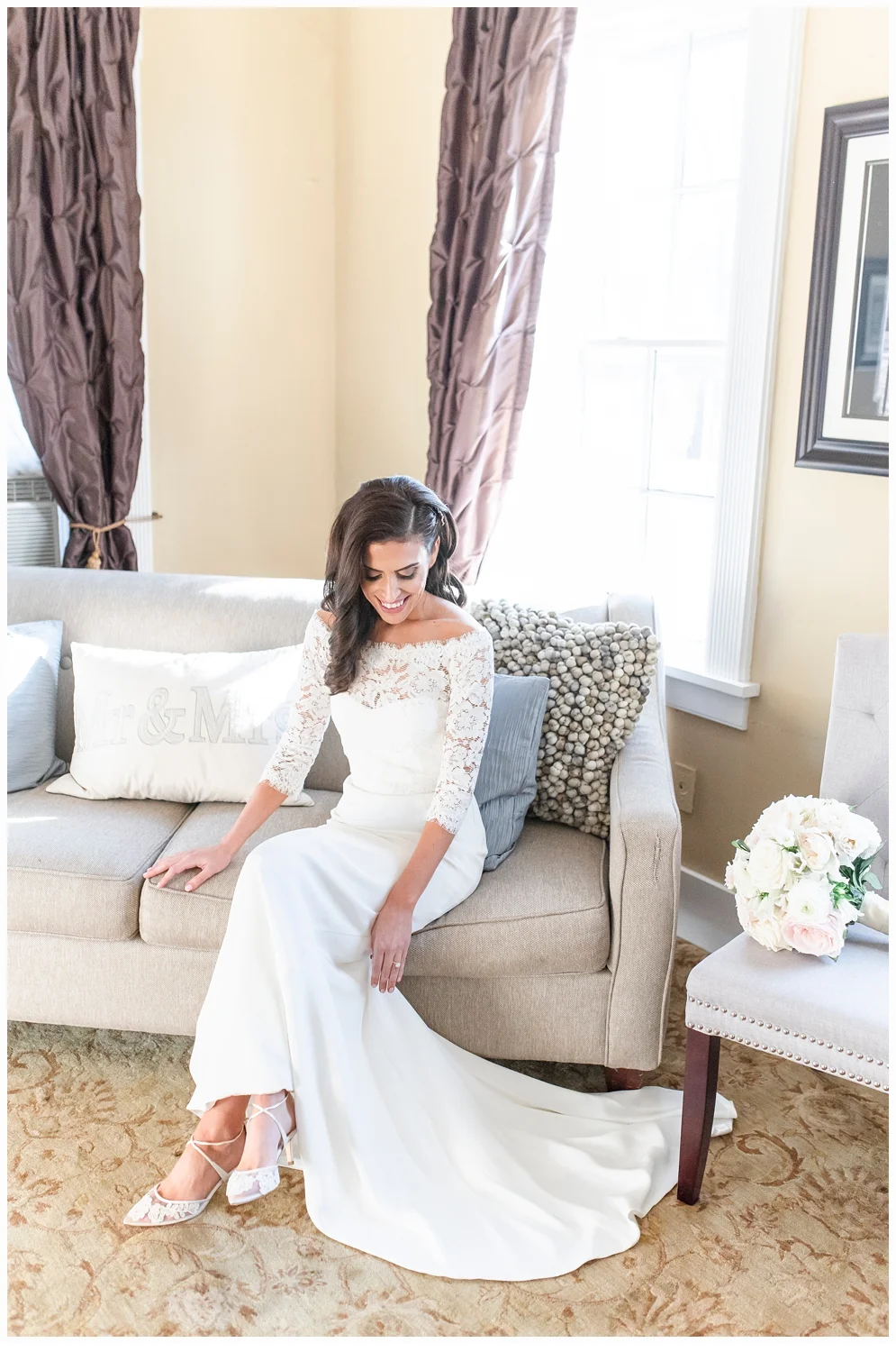 Justine and Mike chose to do a first look outside of the Ryland Inn. It was a very cold day so we actually moved things along pretty quickly! It was a sweet moment just the two of them. Afterwards, it was time for some family portraits, bridal portraits and then some romantic moments captured before the ceremony.