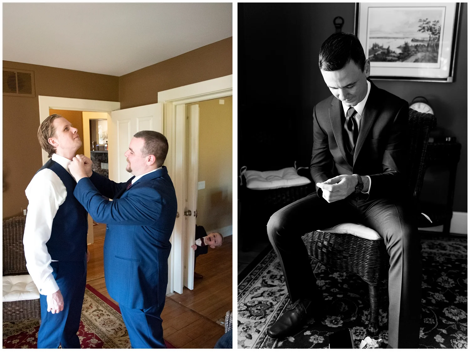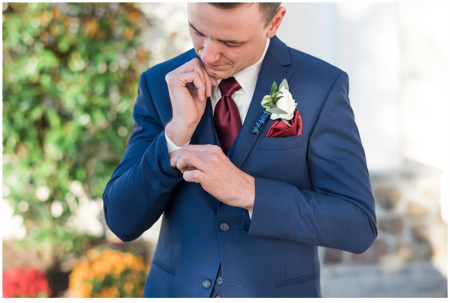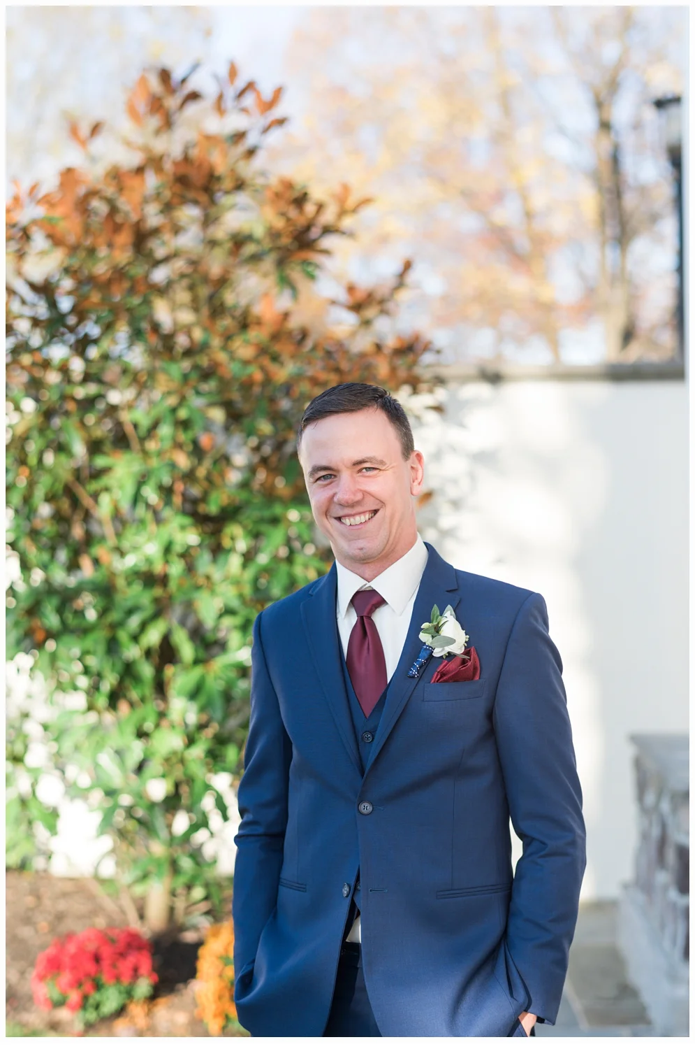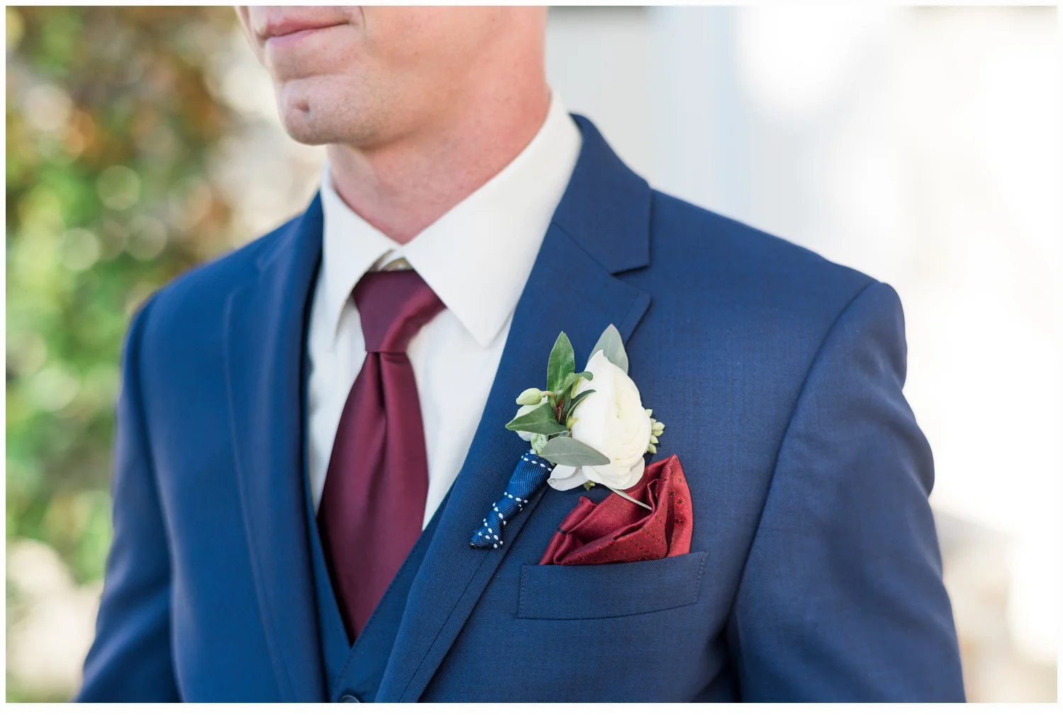 Mike is not a tuxedo kind of guy so he decided to go with a beautiful classic blue suit which he wore with a sharp burgundy tie and it was so perfect with the girls burgundy dresses. His suit was from the Mens Warehouse.