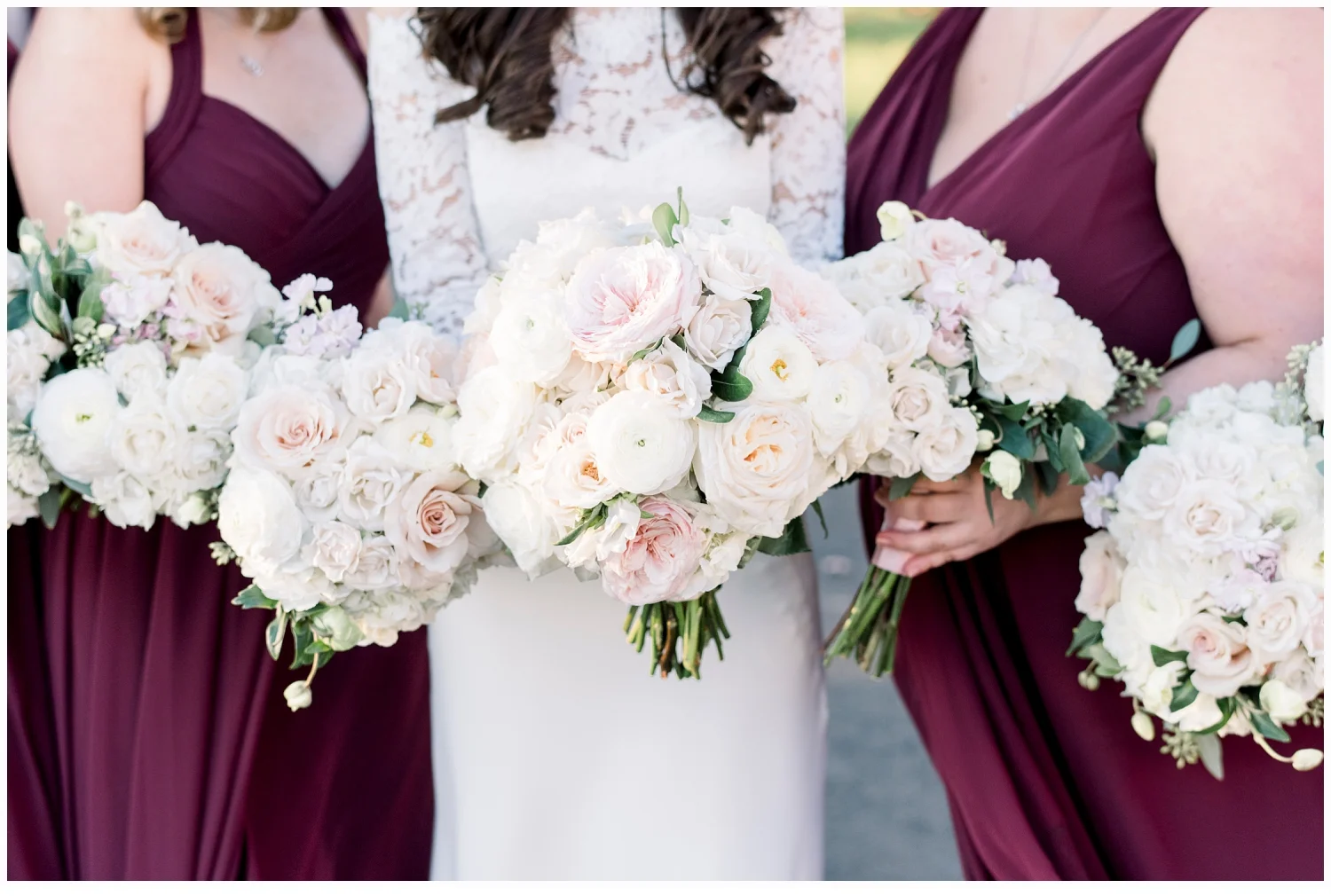 Their wedding was mid November so Justine wanted to pick out a pretty color that would just pop and her choice was perfect! Burgundy was the best color and mixed with their colorful florals designed by Viburnum Designsit was the perfect combination.