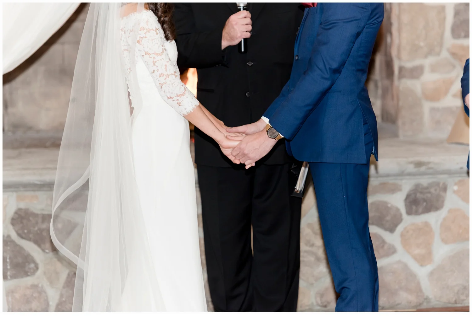 The plan was to have the ceremony outside with some fires roaring and marshmallows roasting but the high winds were just too hard to control so they moved the ceremony inside. It was very beautiful and they had a wonderful and beautiful service.