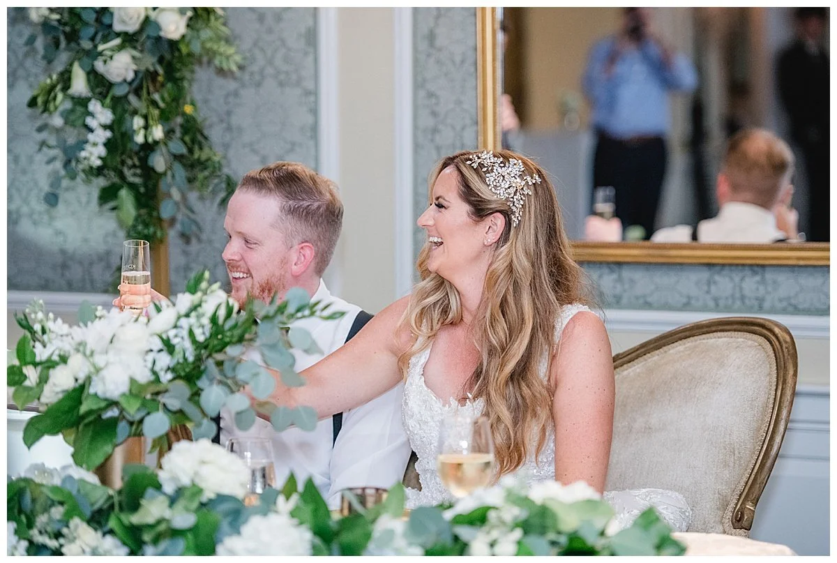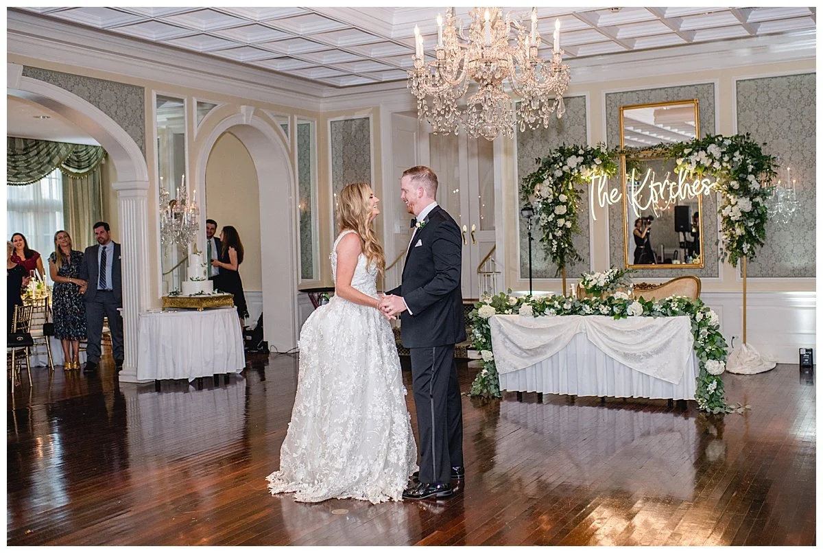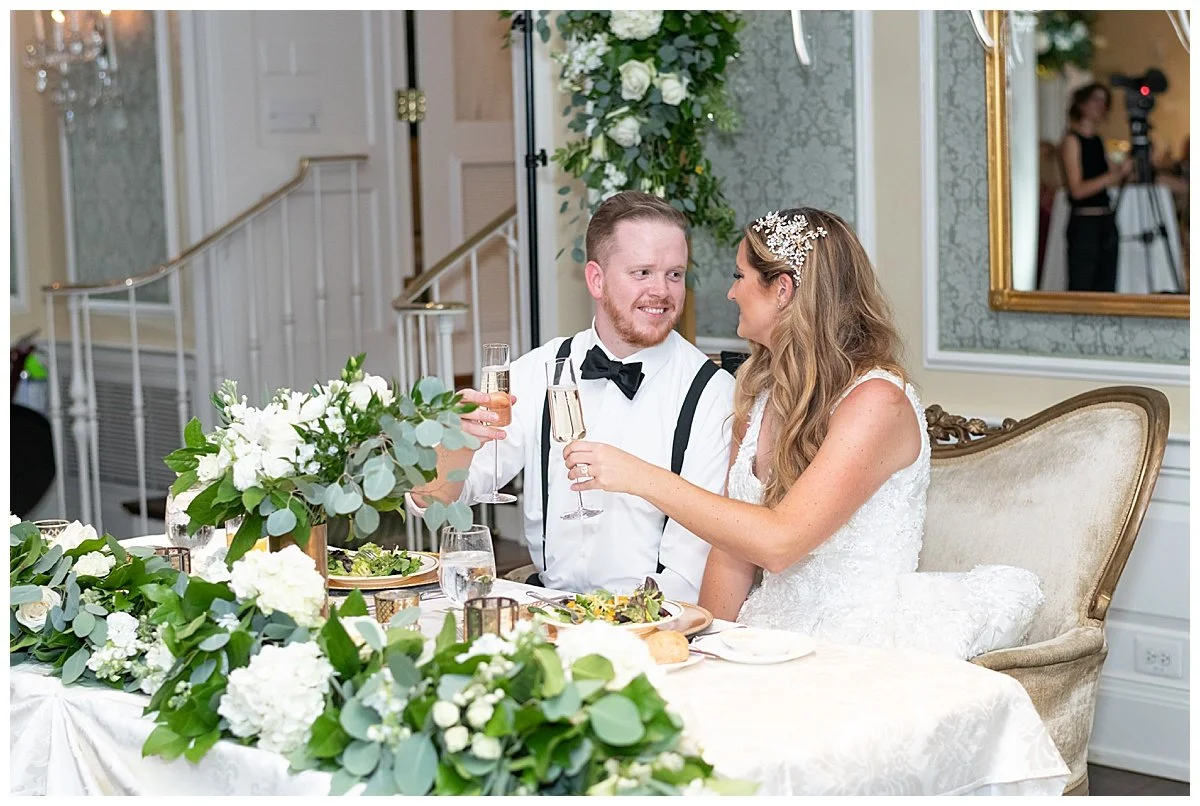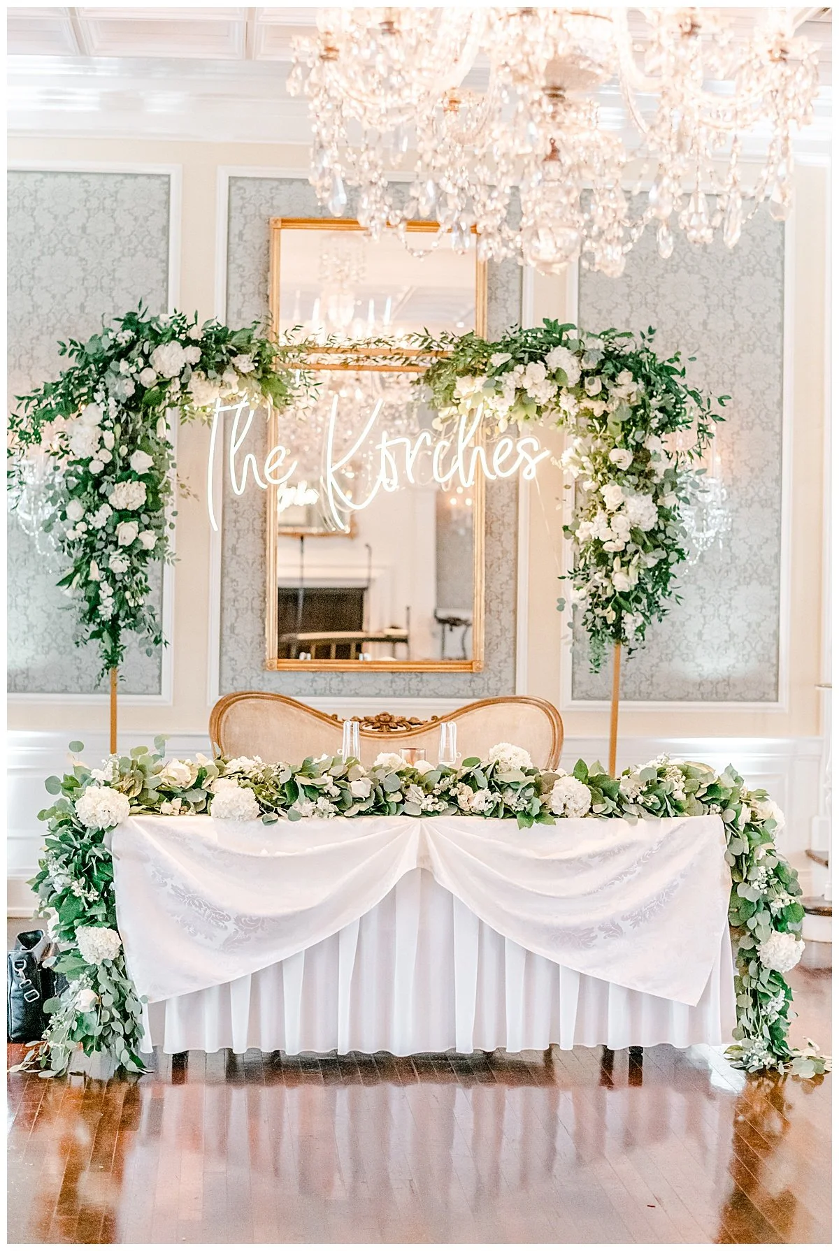 Their beautiful venue, Saucon Valley Country Club was the perfect setting to celebrate their love! Their decor was a beautiful mint greens and blushes with assorted greenery. The sweetheart table was adorned with the most beautiful flower arch. Allium Floral Design outdid themselves with the decor!