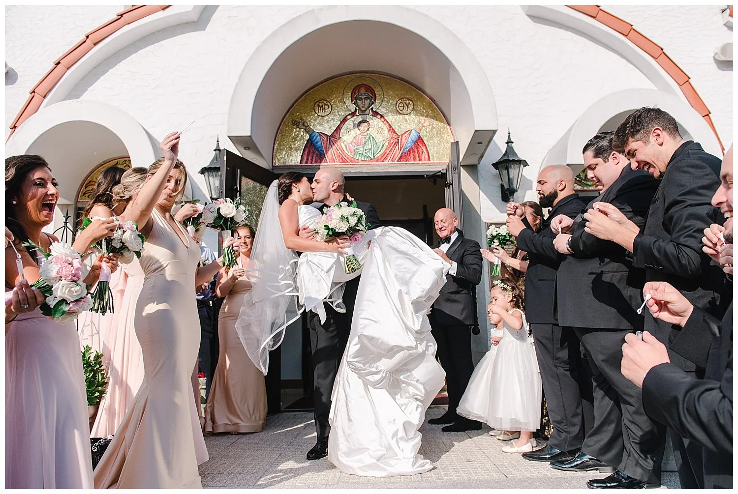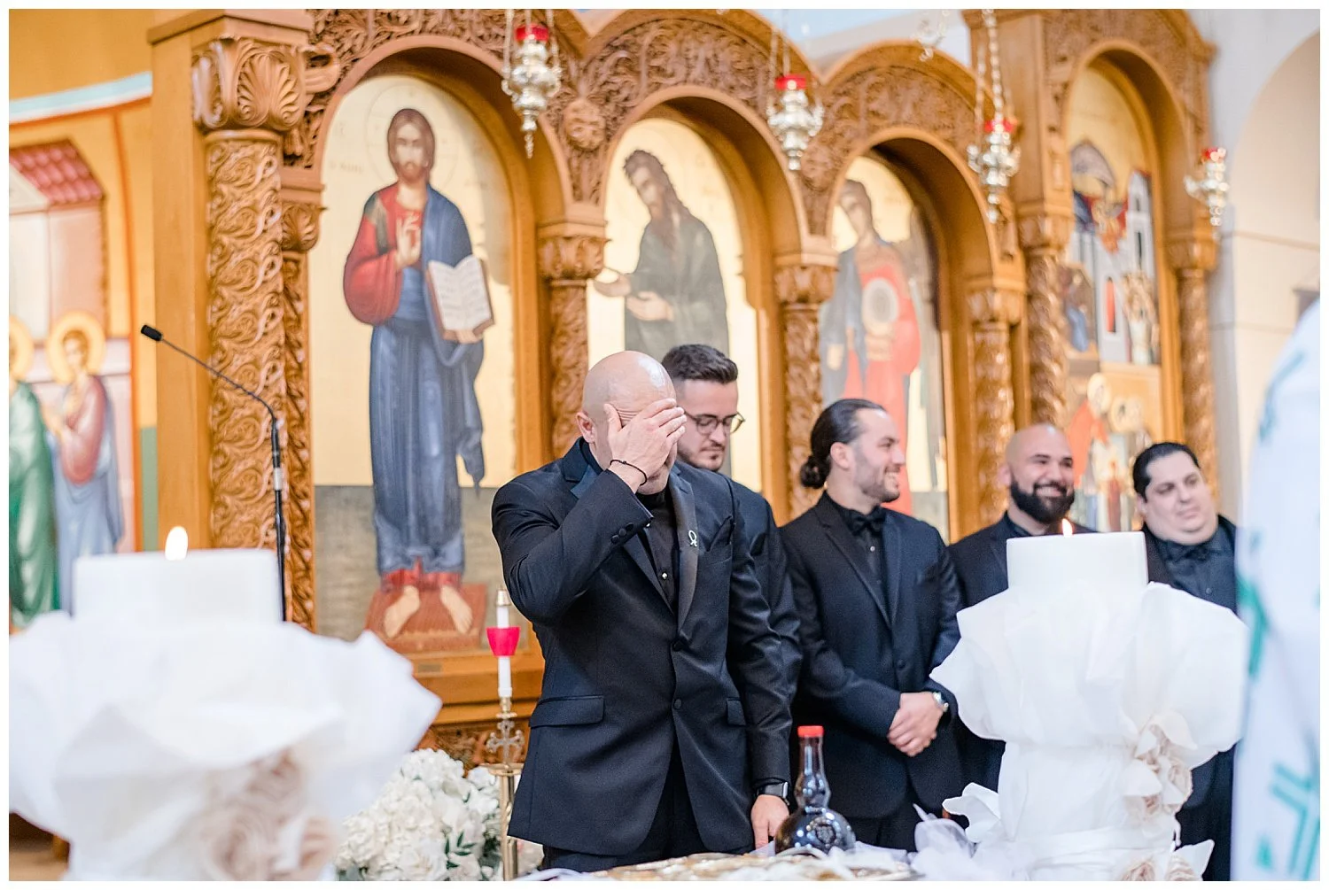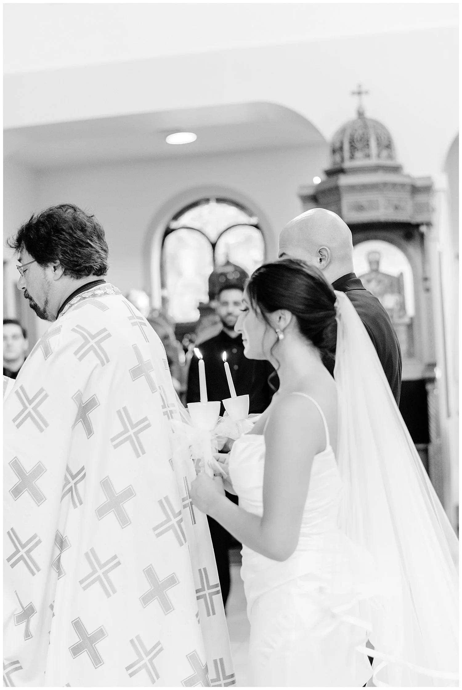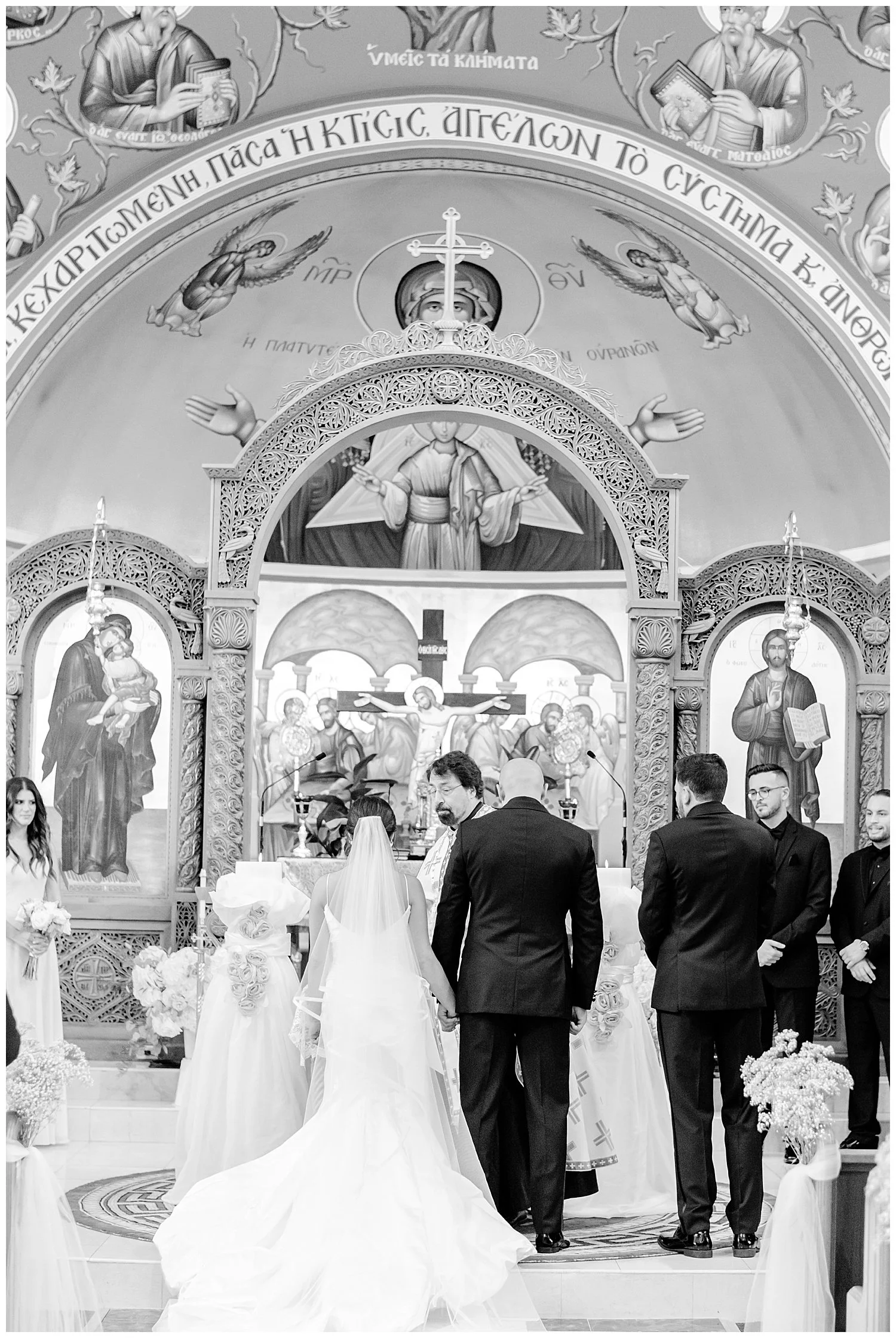 From here, we headed to a beautiful Greek church and I was so impressed with how beautiful the ceremony was. So many lovely traditions. I love when the bride and groom where the gold crowns which are attached by beautiful ribbon.