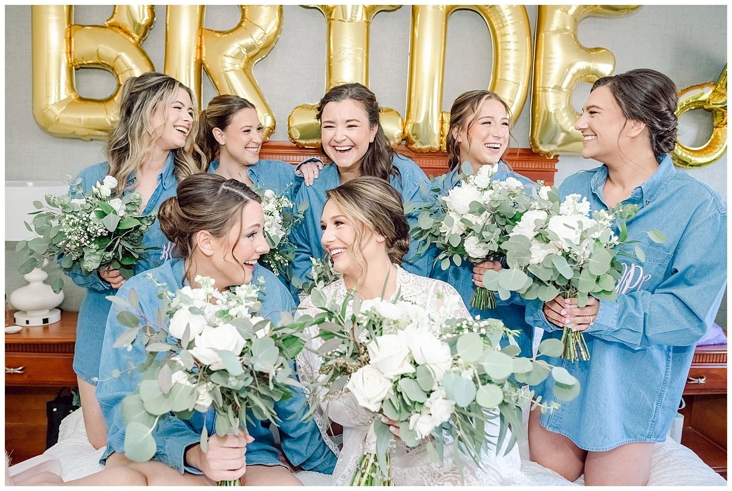 Kyle and her girls, grandmothers and mom and mother-in-law started their day with champagne toasts and giggles in the hotel suite! The bridesmaids decorated the entire room with such pretty balloons.