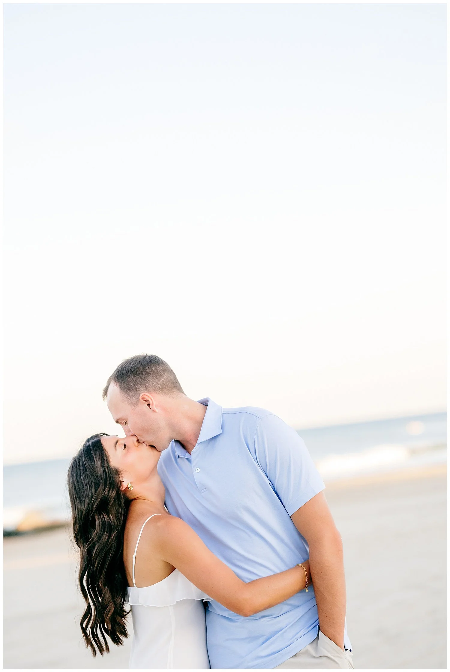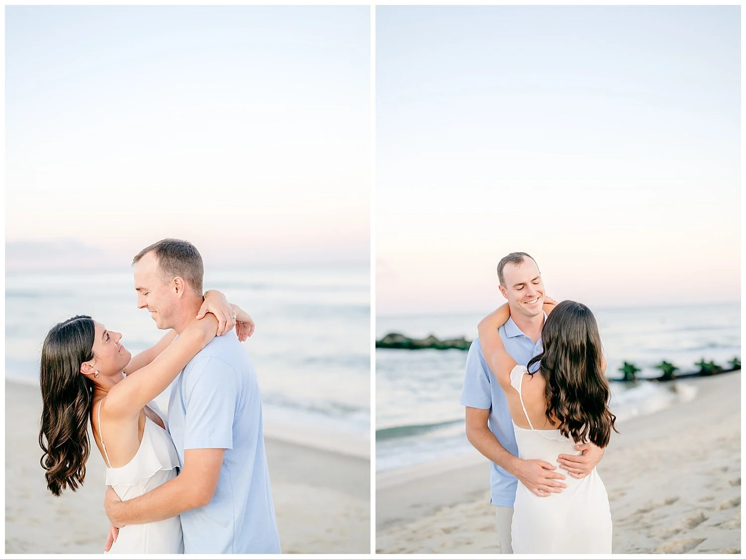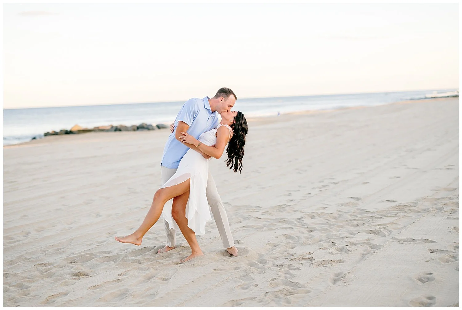 Spring Lake is one of the most sought-after engagement photo locations along the Jersey Shore, and for good reason. With its wide sandy beaches, soft ocean waves, and dreamy golden light, it creates the perfect romantic backdrop for beach engagement photos. For Emma and Andrew, this location felt like home away from home—bringing together their love for the beach, fresh sea air, and the peaceful sound of the ocean.