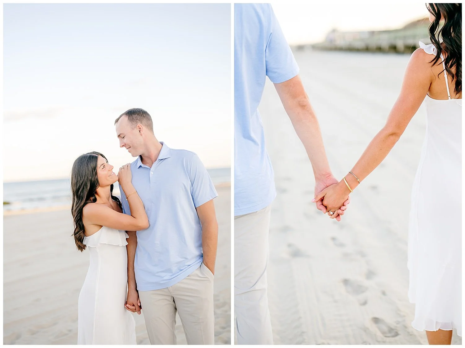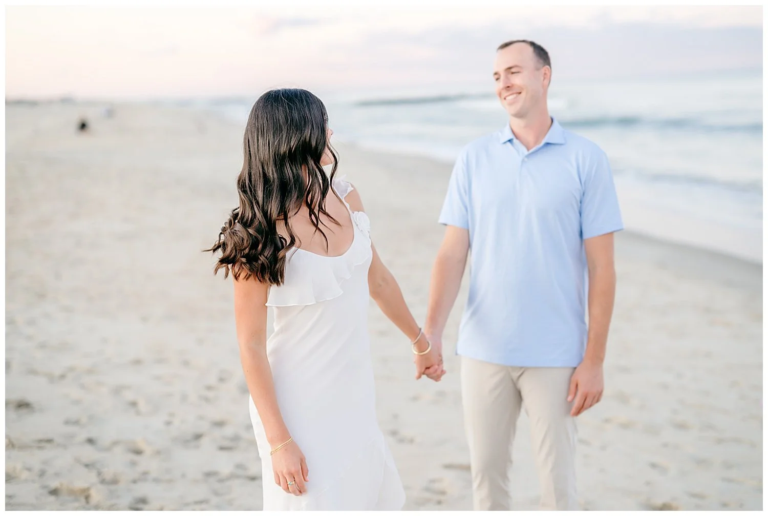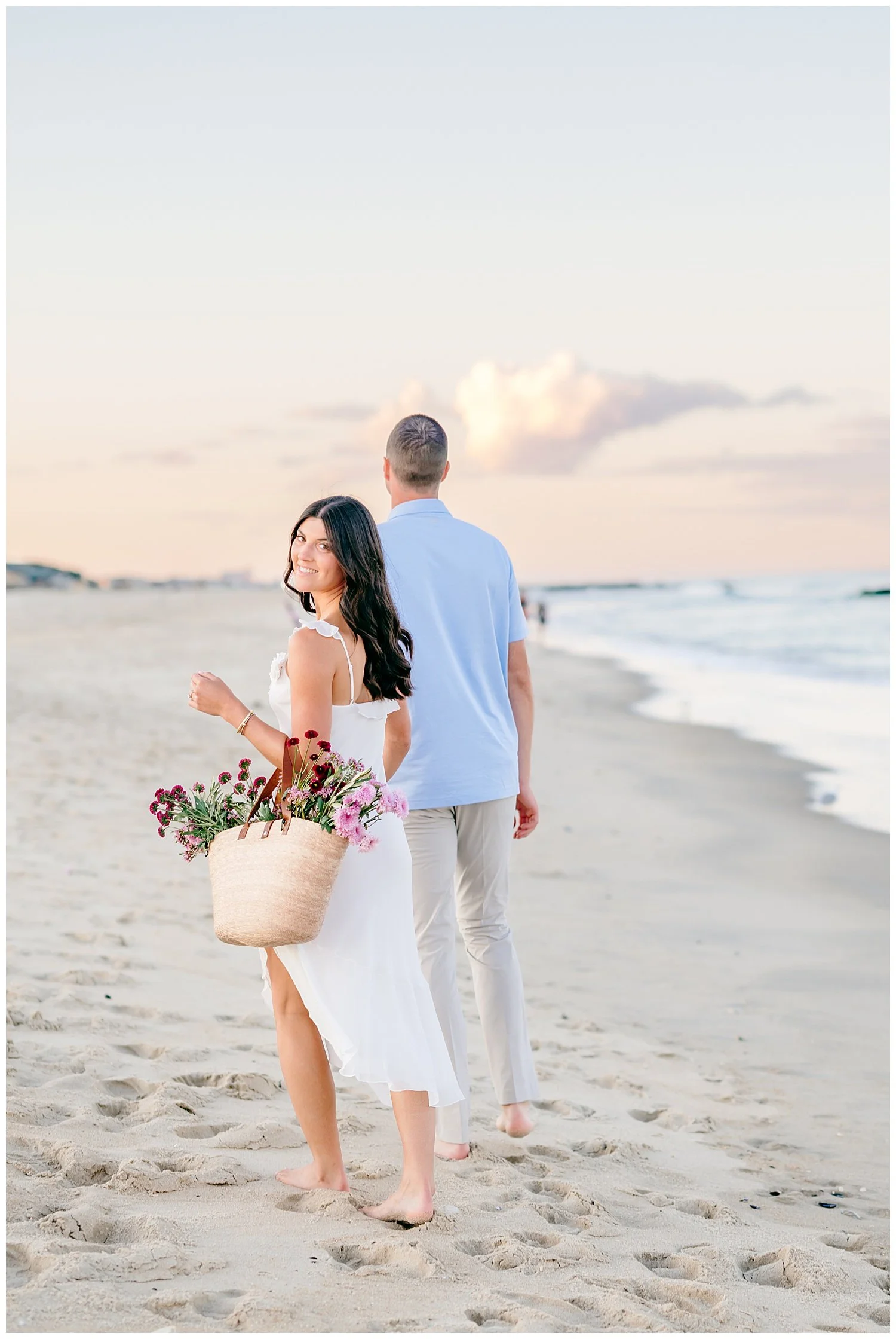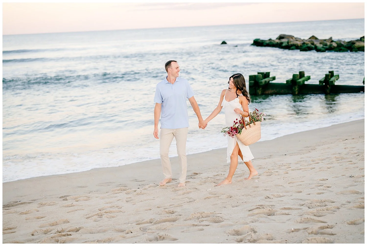 Spring Lake is one of the most sought-after engagement photo locations along the Jersey Shore, and for good reason. With its wide sandy beaches, soft ocean waves, and dreamy golden light, it creates the perfect romantic backdrop for beach engagement photos. For Emma and Andrew, this location felt like home away from home—bringing together their love for the beach, fresh sea air, and the peaceful sound of the ocean.
