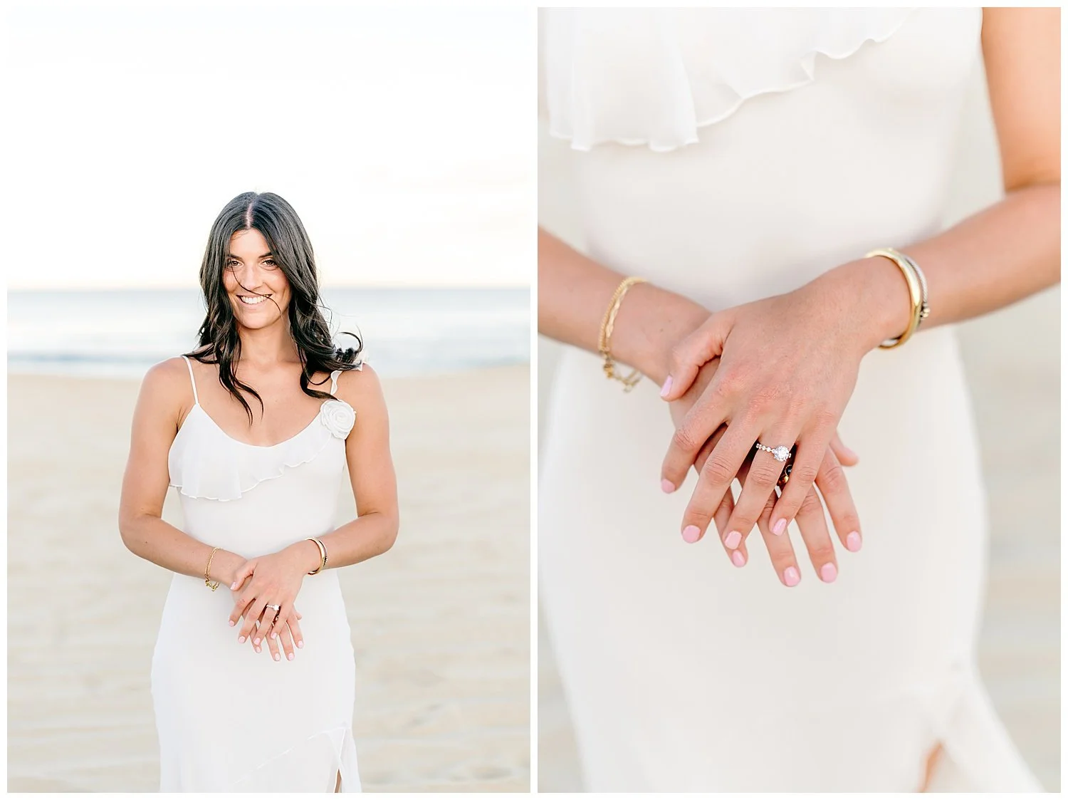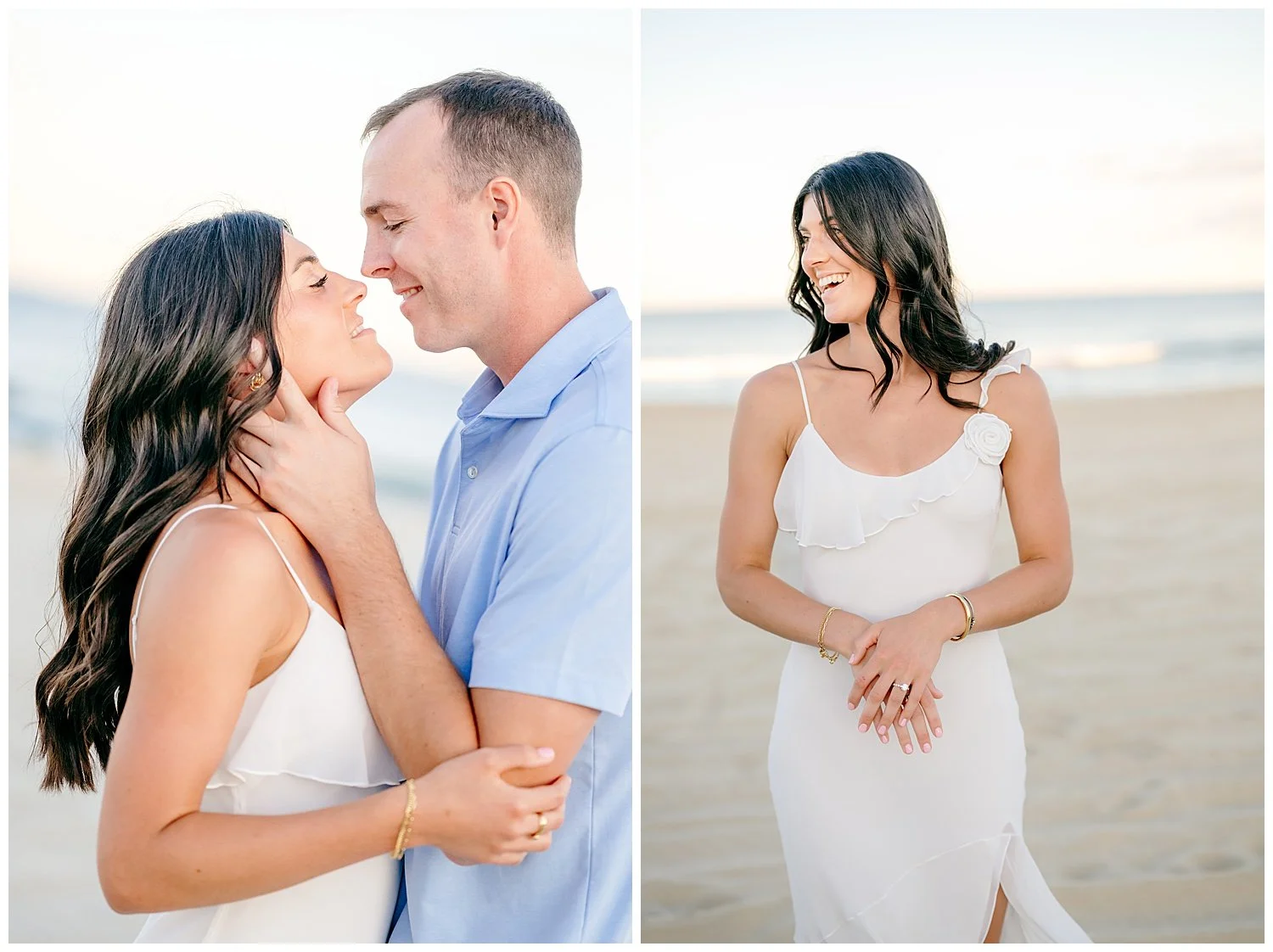 Their outfits perfectly complemented the coastal setting, bringing a relaxed yet elevated style to their photos. As the sun set over the horizon, the beach gave us the most magical light to capture their connection.