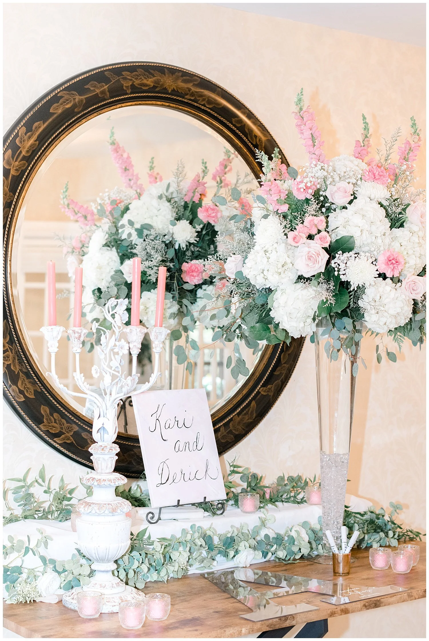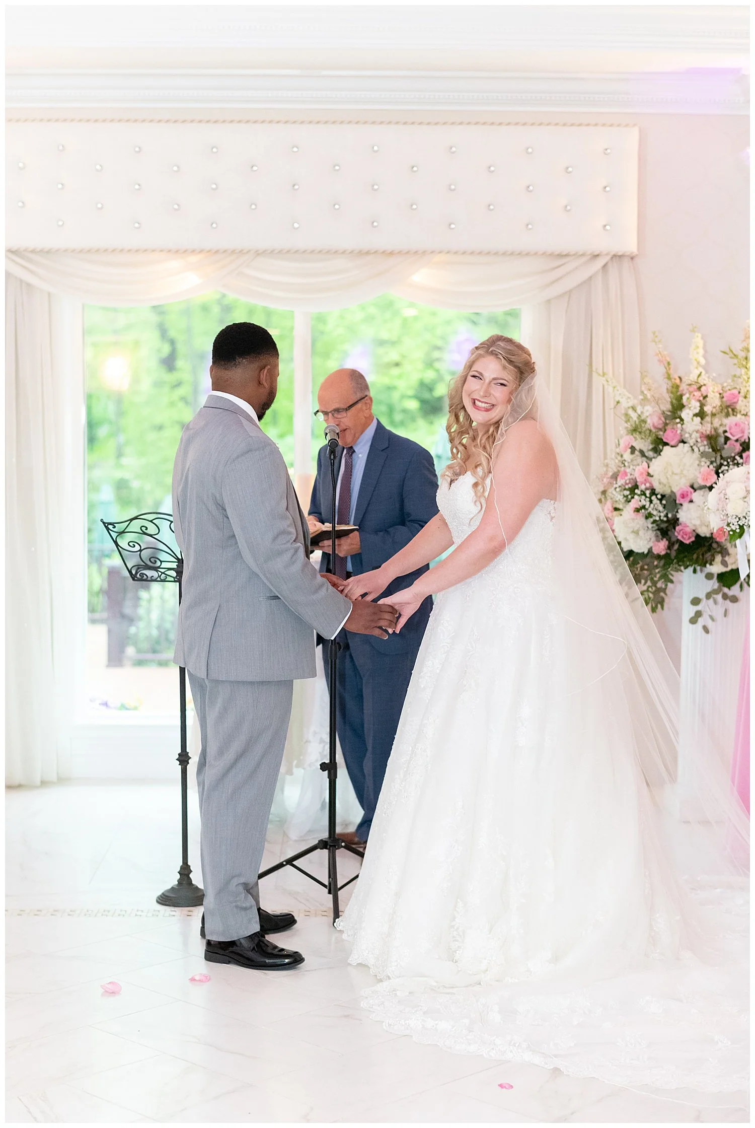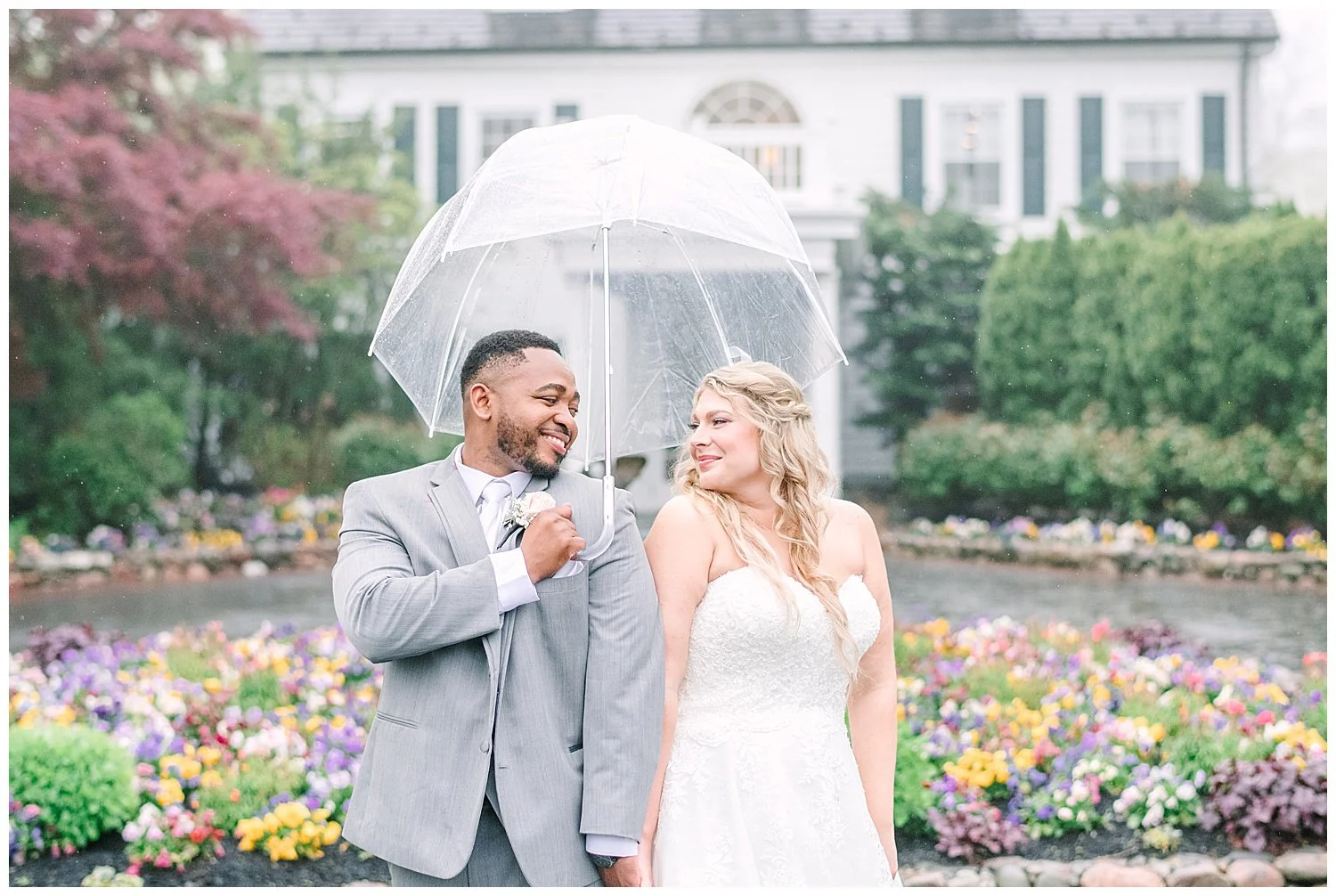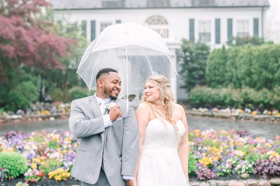The forecast all week has been a bit threatening so anticipating your wedding day spent in an English garden could be quite daunting to say the least. We did have a wash out with a strong rain that never let up. I assured them that we would make the most beautiful inside wedding ever!