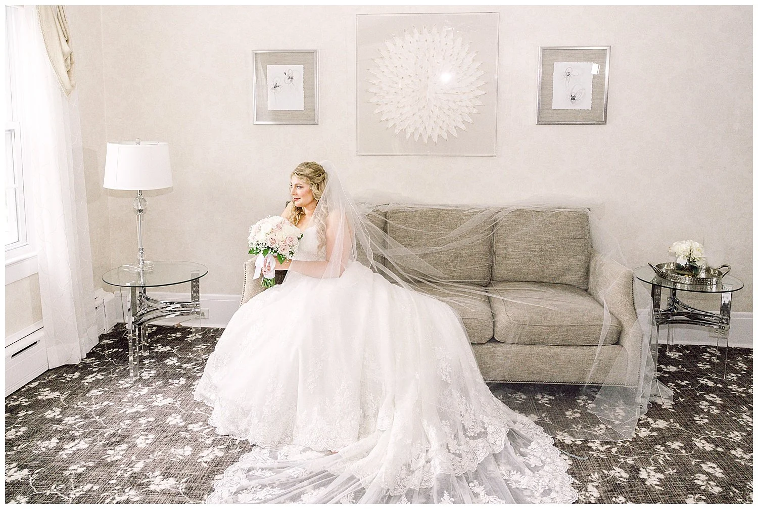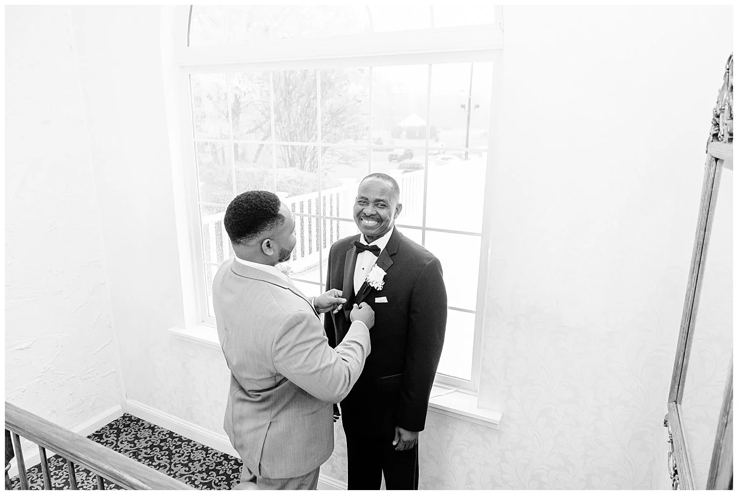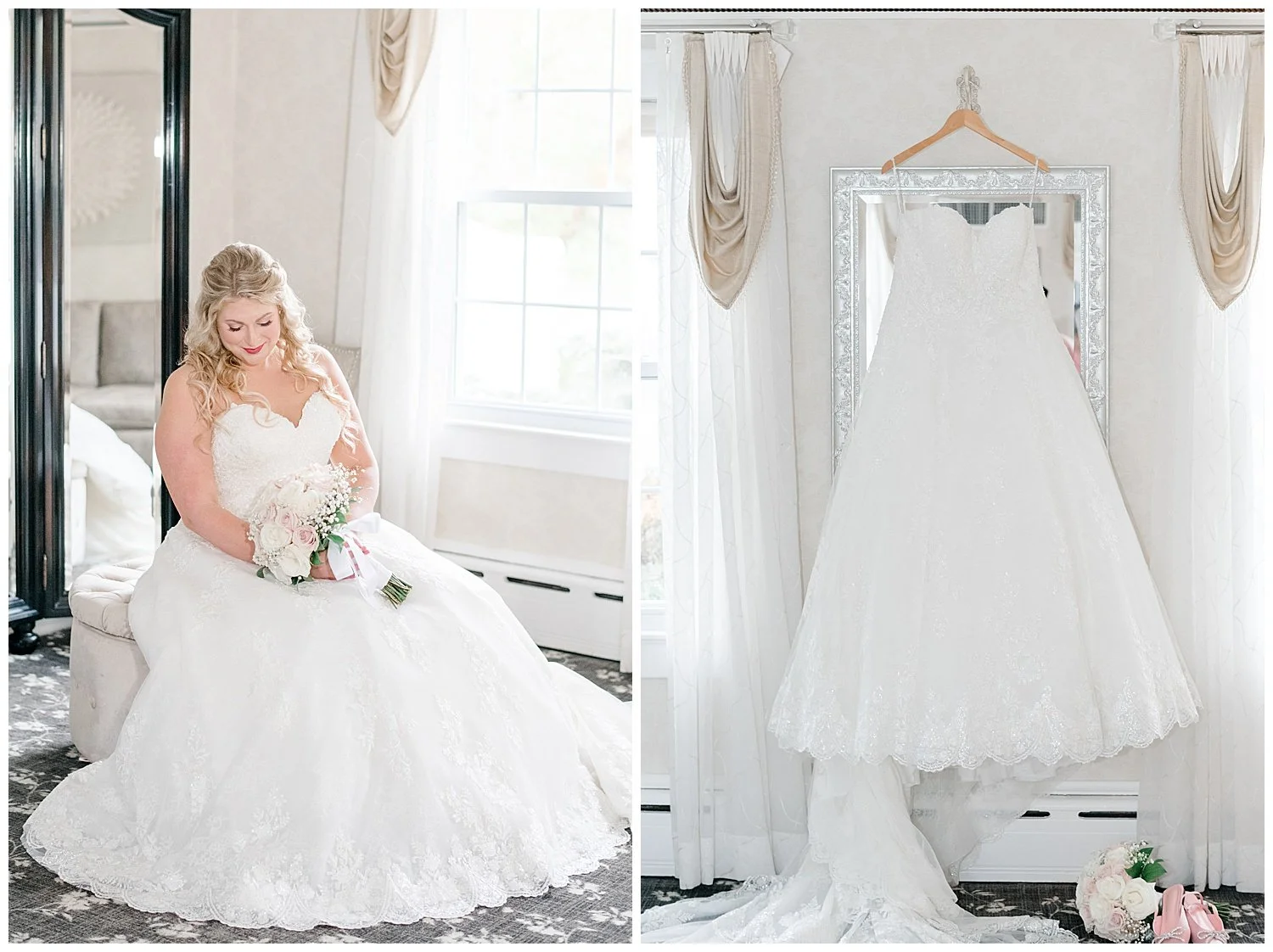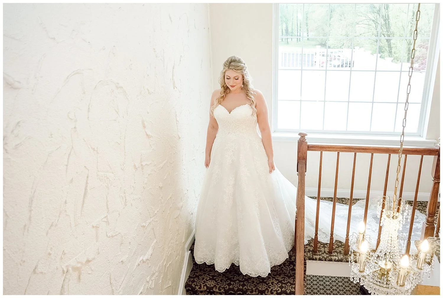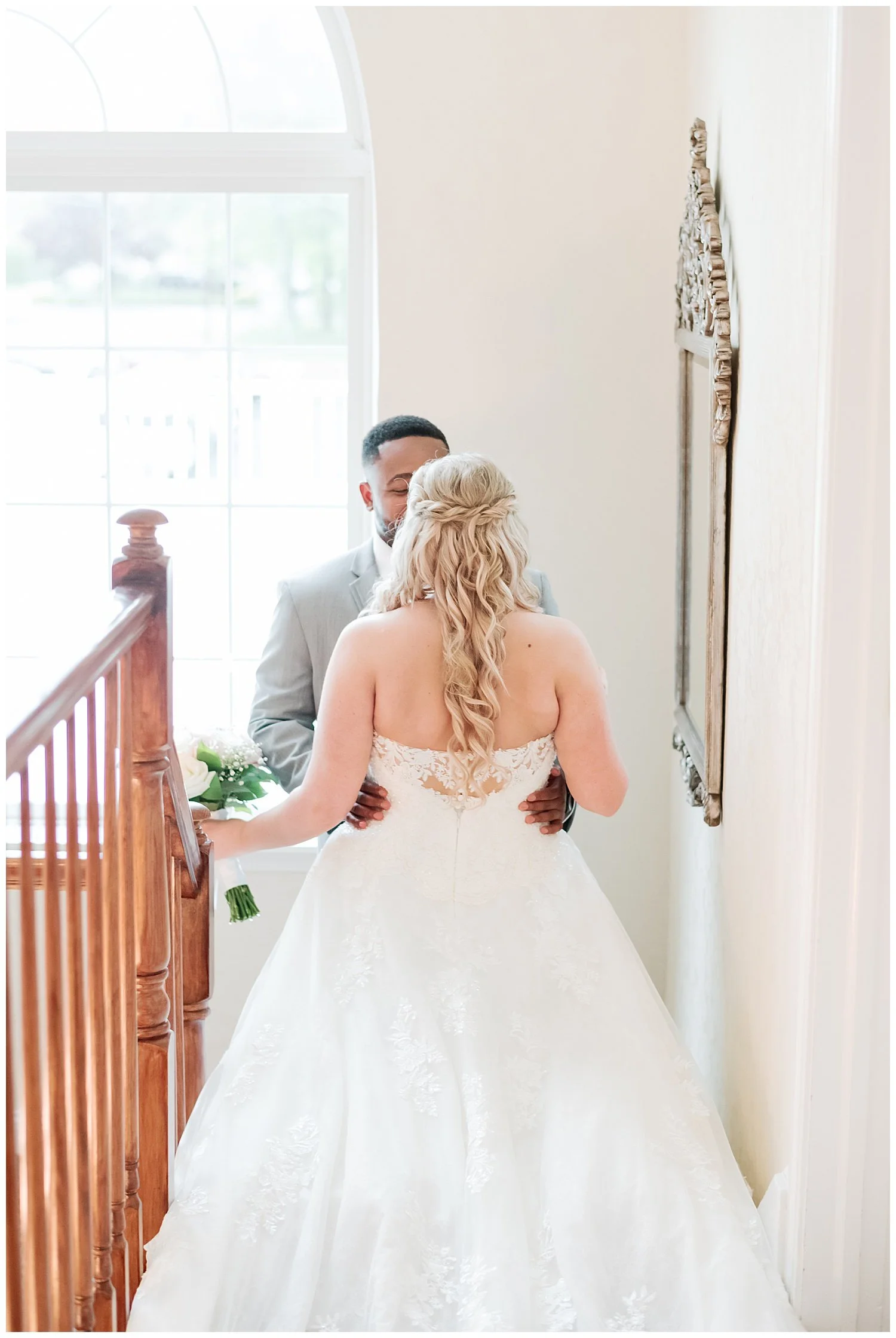 When you are stuck inside on a wedding day, I knew that I had to really come up with some unique and special portraits. Thankfully, the English Manor had a little landing with a full wall window and tucked into the corner a beautiful gold mirror. I knew that place would be my favorite. We found so many little places to create their perfect portraits.