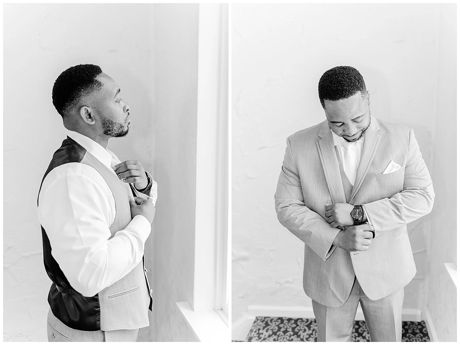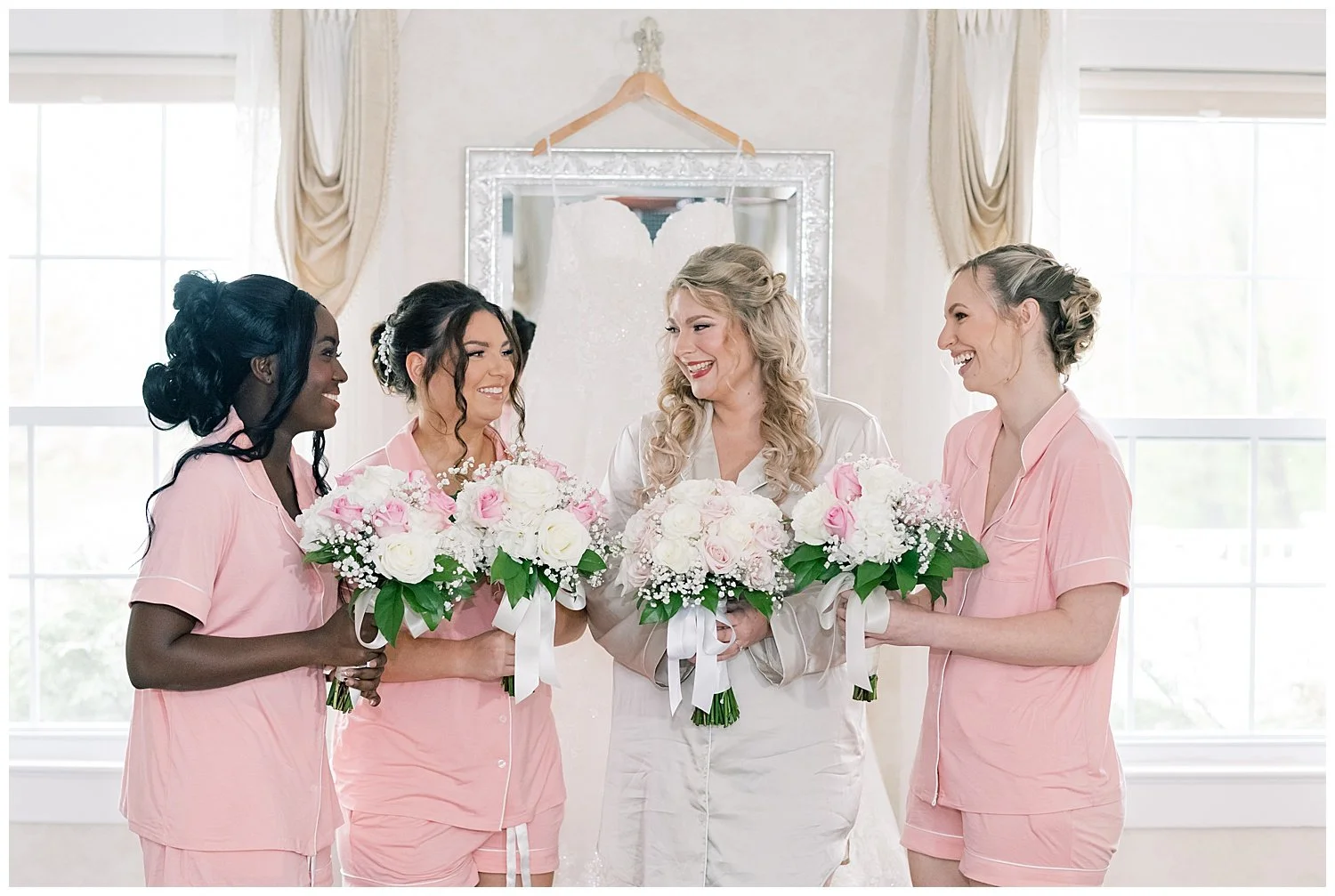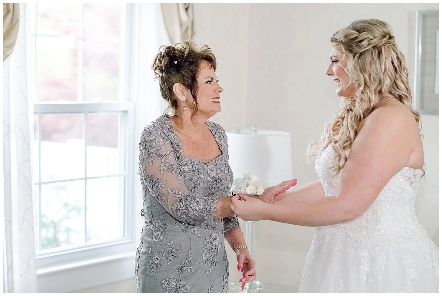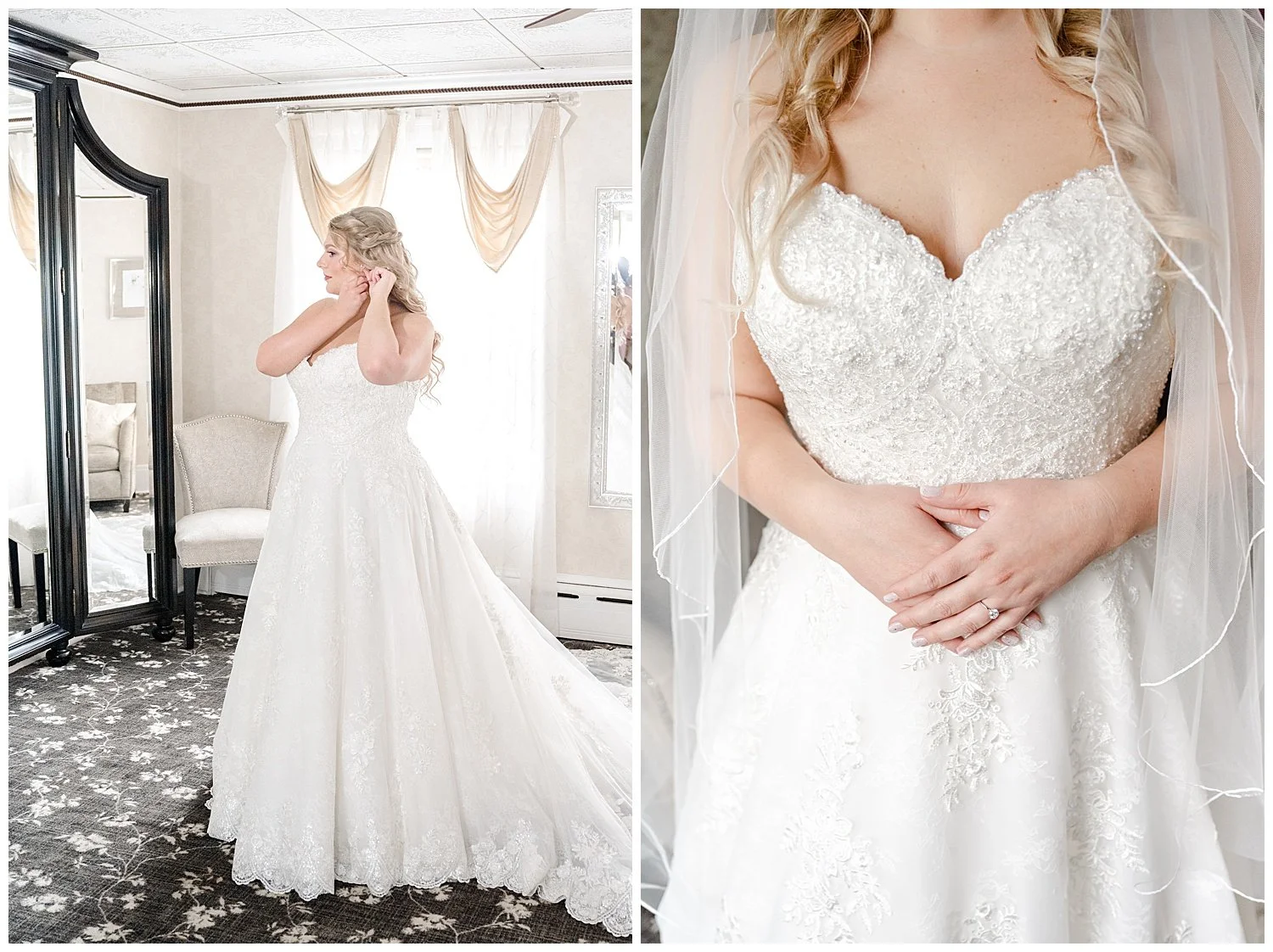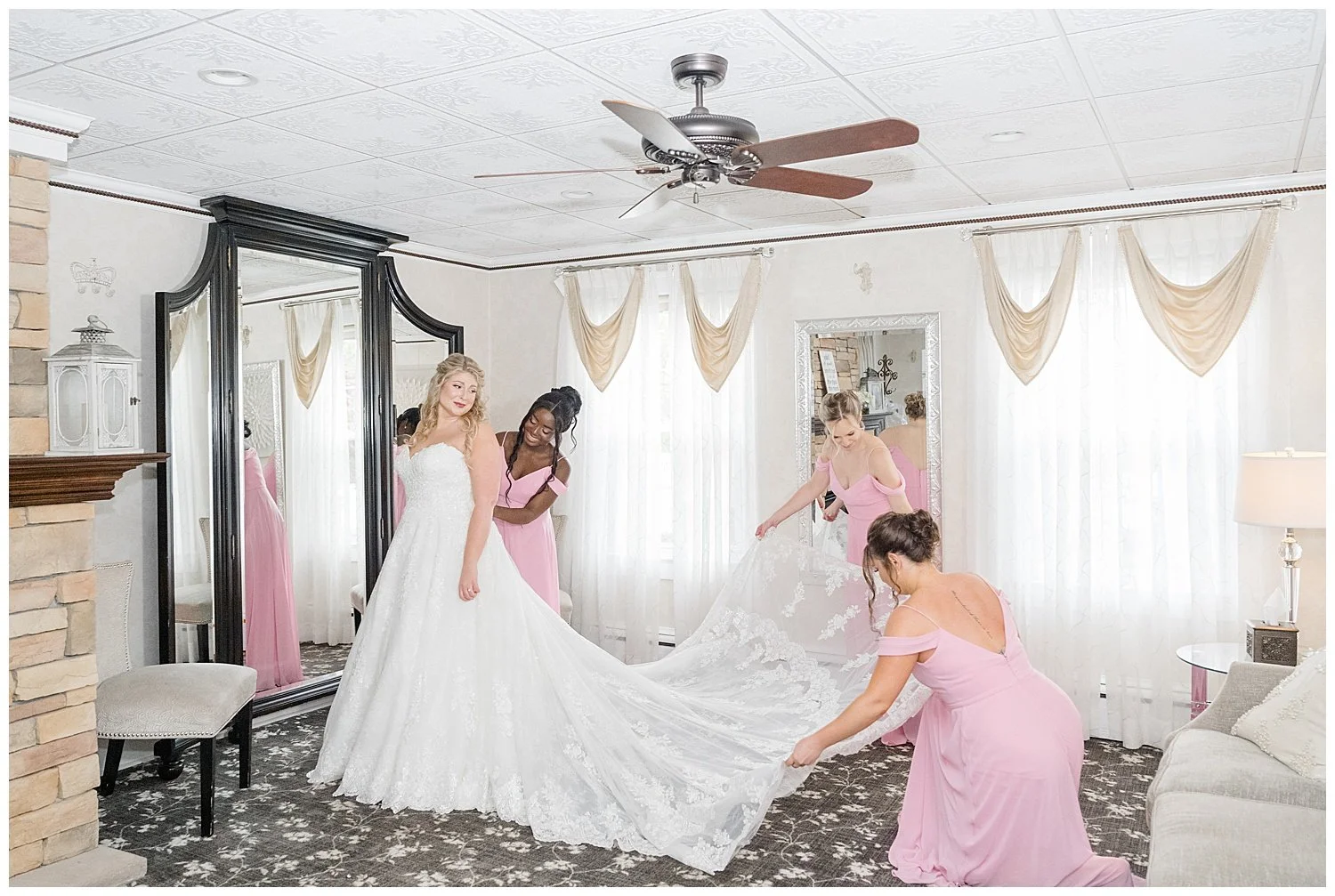When you are stuck inside on a wedding day, I knew that I had to really come up with some unique and special portraits. Thankfully, the English Manor had a little landing with a full wall window and tucked into the corner a beautiful gold mirror. I knew that place would be my favorite. We found so many little places to create their perfect portraits.