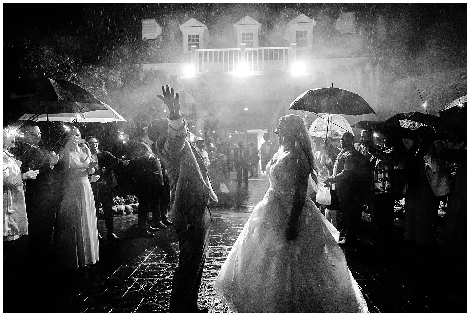 Soon it was time to leave and we had planned a sparkler exit. We had everyone outside with umbrellas trying to keep the sparklers from extinguishing. We captured some of the cutest rainy sparkler pictures. I just love them so much! What a perfect ending to the most beautiful wedding day!