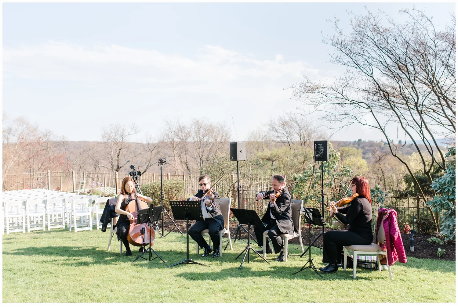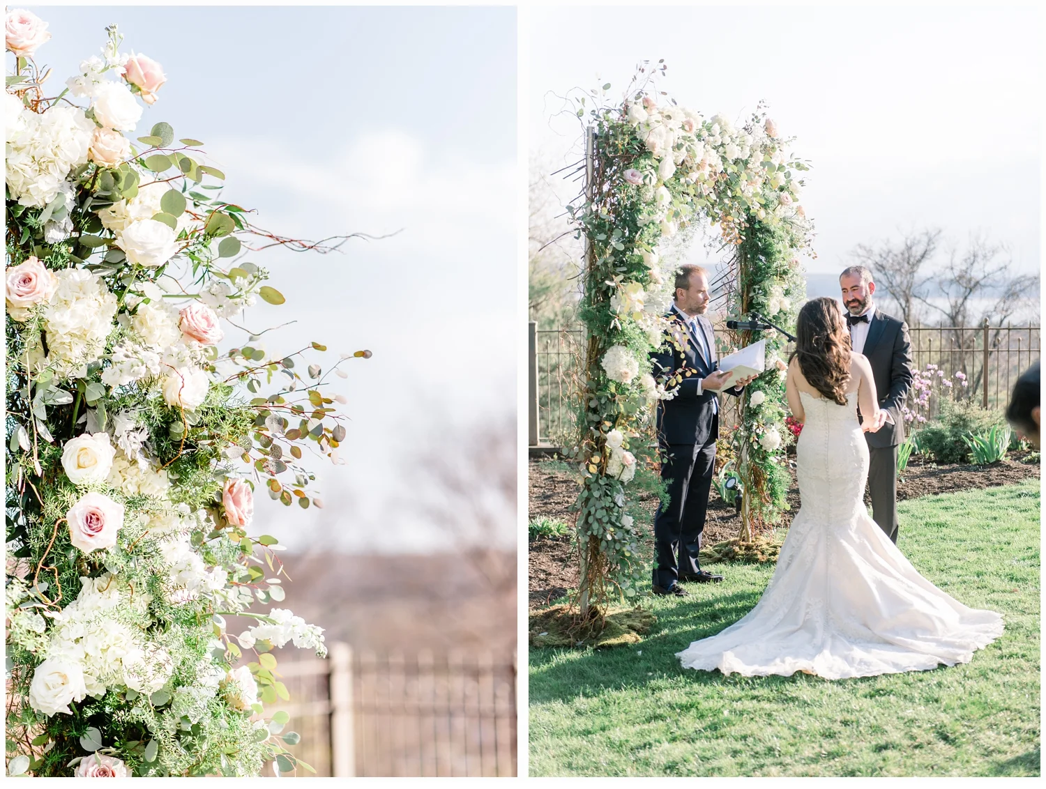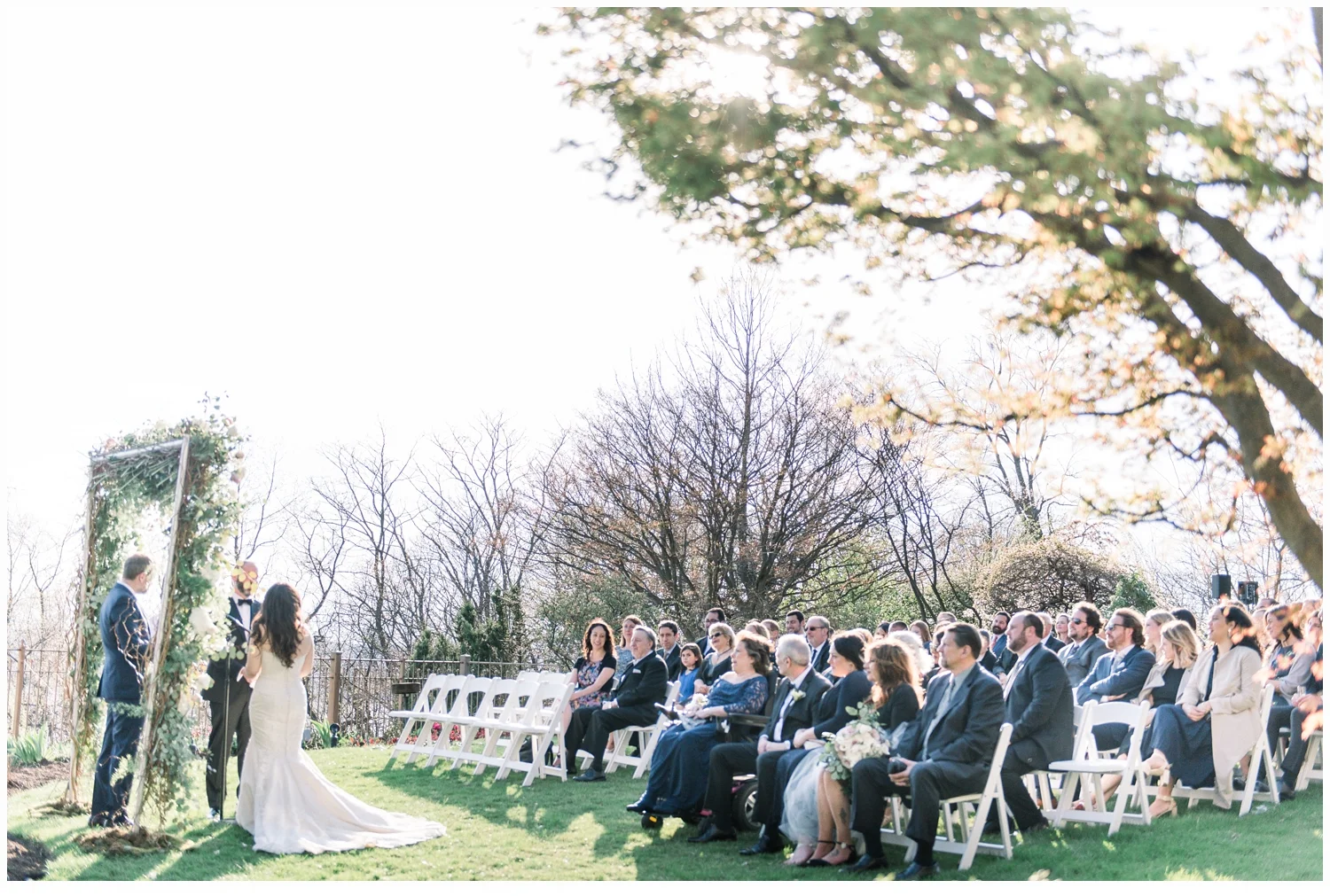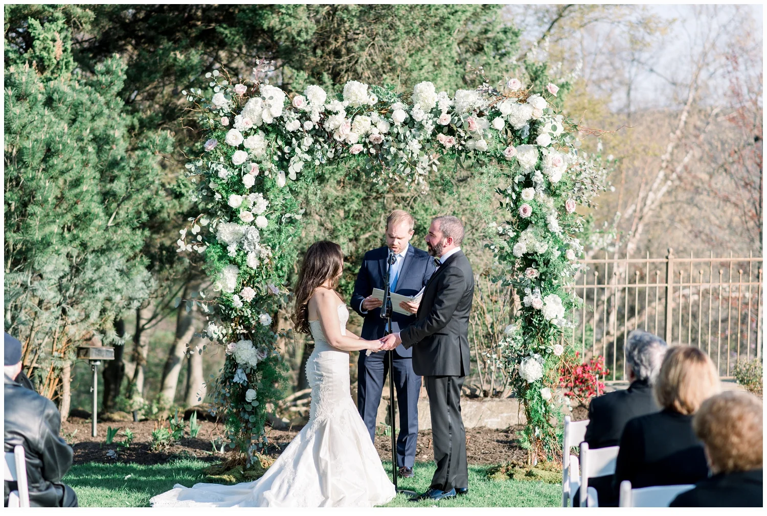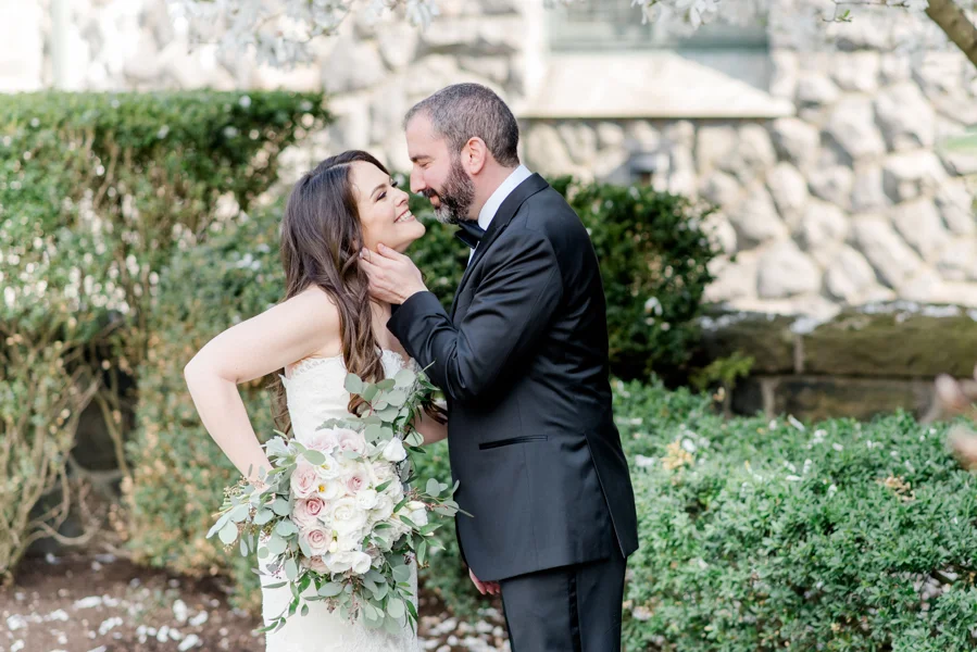 As their immediate family and all of their friends started to arrive, I could tell immediately just what a beautiful family they have and enjoyed meeting so many of them.  The ceremony was set up overlooking a pretty veranda.  The trees were just starting to pop and the weather was perfect! A bit windy and Nicoles’s veil at one point took flight but we managed to capture it! Michael’s best friend was their officiant and it was super special when he pronounced them man and wife!