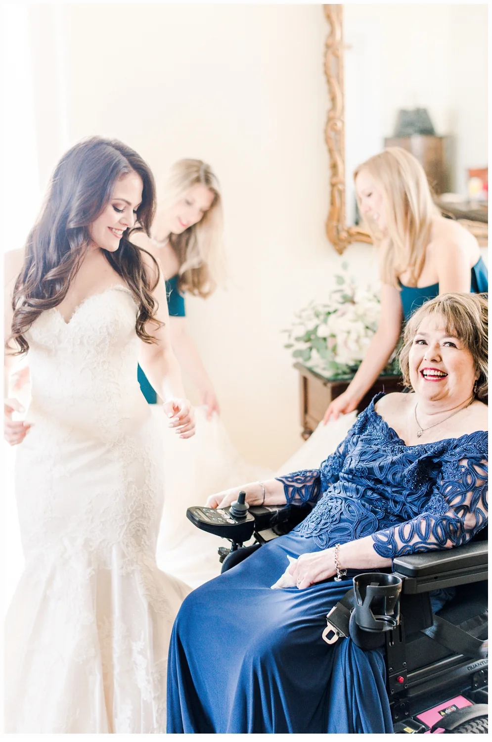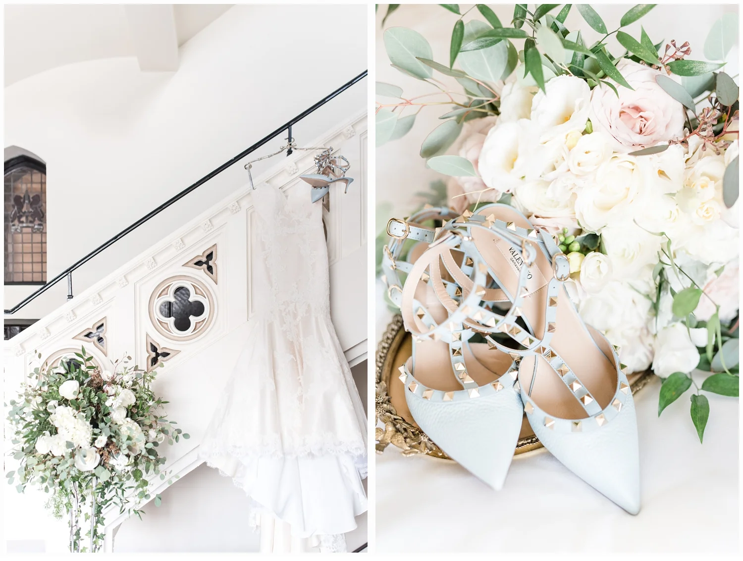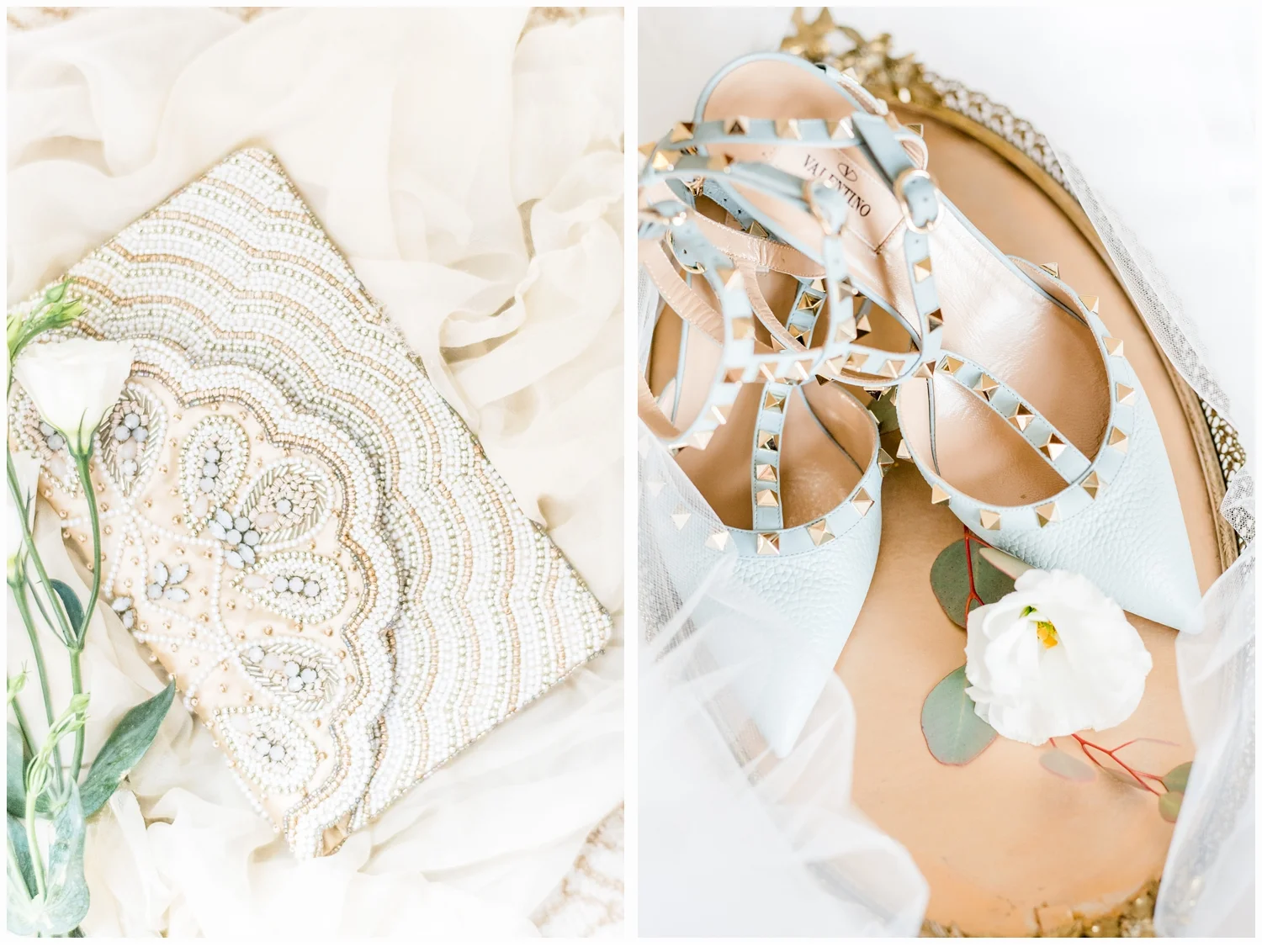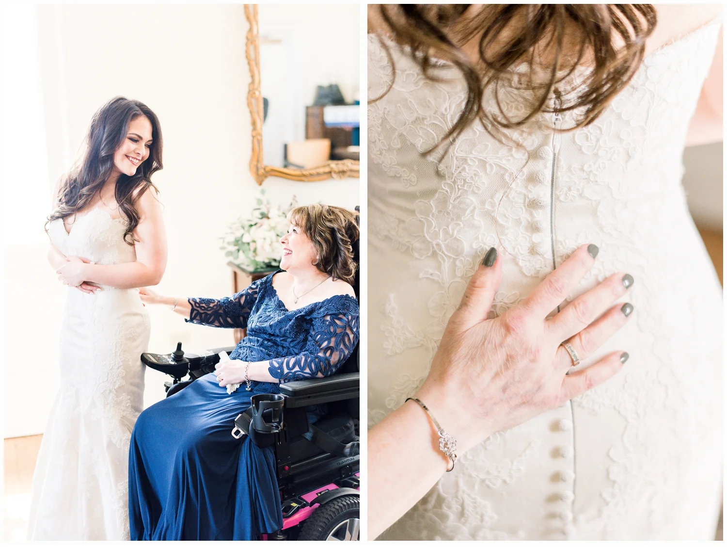 Nicole decided to keep it low key with not having a bridal party, but was joined in her dressing room by her two closest friends from college and her very sweet mama!  Her wedding gown was just divine!  It was a Matthew Christoper design and it fit her so beautifully!  I loved photographing every detail of her beautiful dress. She work light blue Valentino studded heels and wore her hair loosely curled!