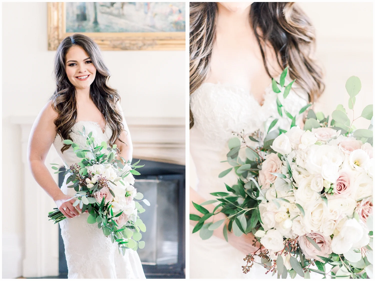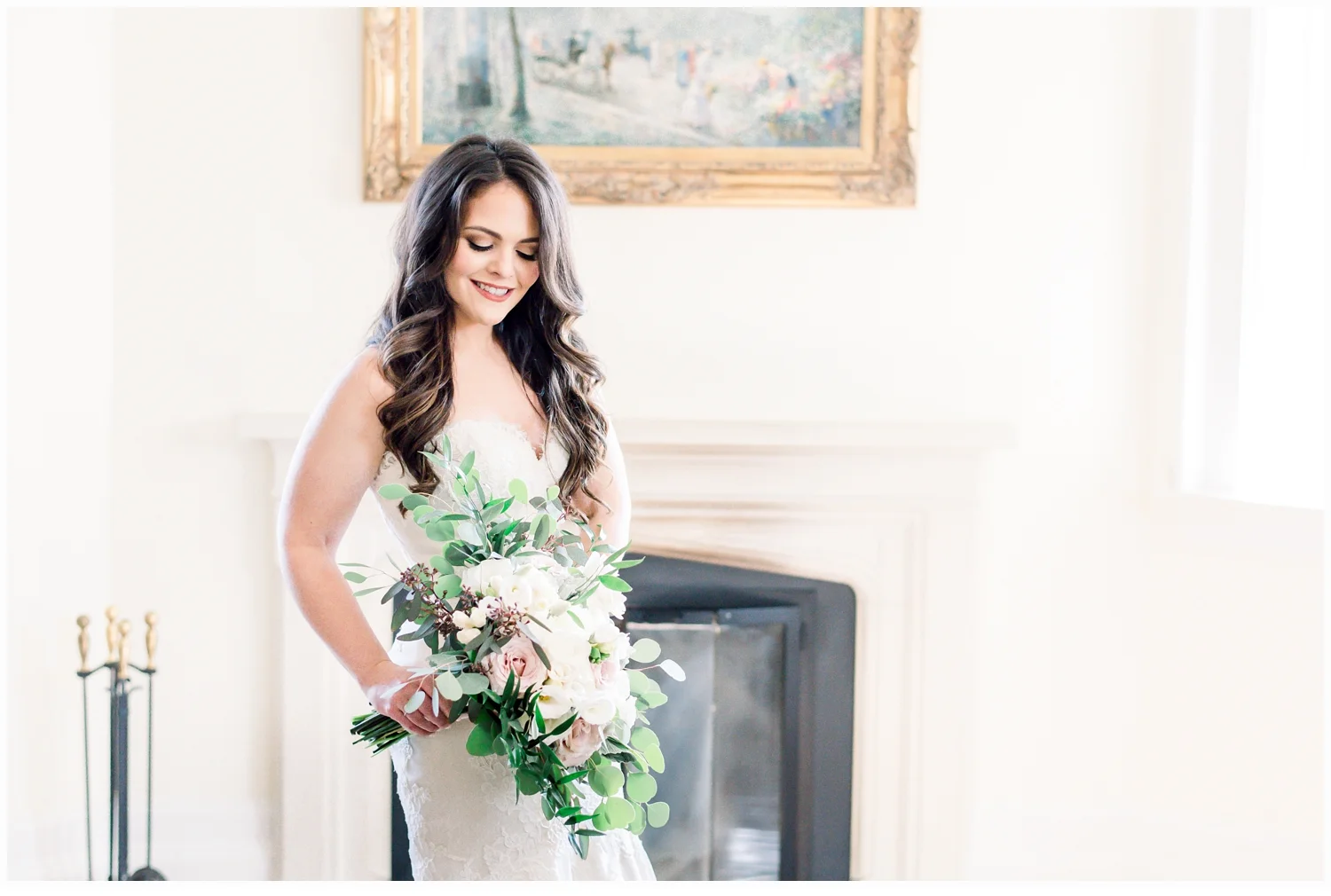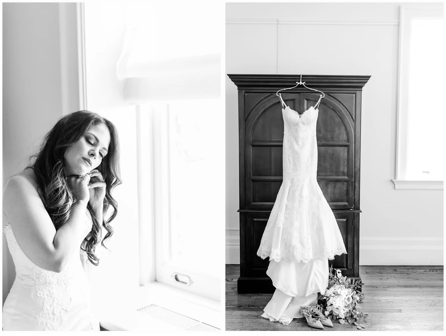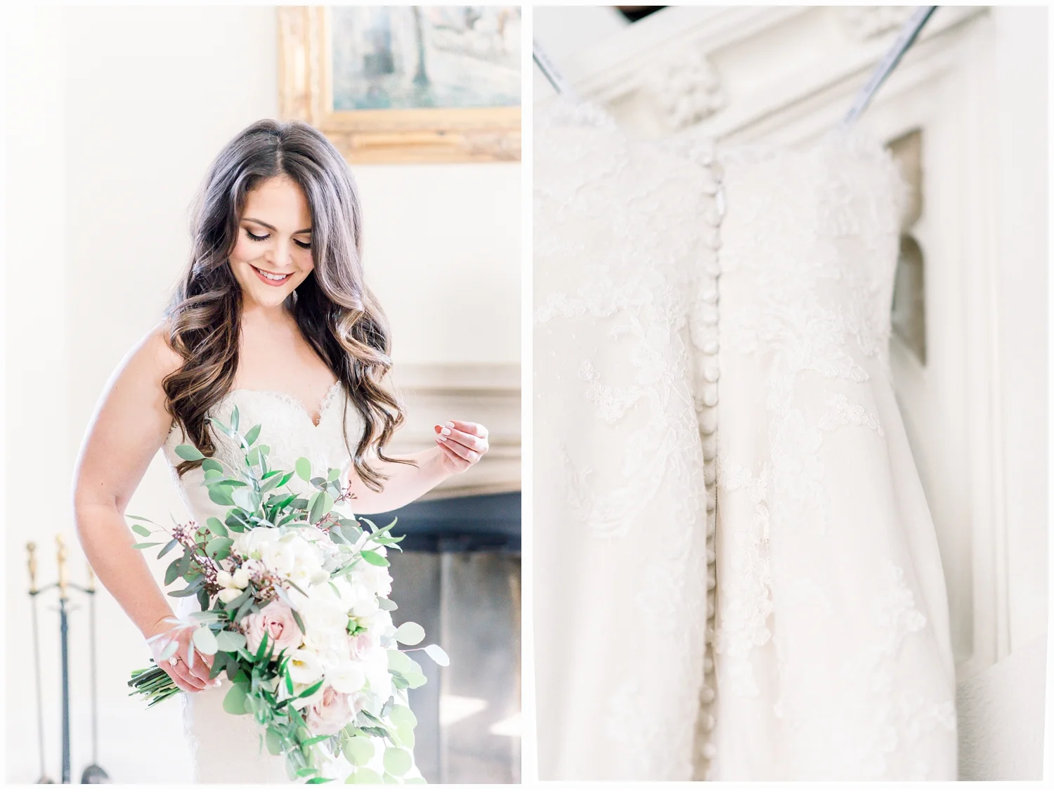 Nicole decided to keep it low key with not having a bridal party, but was joined in her dressing room by her two closest friends from college and her very sweet mama!  Her wedding gown was just divine!  It was a Matthew Christoper design and it fit her so beautifully!  I loved photographing every detail of her beautiful dress. She work light blue Valentino studded heels and wore her hair loosely curled!