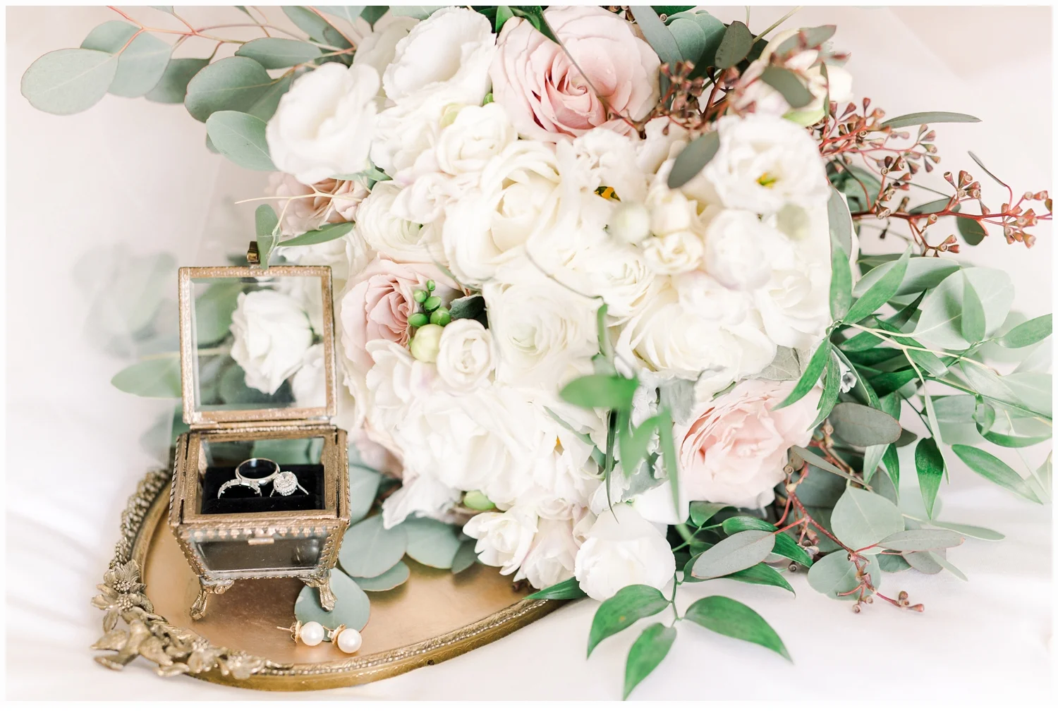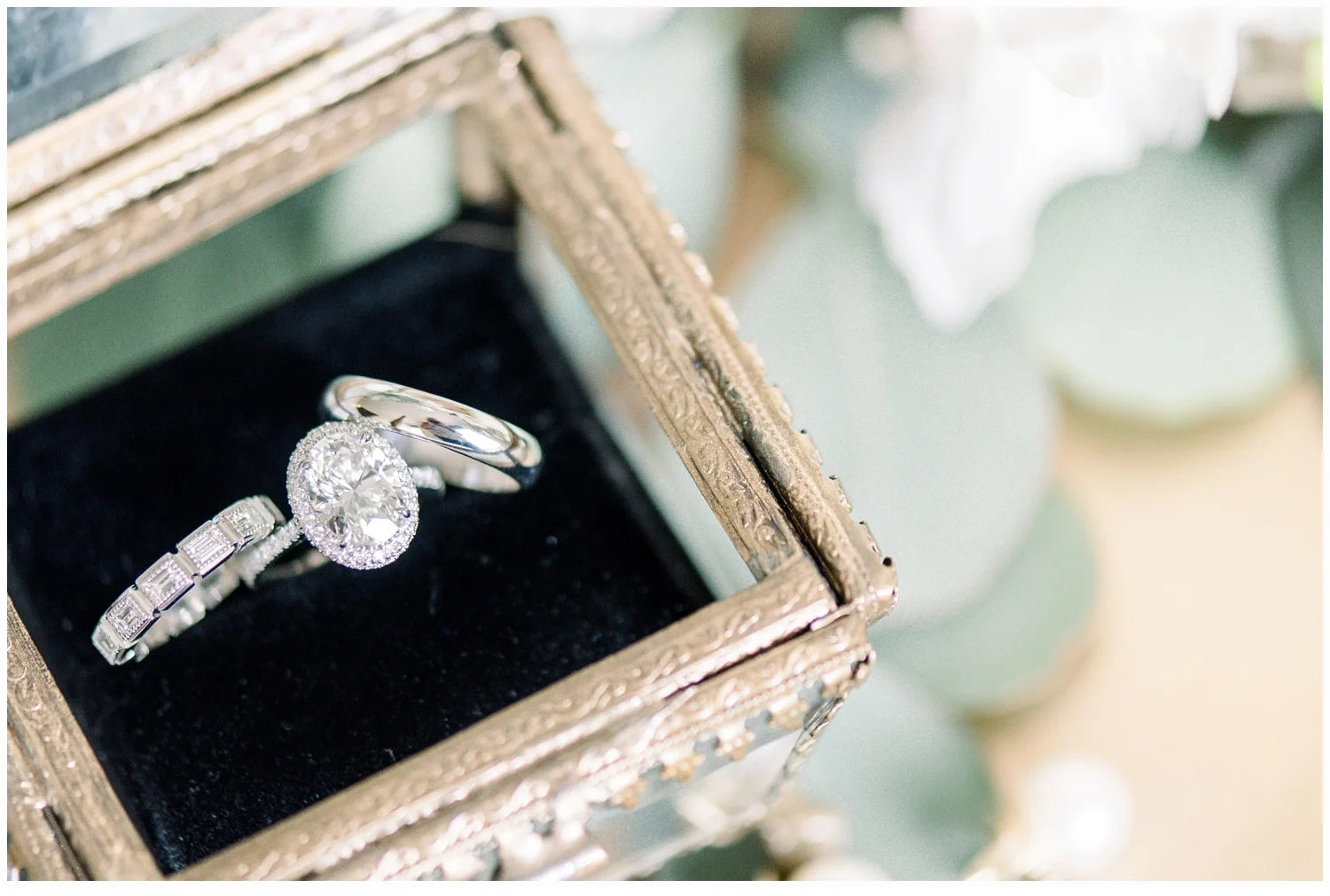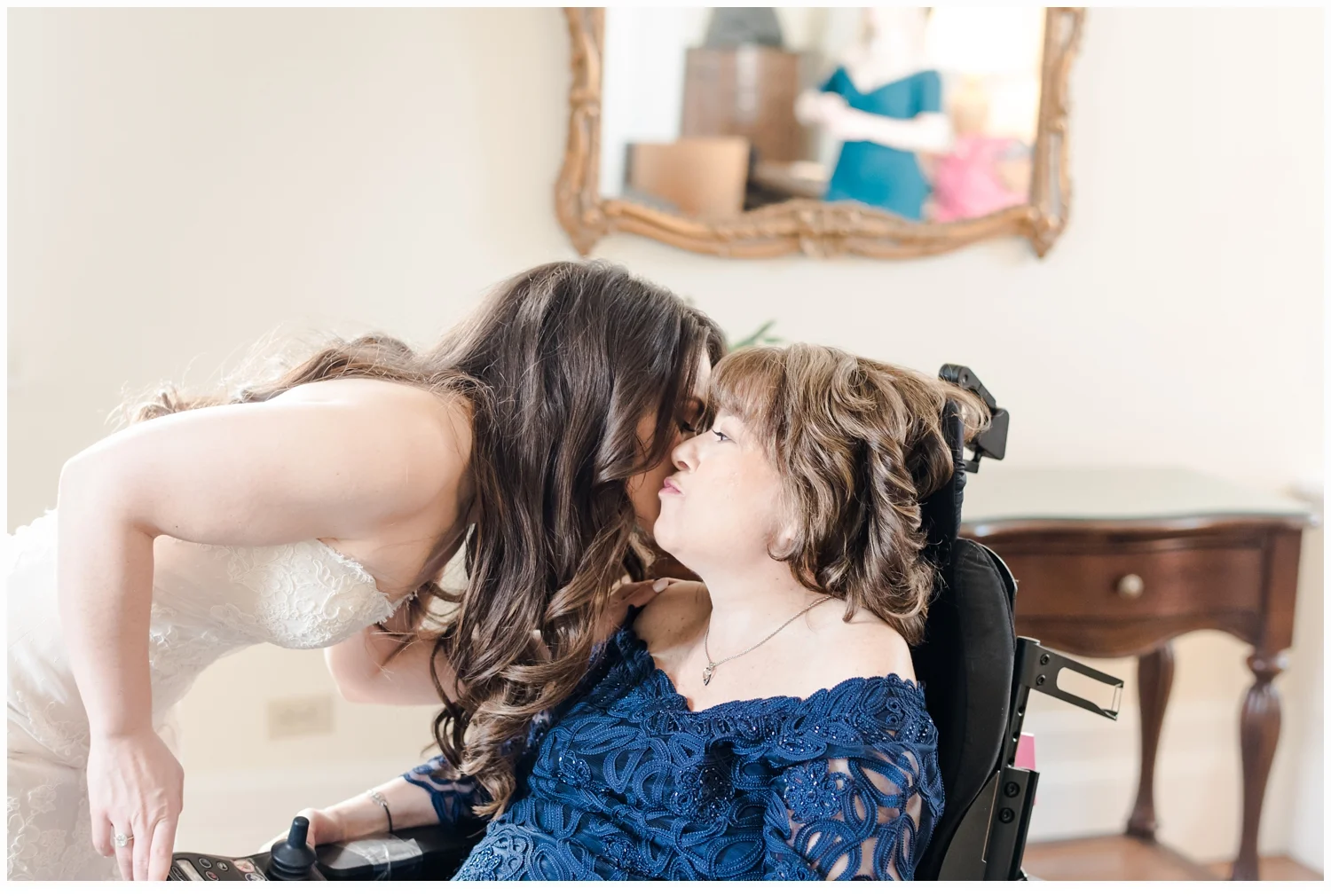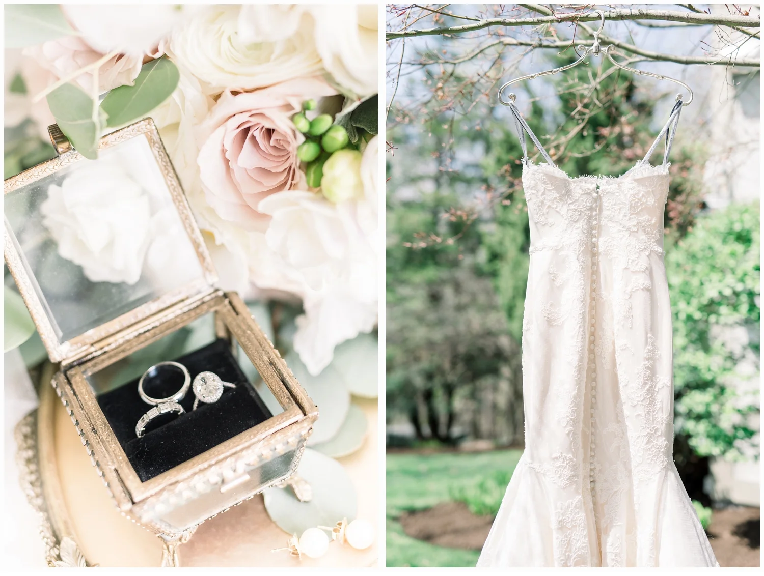Nicole decided to keep it low key with not having a bridal party, but was joined in her dressing room by her two closest friends from college and her very sweet mama!  Her wedding gown was just divine!  It was a Matthew Christoper design and it fit her so beautifully!  I loved photographing every detail of her beautiful dress. She work light blue Valentino studded heels and wore her hair loosely curled!