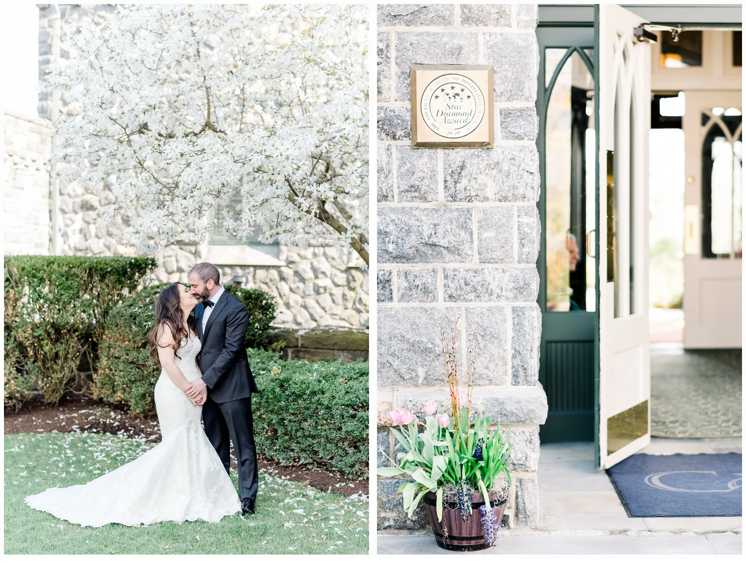 New Jersey Wedding Photographer: deborahannphotography Floral Designer: Fleur Du Mois Venue: Castle Hotel and Spa Cake Baker: doughdoughnuts Hair and Makeup: Brushedwithhoney Invitation Suite: Minted Videographer: NST Pictures Groom Tux: Paul Zileri Bridal Gown: Matthew Christopher Bride’s Shoes: Valentino