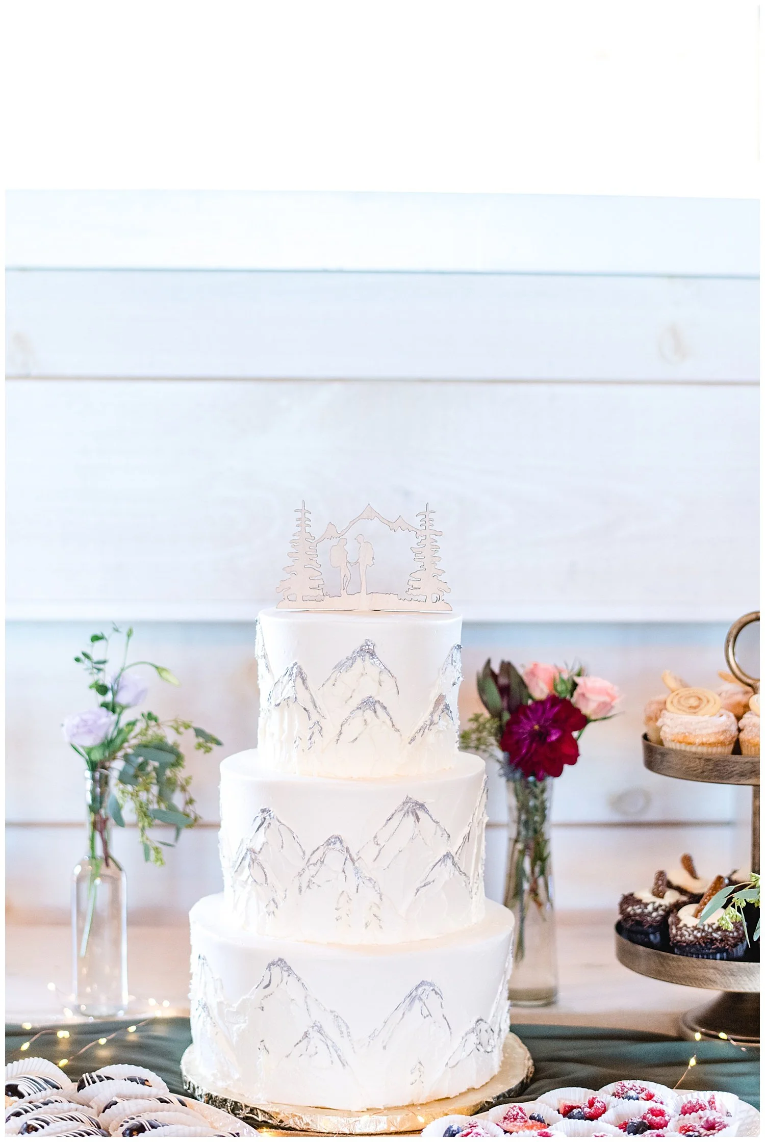 The reception was filled with so much dancing I could hardly get on the dance floor! It was so wonderful to see Sheri and Kyle finally having all of their friends and family dancing the night together. If you take note to the beautiful portrait of their wedding cake, they even had a beautiful mountain range done in the icing! It was as delicious as it looked!