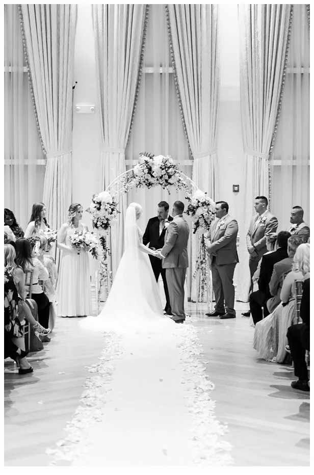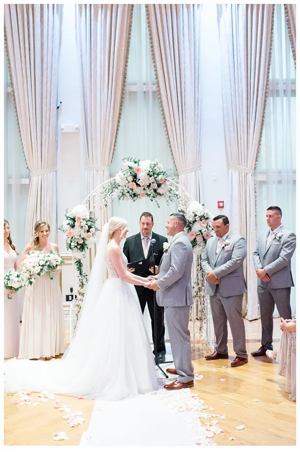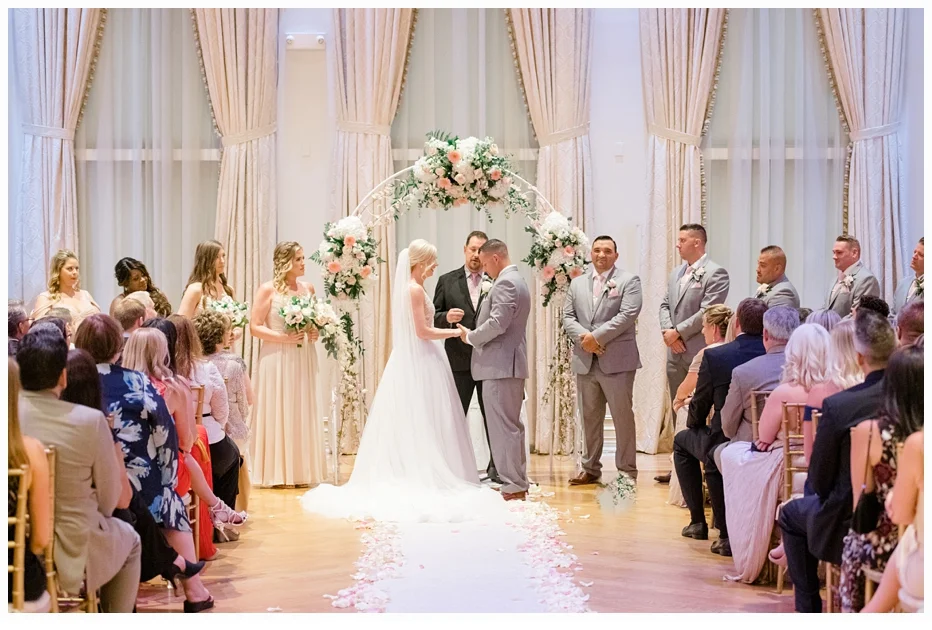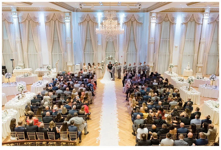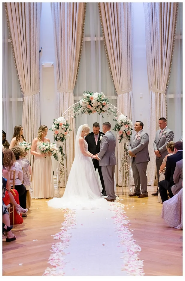 The ceremony did get moved inside but the ballroom was so pretty and the ceremony was delightful.