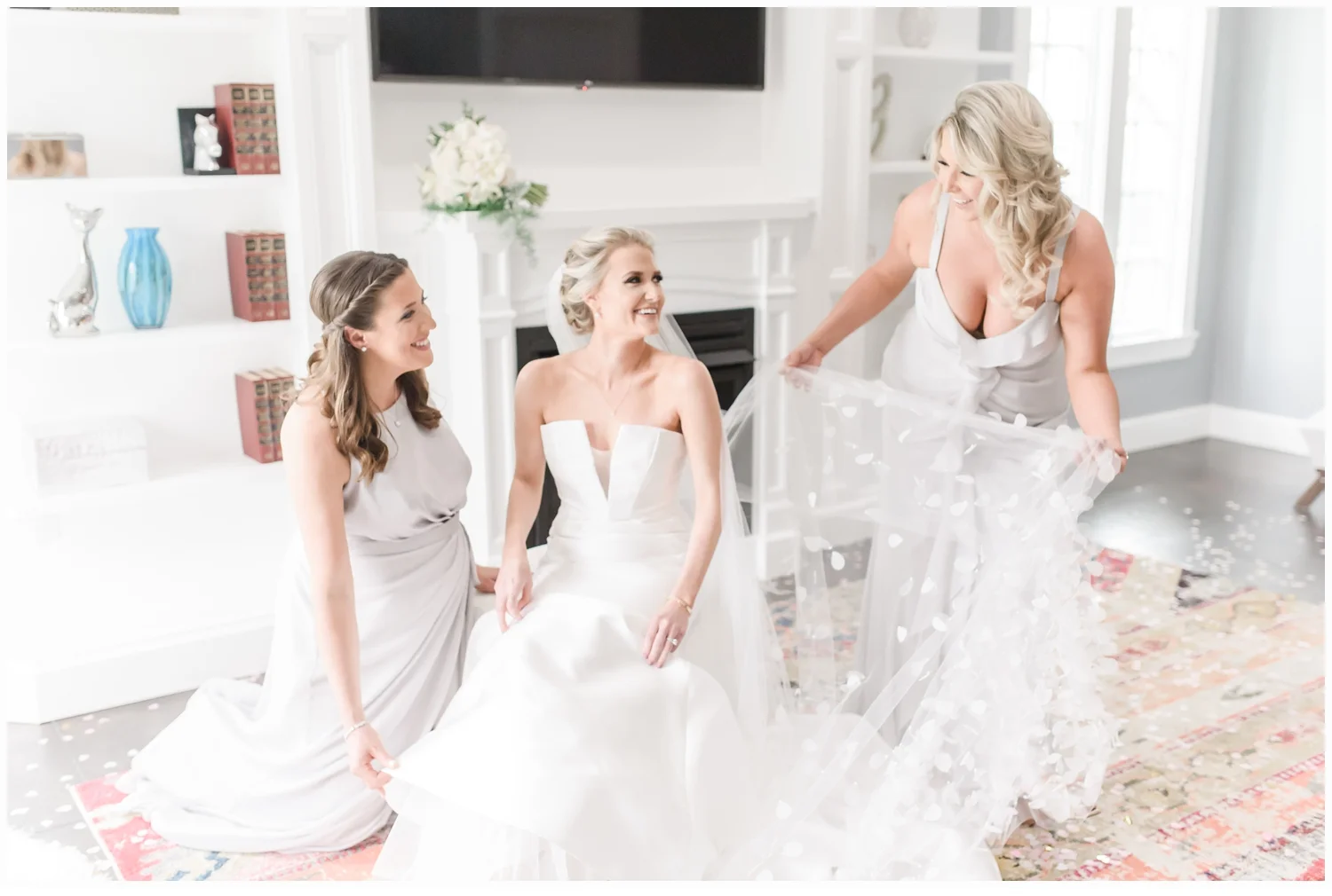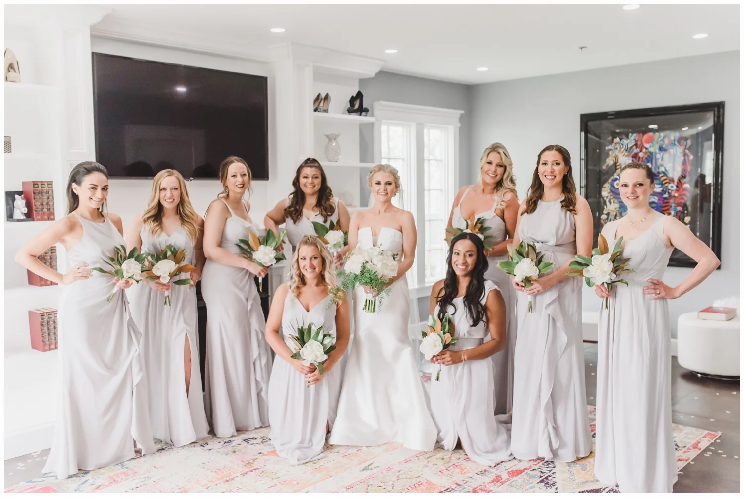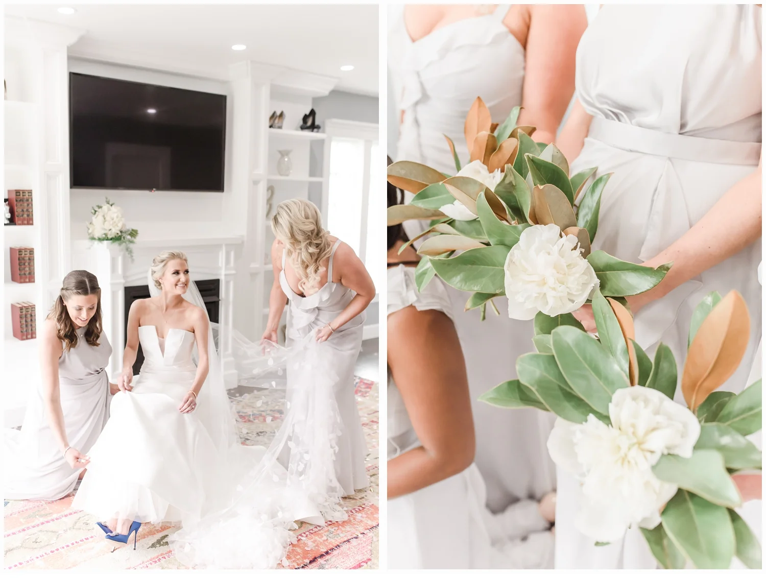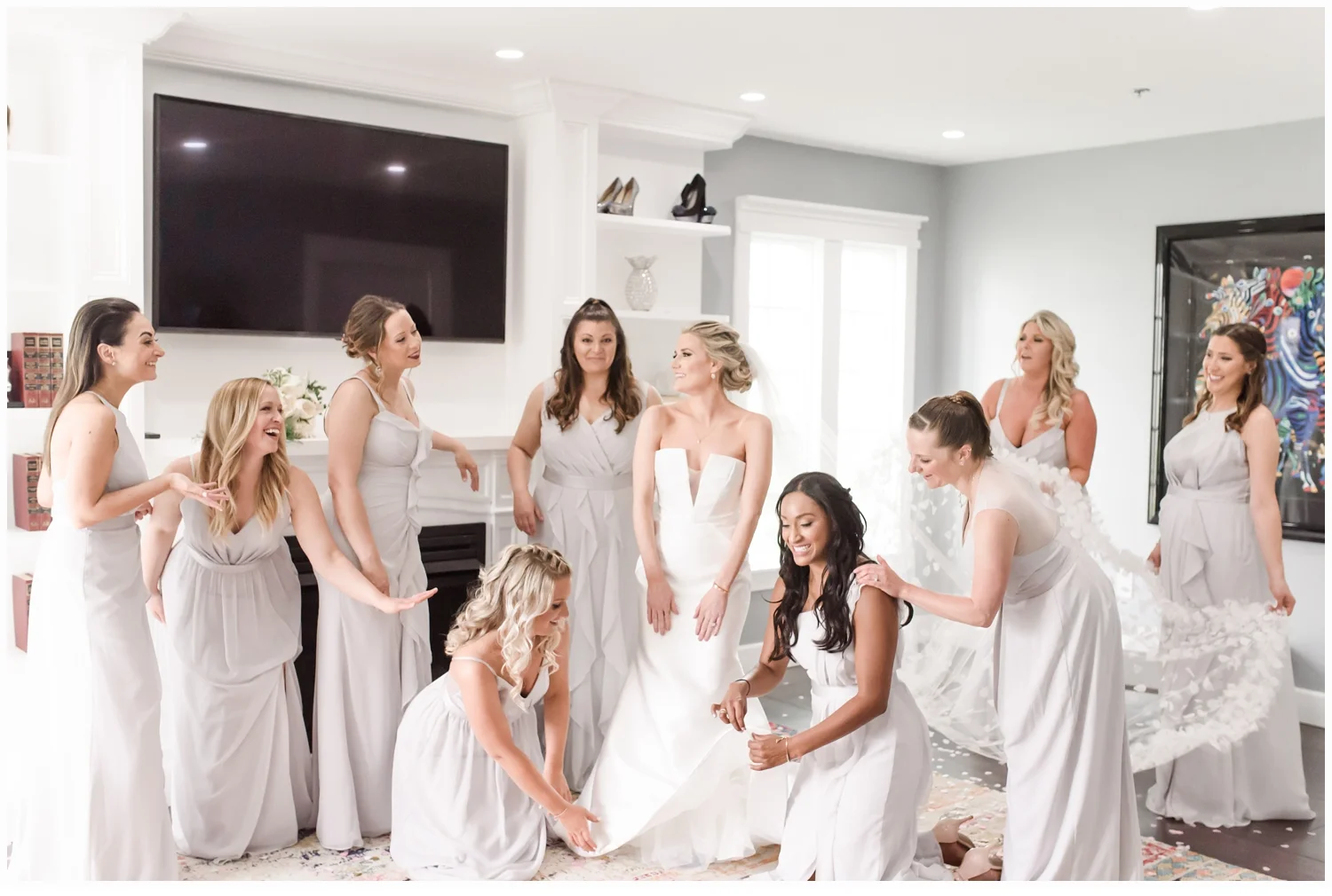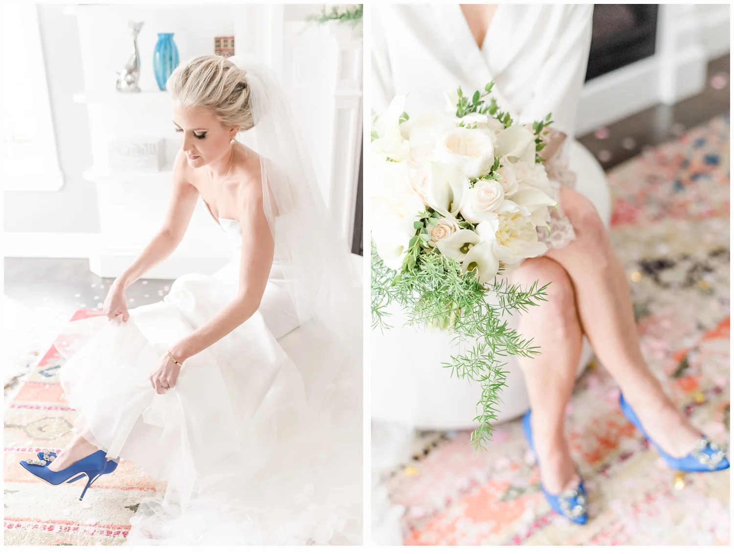Her bridal gown by annebarge designer was stunning to say the least! She complimented her wedding gown with some gorgeous manoloblahnik blue shoes. I was pretty excited to say the least! Her veil was my favorite detail and if you ask Courtney she will agree! It was made by a beautiful designer camillachristinebridal. Her bridesmaids had the prettiest vera wang dresses which were all different styles and a pretty grey palette. Their florals were created by peoniestopaintchips and the arrangement were just perfect!